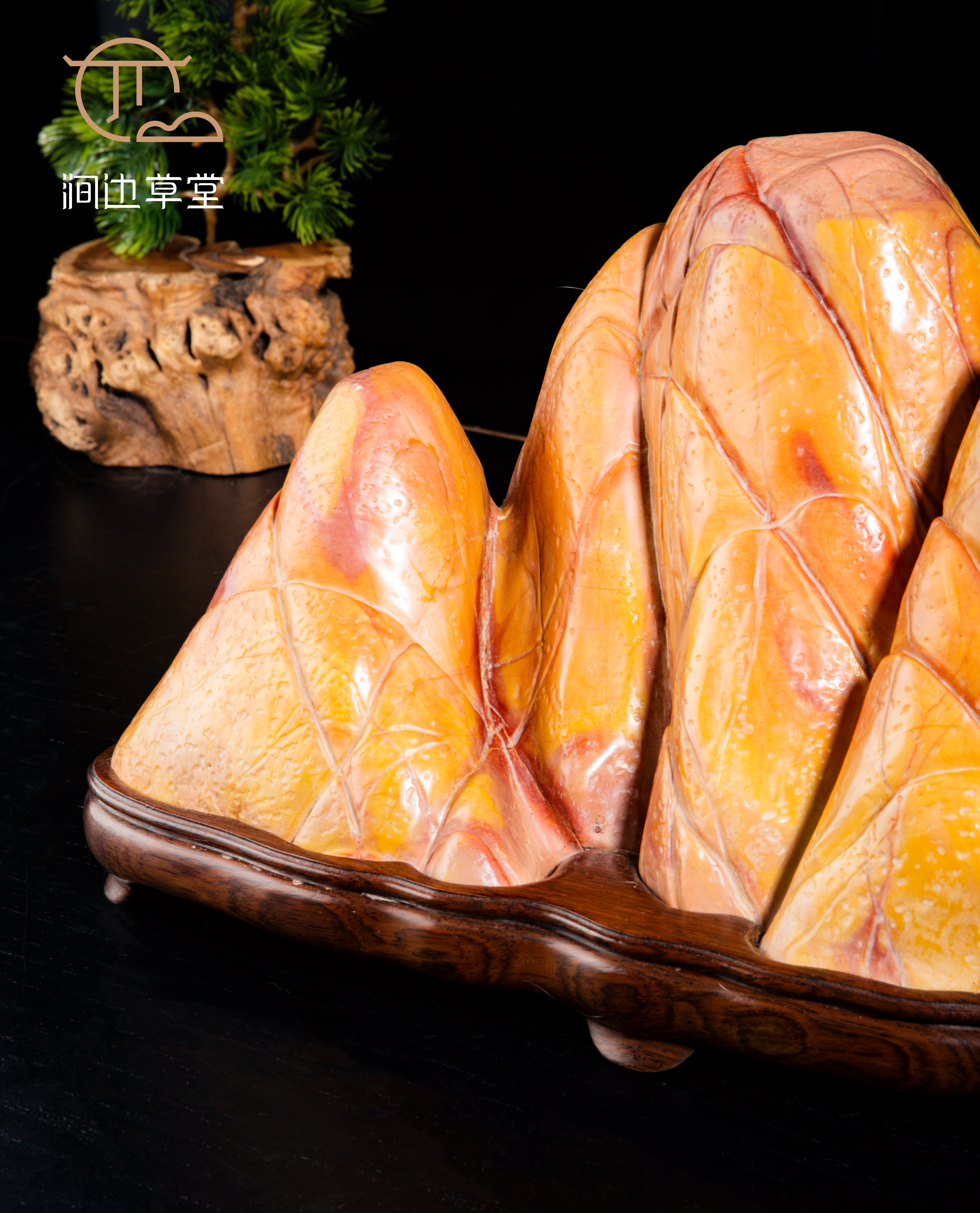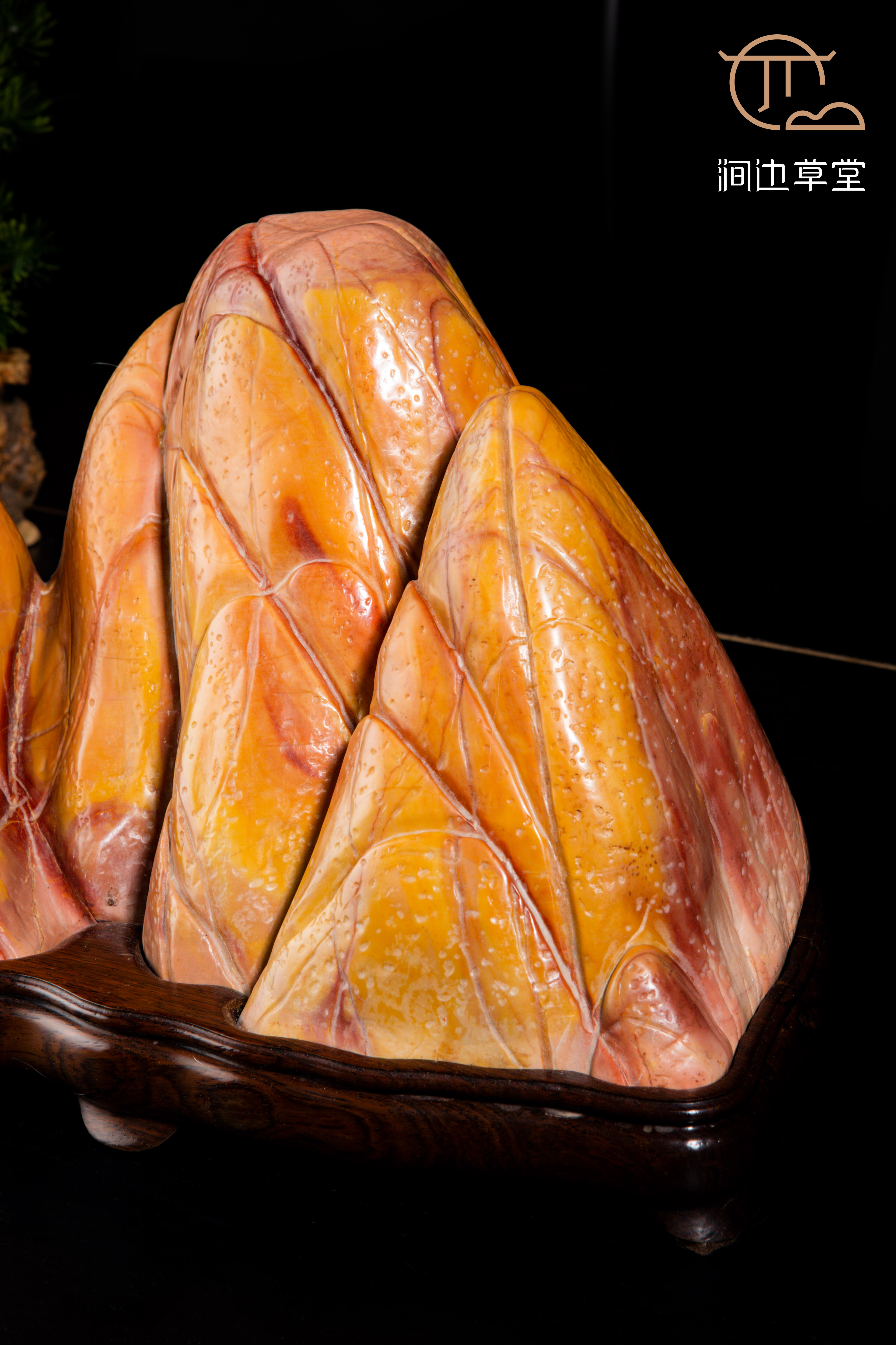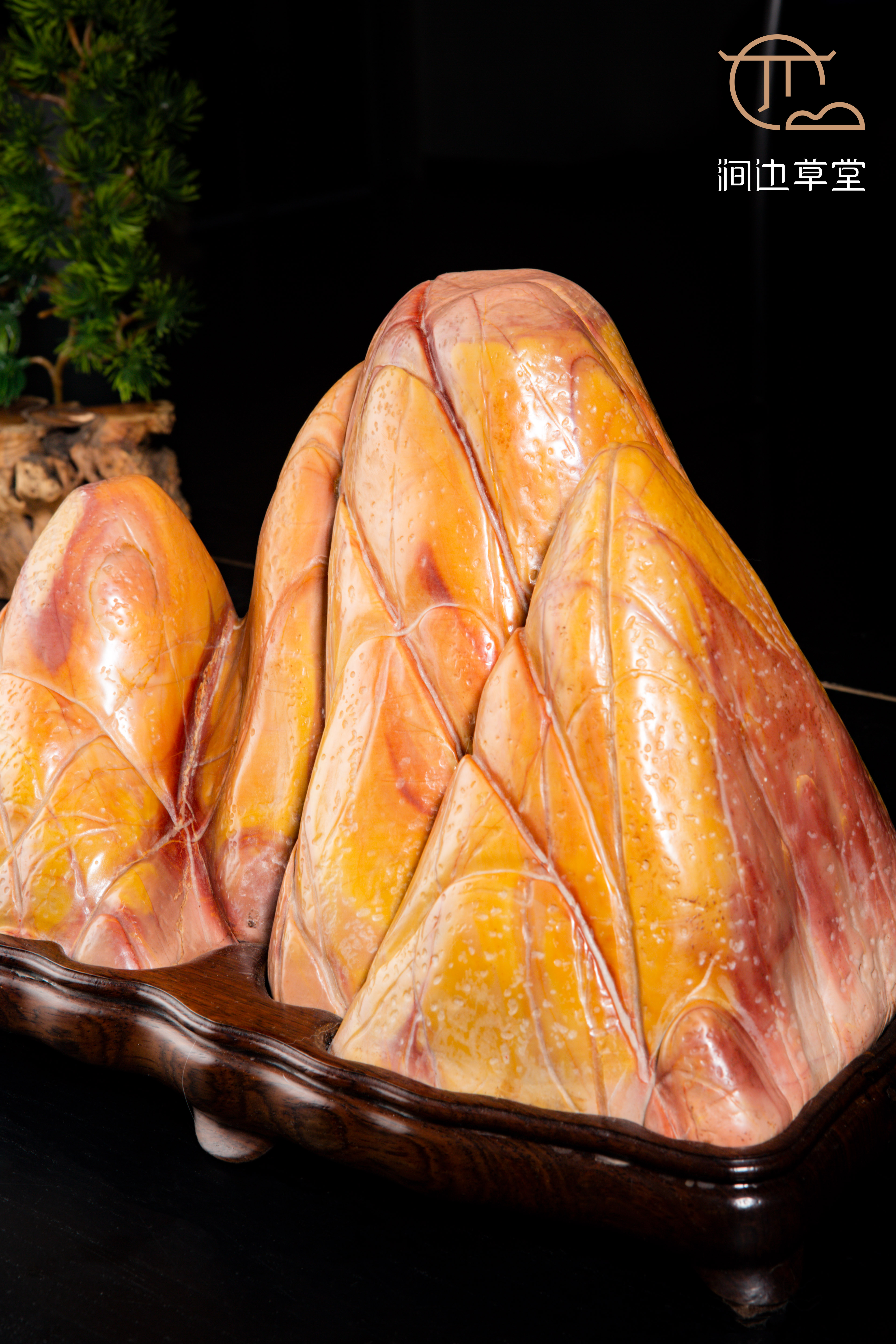 彩灵璧石文房大山子,色泽艳丽,视觉冲击力强,整体气息既文雅又高贵,尺寸大。将其置于书房,每当看到它的颜色,就能使人心情愉悦,因此它是藏在书房中的多巴胺。