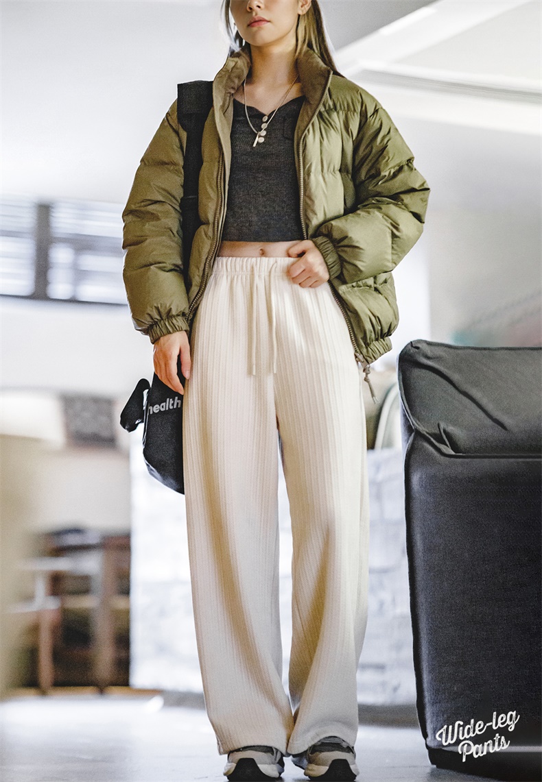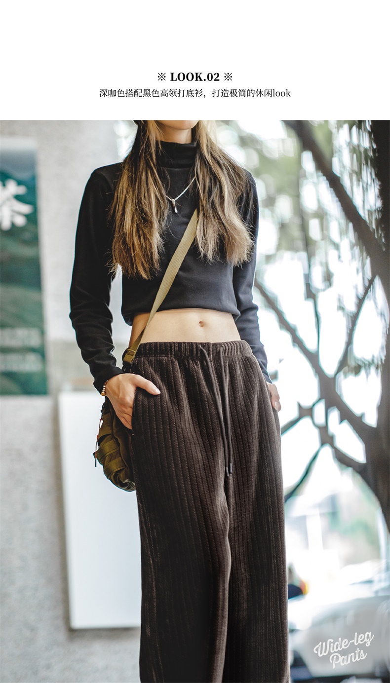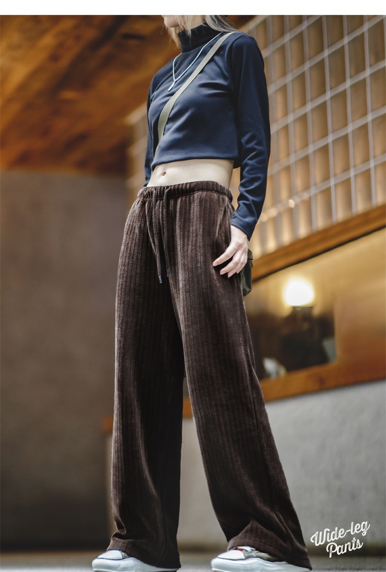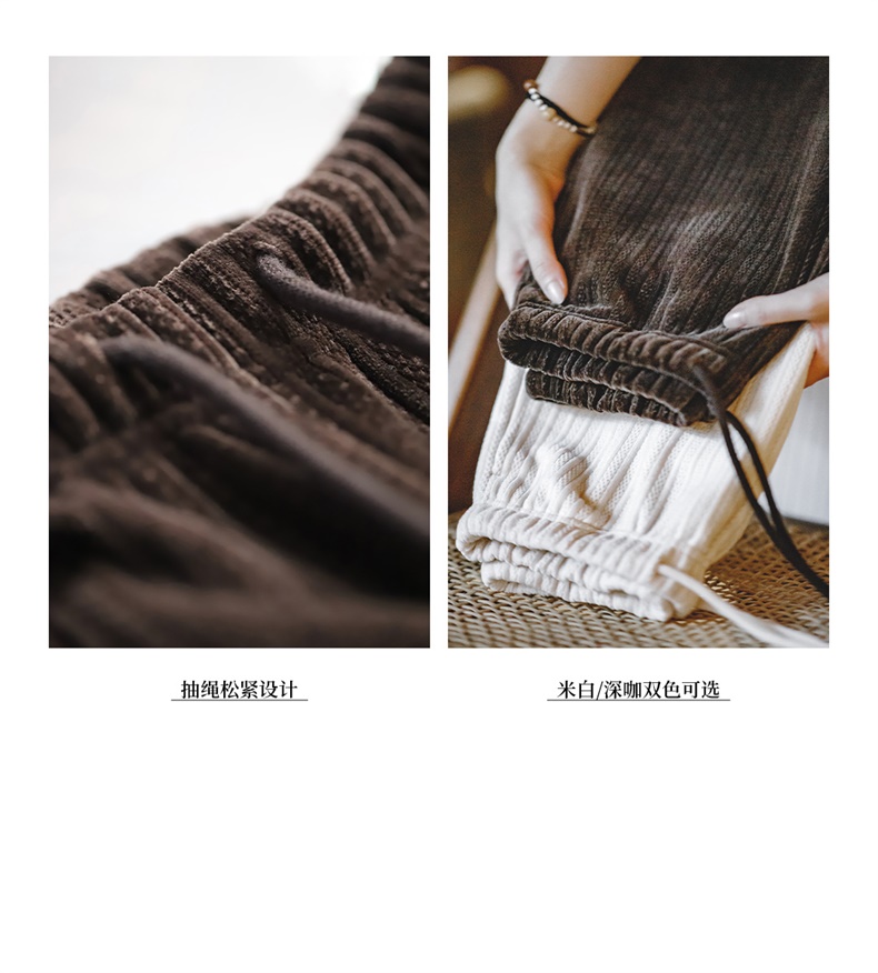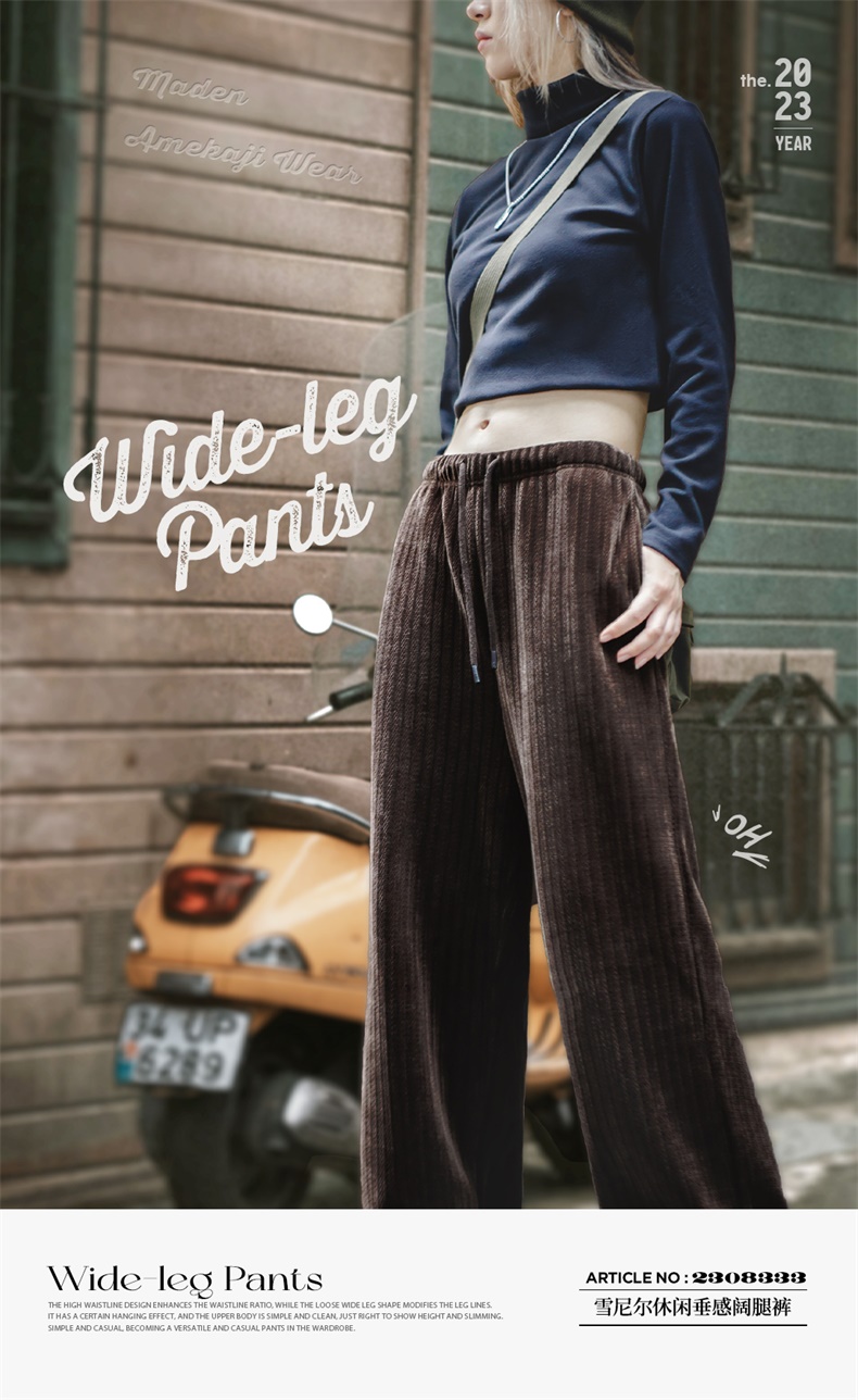 马登女装美式复古雪尼尔直筒垂感阔腿裤软糯风窄版显瘦休闲裤子秋