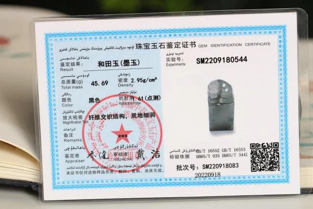和田墨玉青花籽料【貔貅】印章赠证书:SM2209180544克重:45.69g尺寸:48mm*20mm*20mm