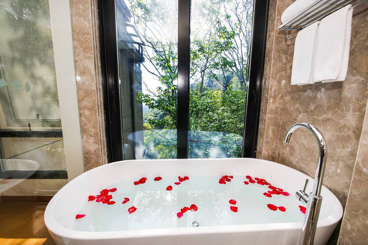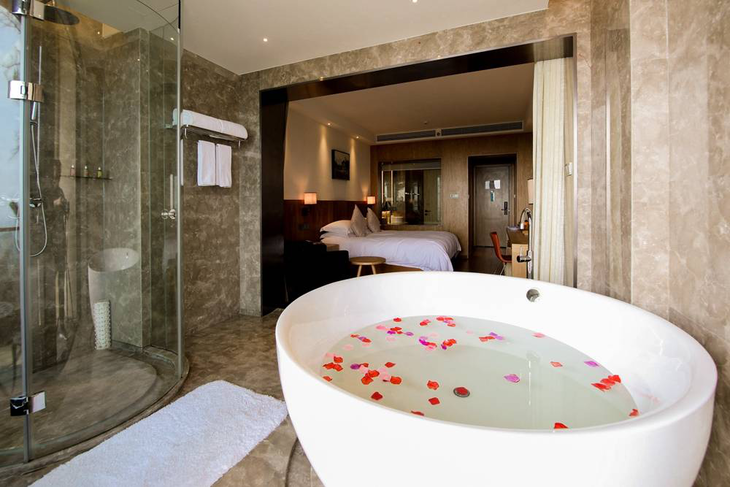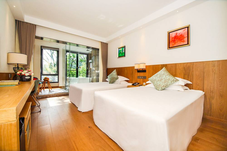 简约居家风格客房,精致却不张扬。欧舒丹系列洗浴,边泡浴边赏景仿佛森林里的精灵~