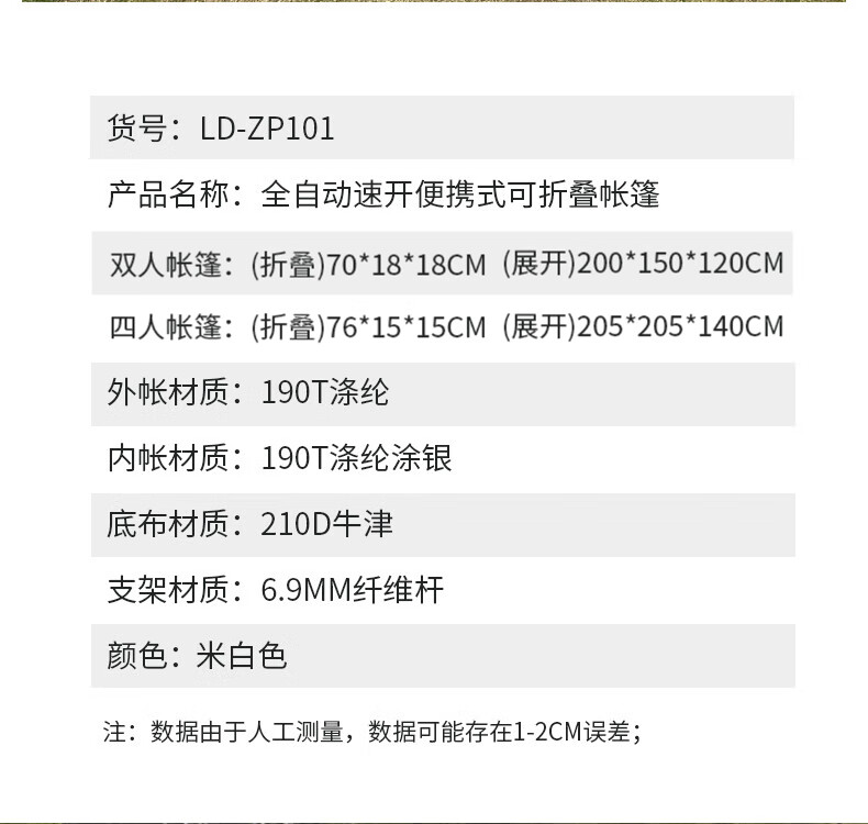 洛得兰德/ROADLAND全自动速开双人帐篷 【LXJYZQ2.0】