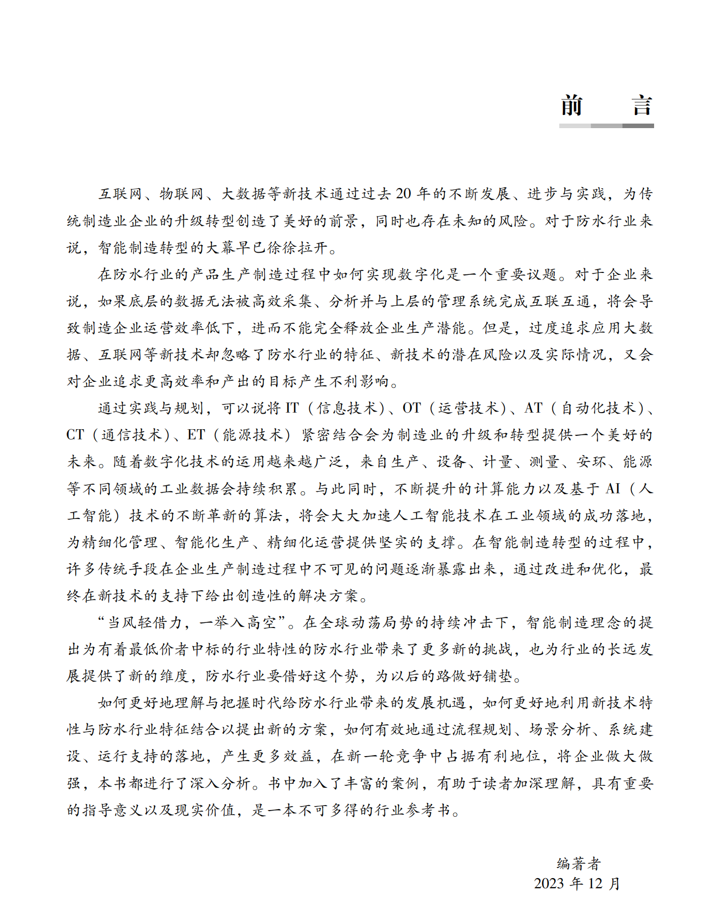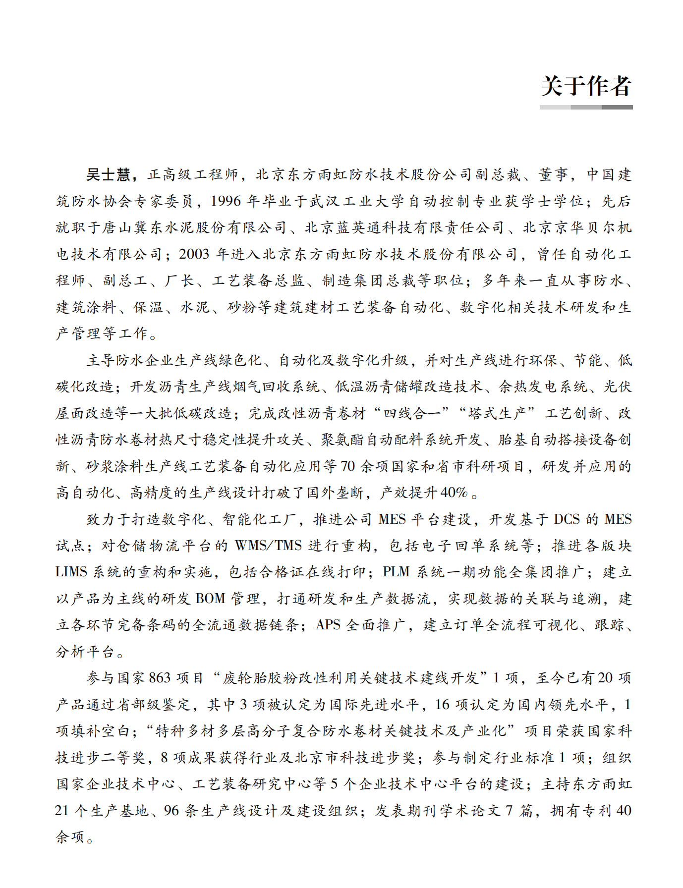 中国防水行业智能制造研究与实践/吴士慧主编 :中国建材工业出版社,20246(中国建材工业智能制造研究与实践丛书/江源主 编) ISBN 9787516036778