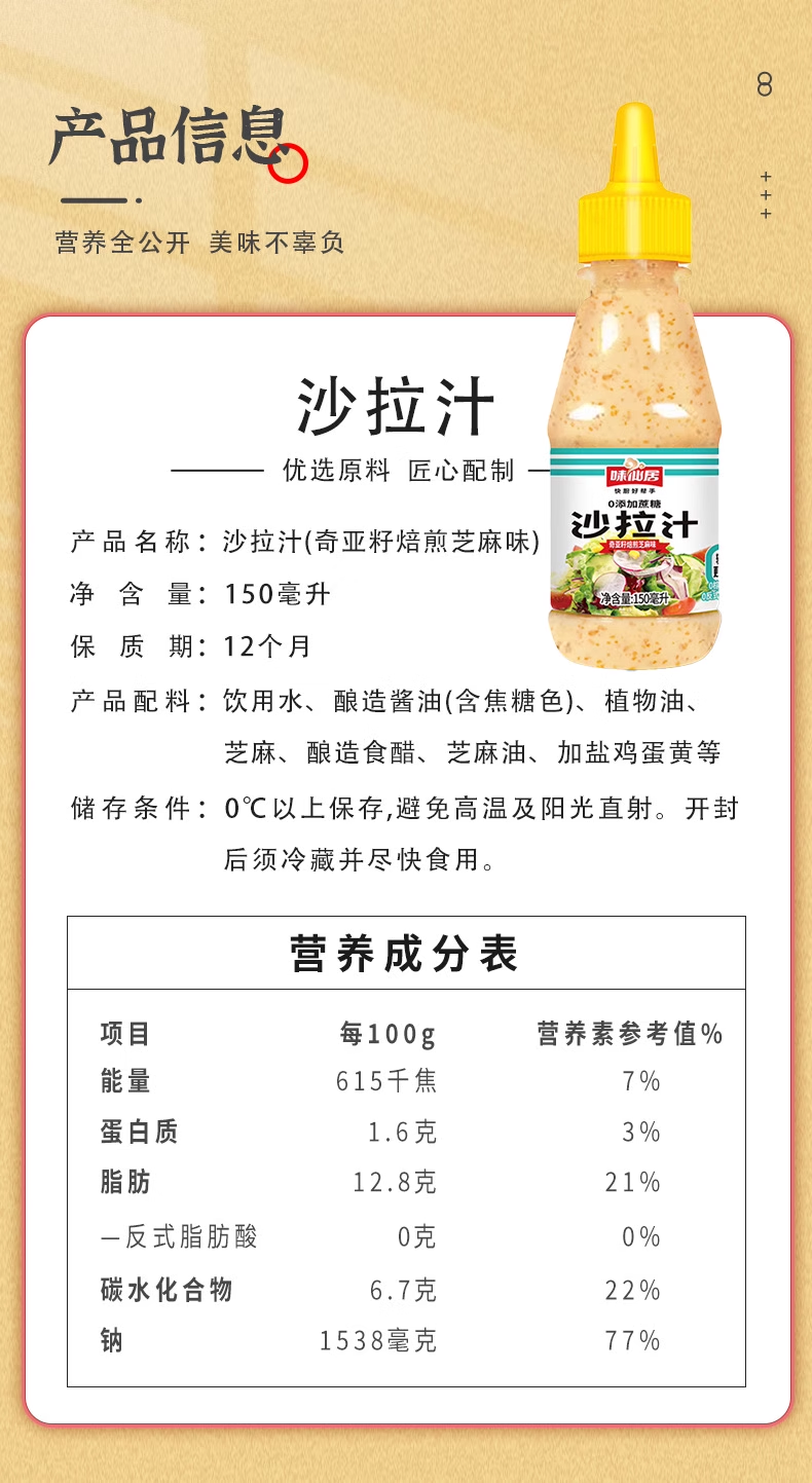 【1件起全国包邮】轻食奇亚籽沙拉汁千岛酱无蔗糖(150ml*1瓶)