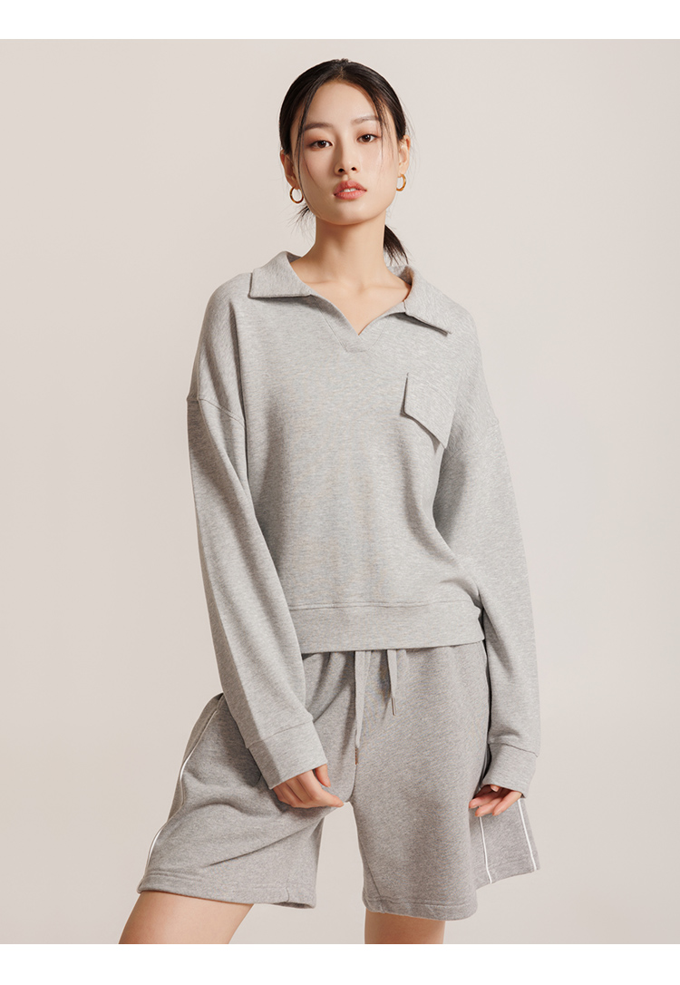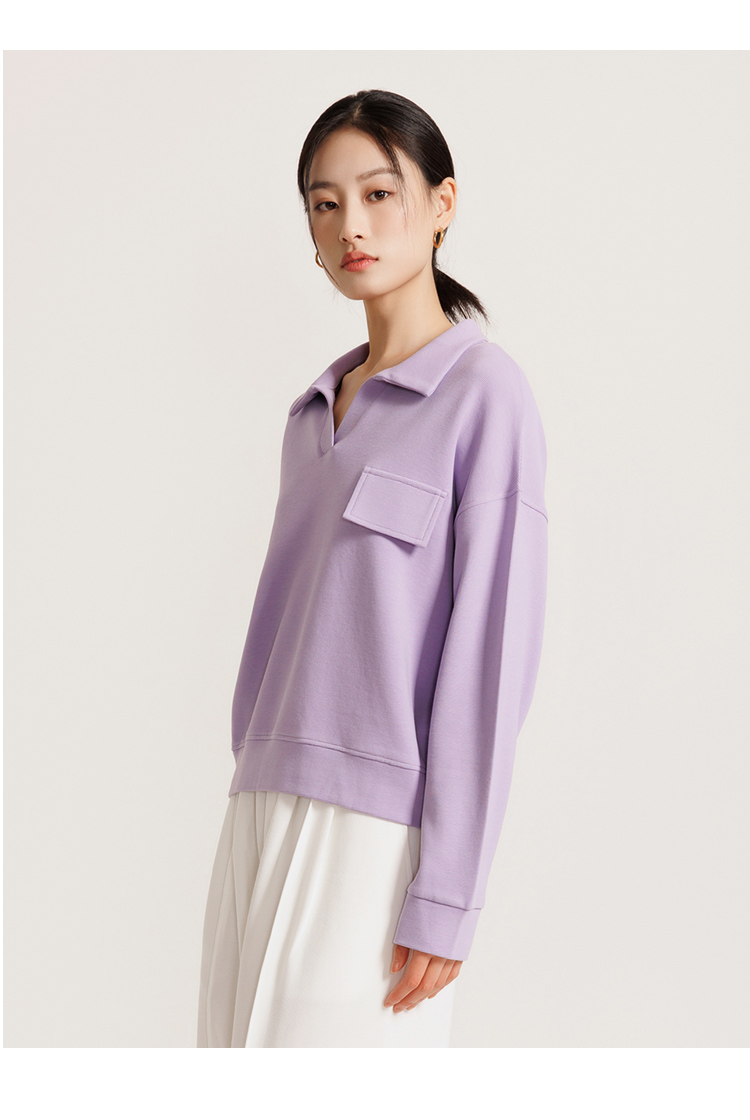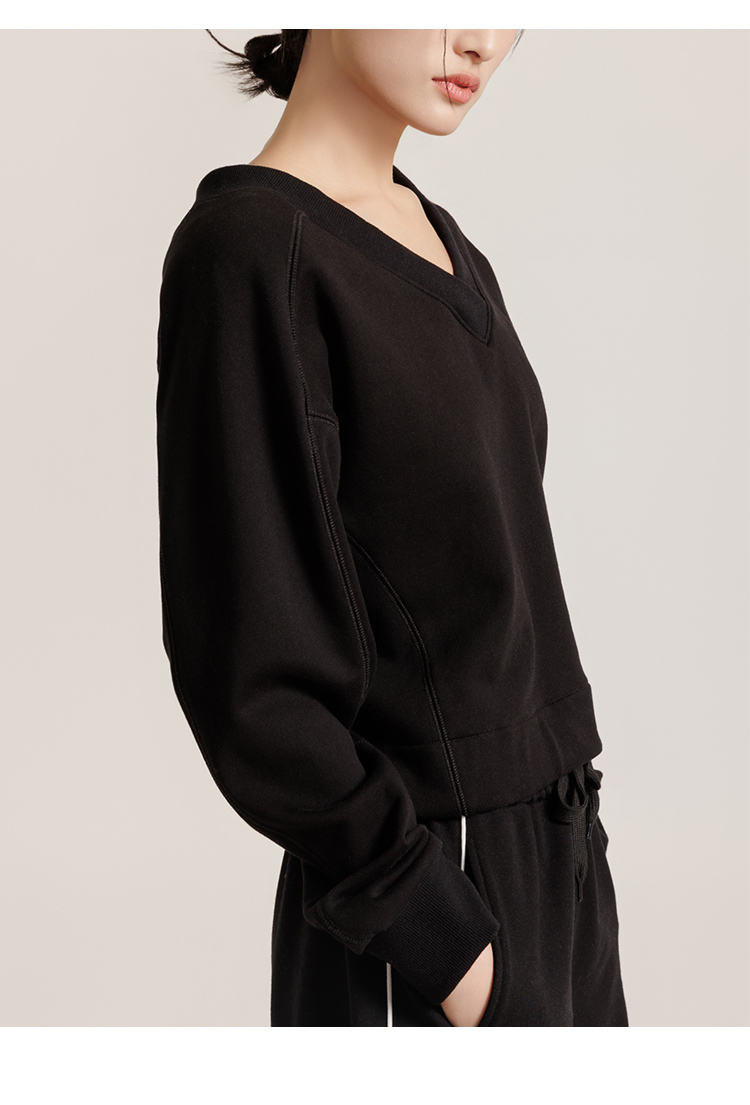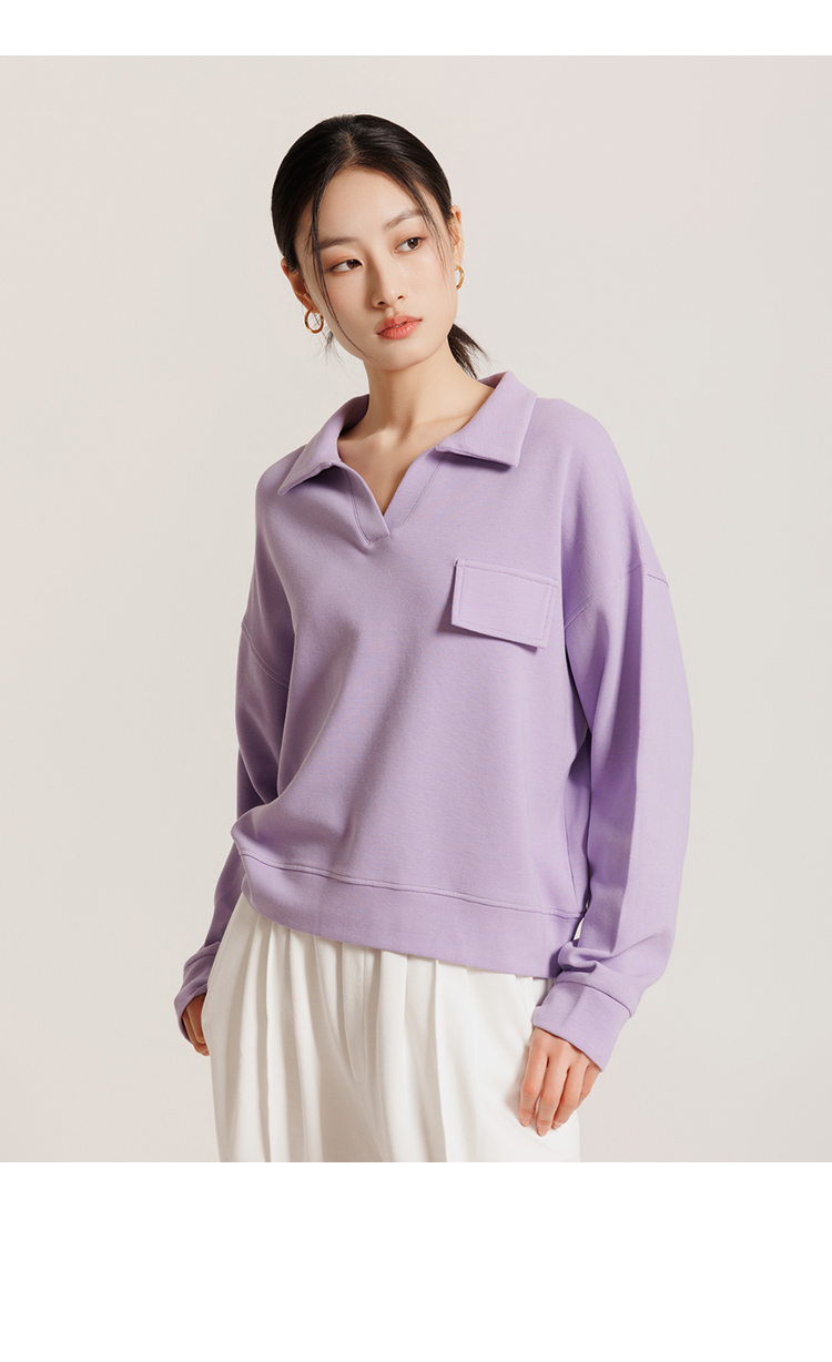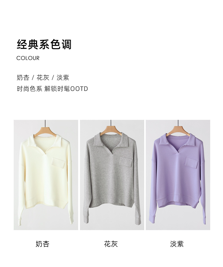 [屁侠推荐]米馨悦 Polo领落肩短卫衣休闲通勤风/V领插肩袖版休闲卫衣/大落肩短款基础版卫衣