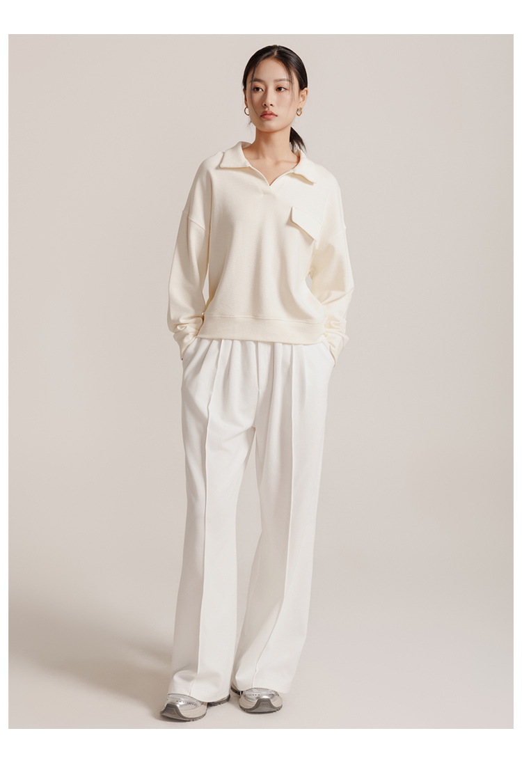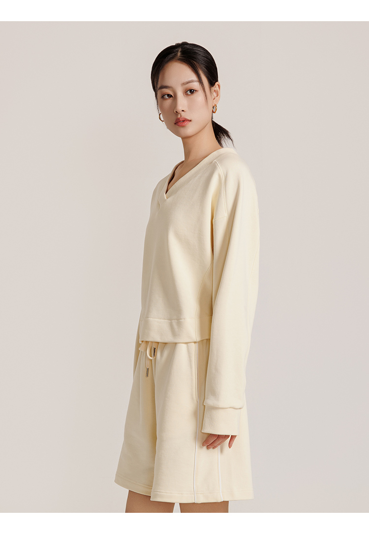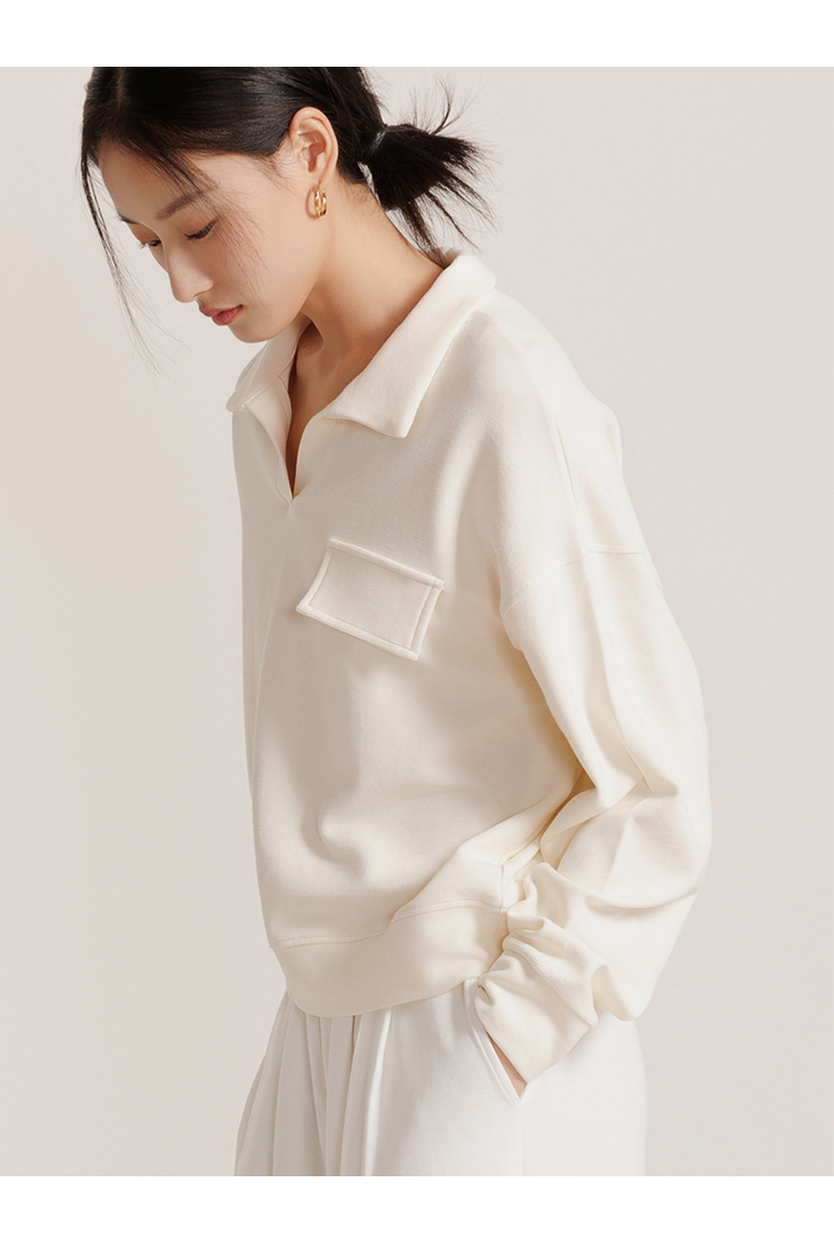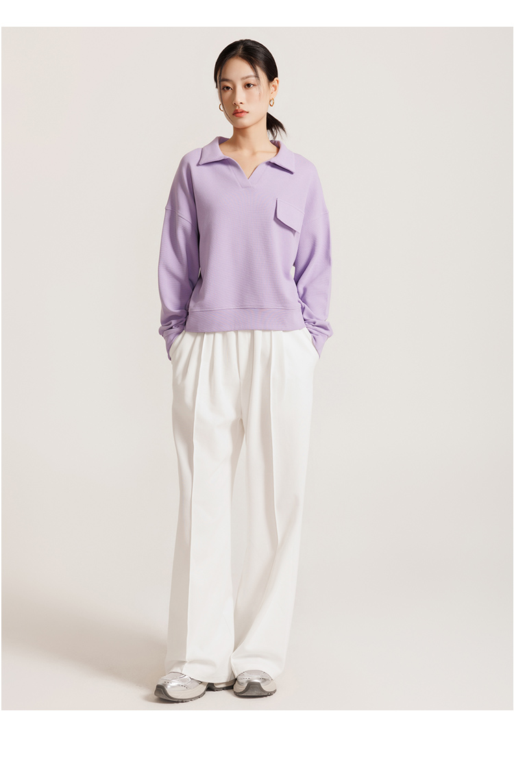 [屁侠推荐]米馨悦 Polo领落肩短卫衣休闲通勤风/V领插肩袖版休闲卫衣/大落肩短款基础版卫衣