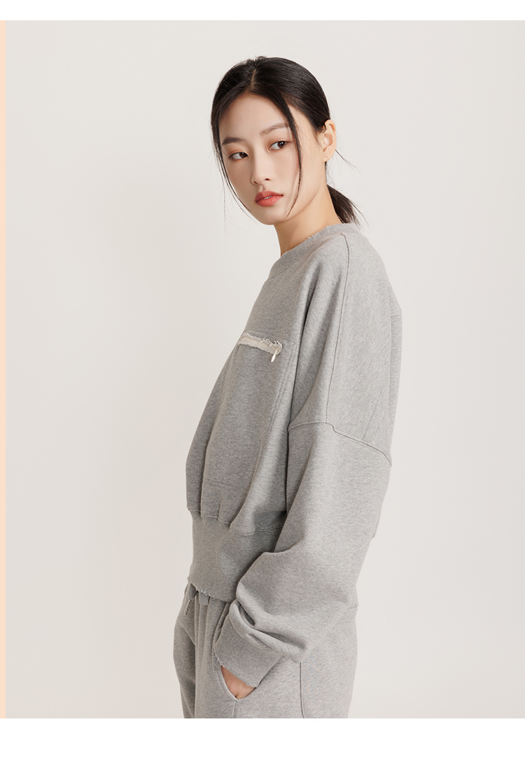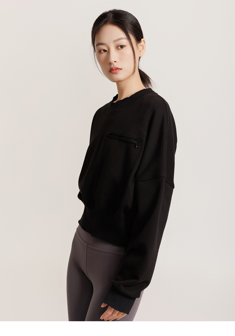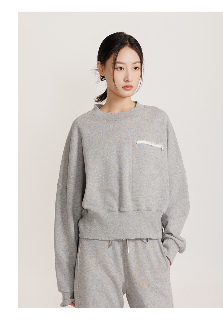 V领插肩袖版休闲卫衣,有麻灰、黑色及米黄三色。同样是宽松小短款,视觉提高腰线,五五身材也能穿出超模感。前后交错V领设计,即便单穿也能很好地修饰脖子线条,十分显脸小。大身多道分割线,立体拼接,让整体造型看来更有层次感,随性自由,减龄妥妥的,还有插肩袖设计,修藏肉显瘦效果满分!领口、袖子都是螺纹设计,下摆后面松紧带收束,穿起来更防风有型!