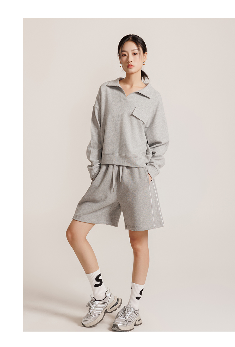 大落肩短款基础版卫衣和V领插肩袖版休闲卫衣,相较会更厚实些,Polo领落肩短卫衣则相较薄点点,大家可以根据需要来挑挑!我自留的是麻灰色的大落肩卫衣,真的好,软糯又有廓形,走线又细密,贴肤穿也不扎,大牌品质了!短短款在视觉上比例也有更好,随便套在T恤外,加上瑜伽裤鲨鱼裤活力满满!一件能穿3季,这个价格真的完全可以无脑冲的!