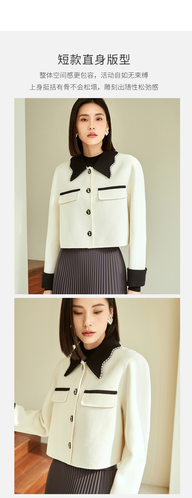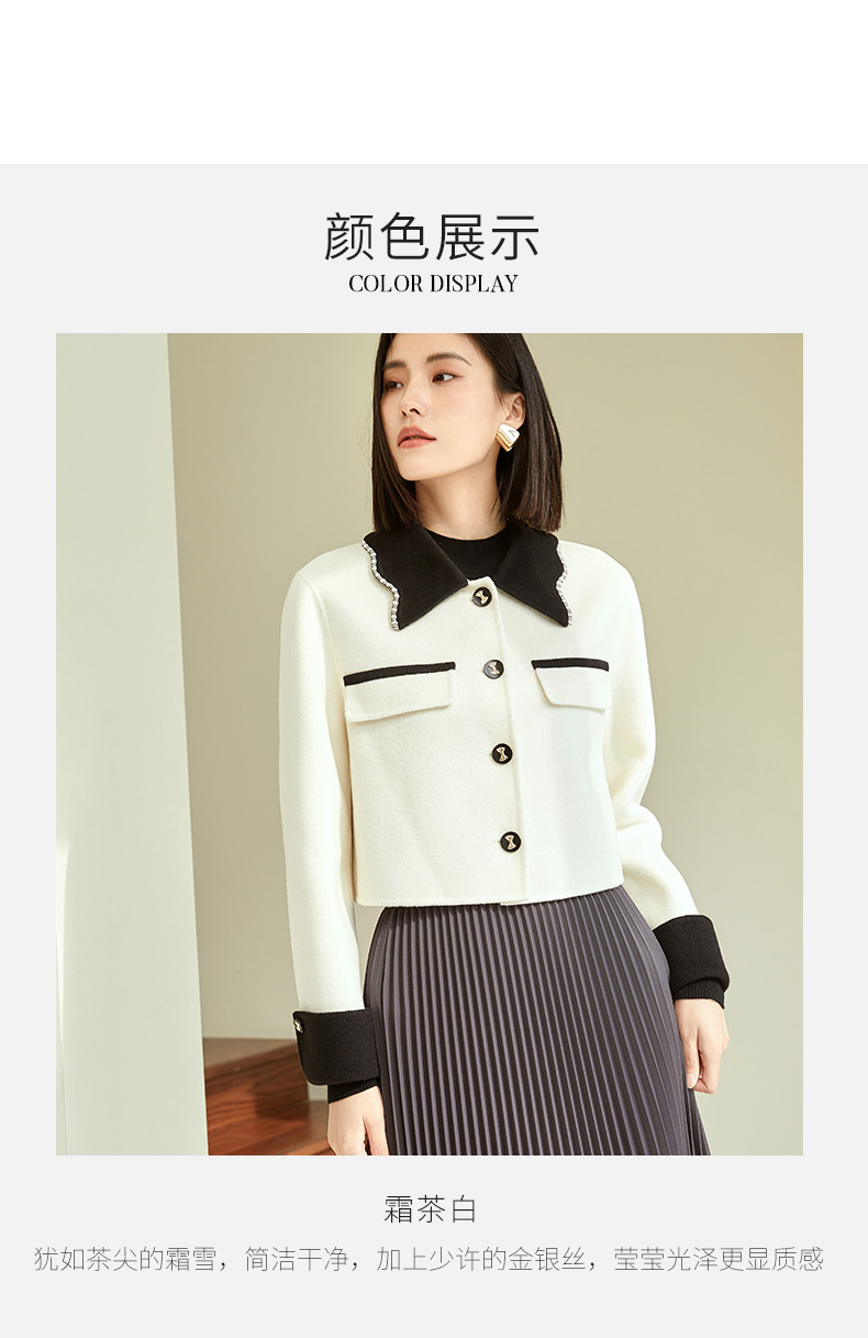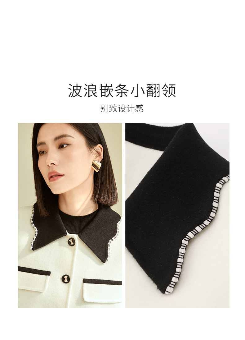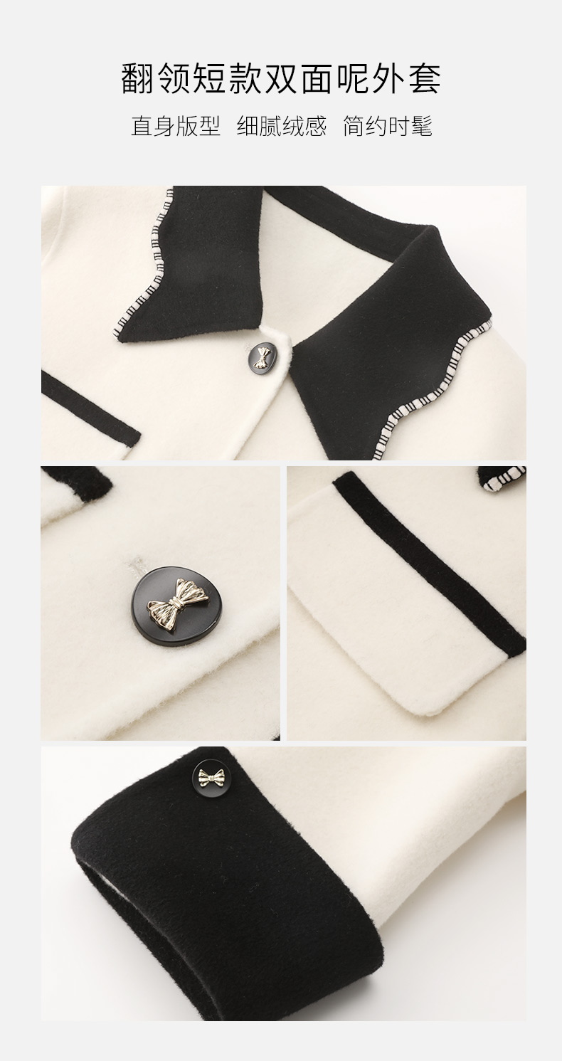 玳莎小个子双面呢短款大衣2023秋冬新款优雅波浪翻领正肩毛呢外套 DC37308