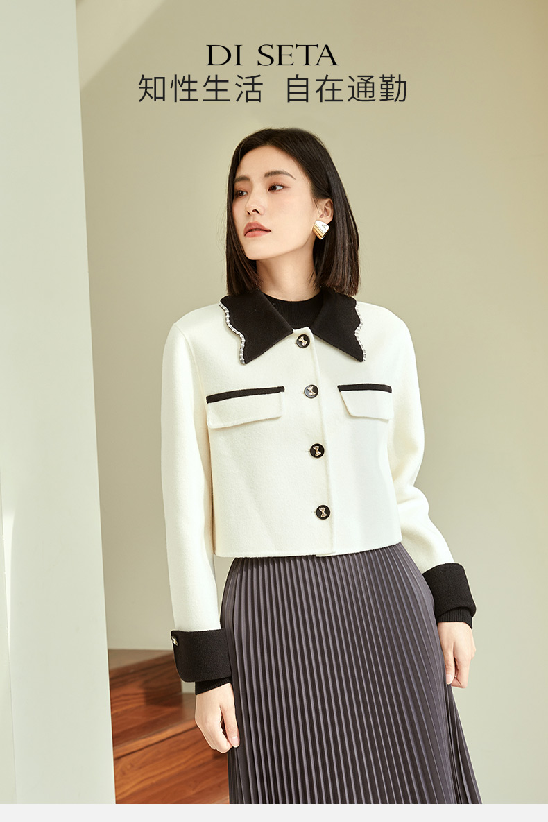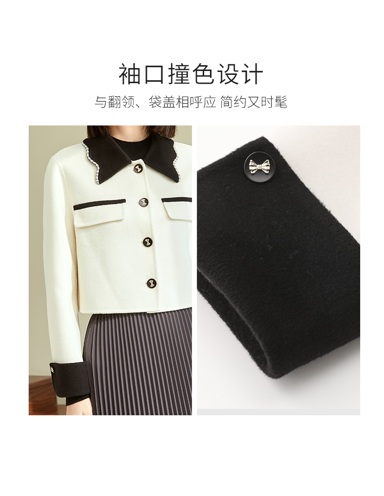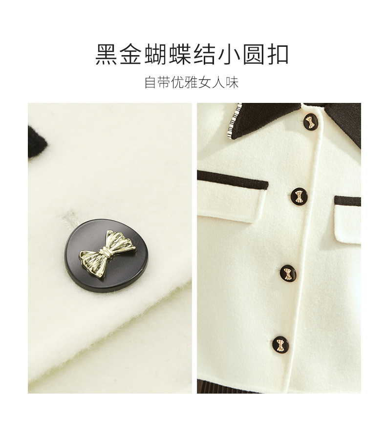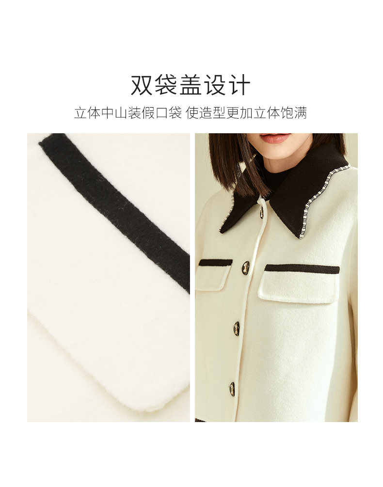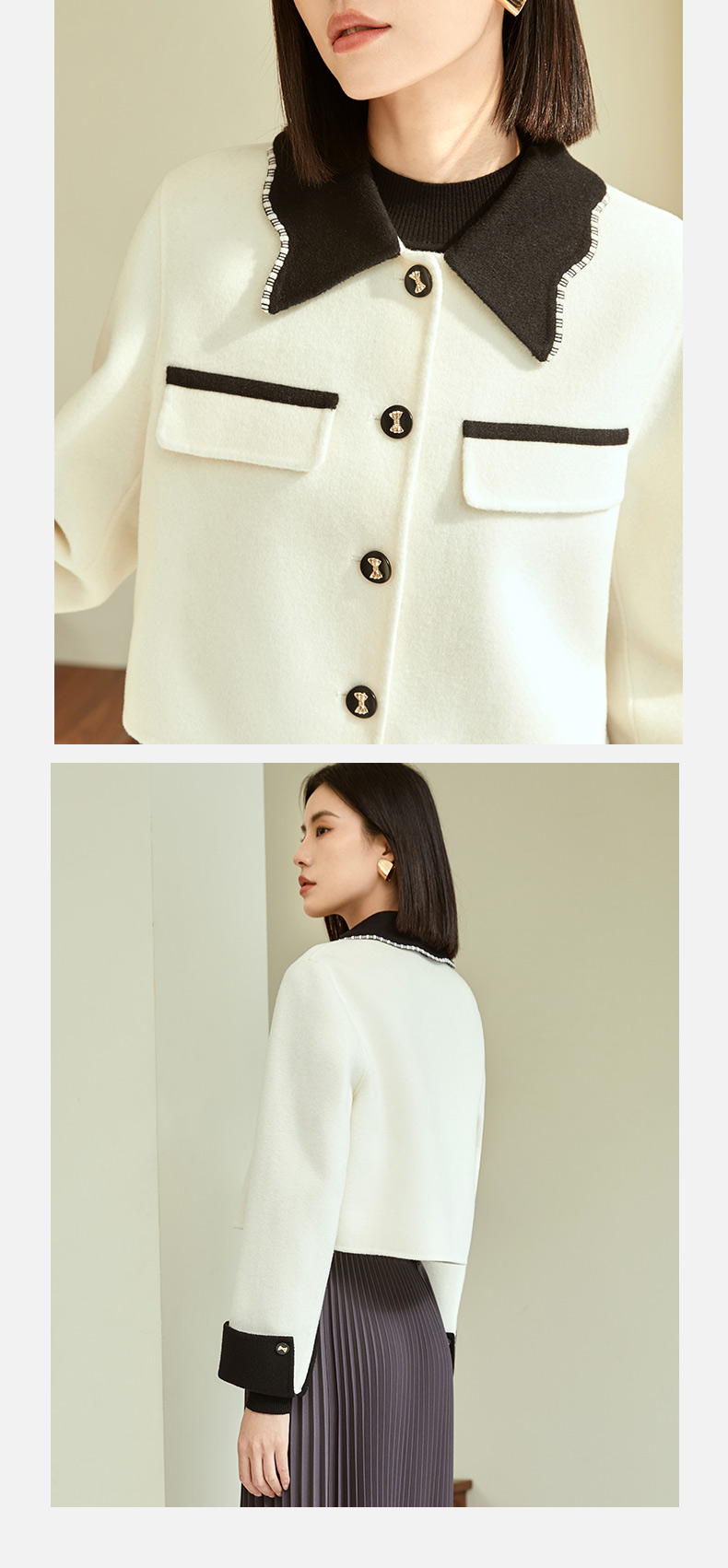 玳莎小个子双面呢短款大衣2023秋冬新款优雅波浪翻领正肩毛呢外套 DC37308