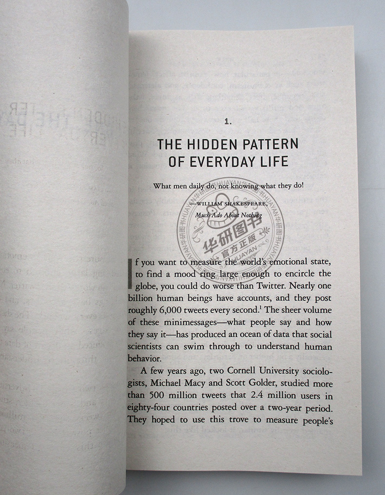 A few years ago, two Cornell University sociologists, Michael Macy and Scott Golder, studied more than 500 million tweets that 2.4 million users in eighty-four countries posted over a two-year period. They hoped to use this trove to measure people's emotions in particular, how "positive affect"(emotions such as enthusiasm, confidence, and alertness) and' negative affect"(emotions such as anger, lethargy, and guilt) varied over time. The researchers didn't read those half a billion tweets one by one, of course. Instead, they fed the posts into a powerful and widely used computerized text- analysis program called LIWC(Linguistic Inquiry and Word Count) that evaluated each word for the emotion it conveyed.