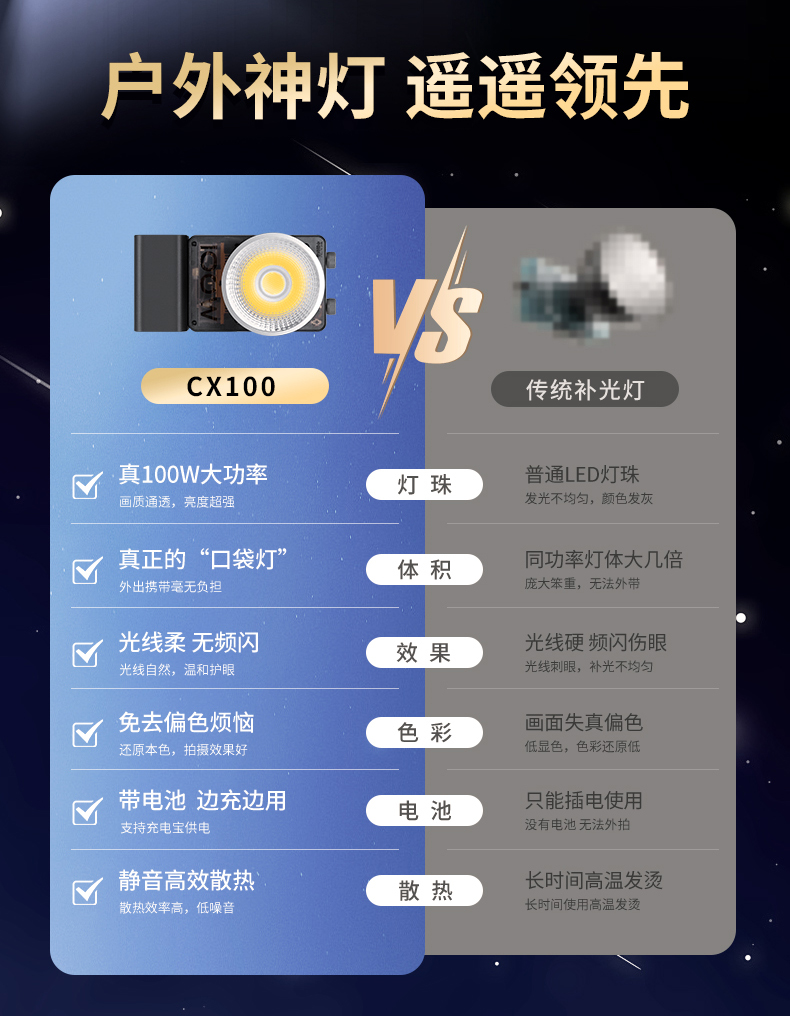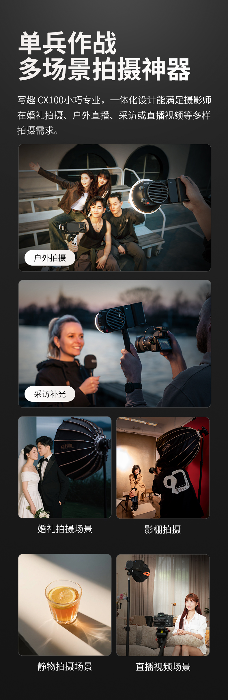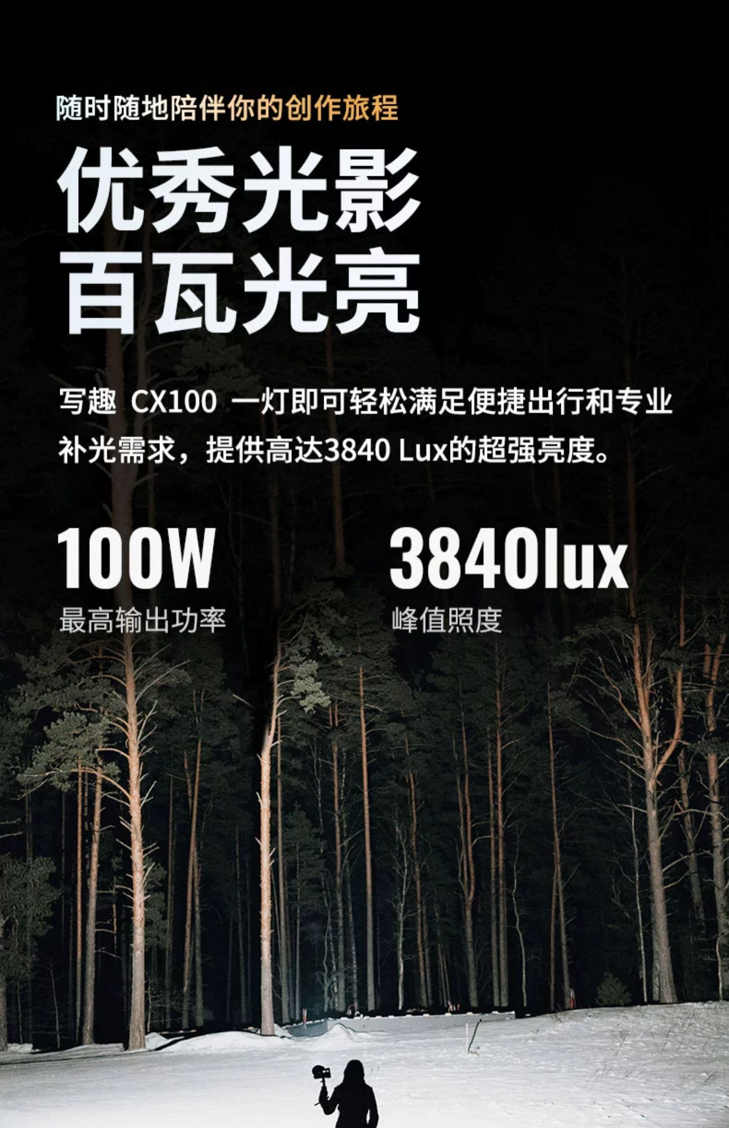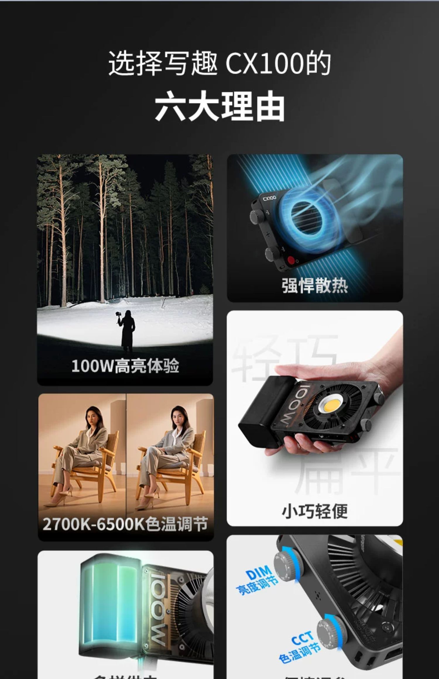 智云 写趣CX100摄影灯直播补光灯影棚摄影拍照常亮灯视频美食影视拍摄打光灯夜景外拍补光COB灯人像柔光灯