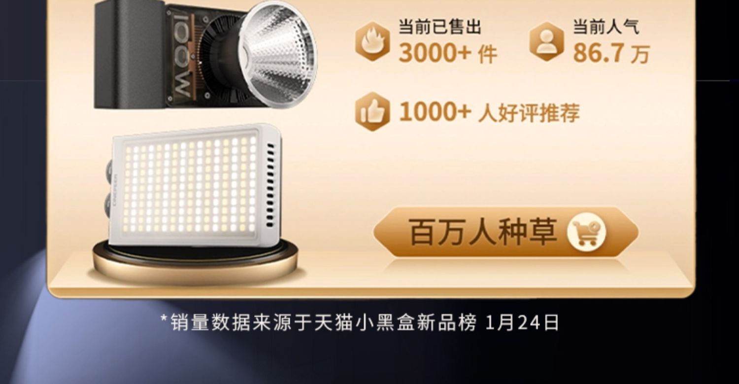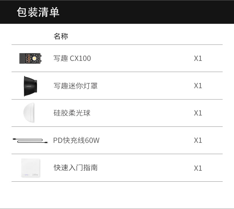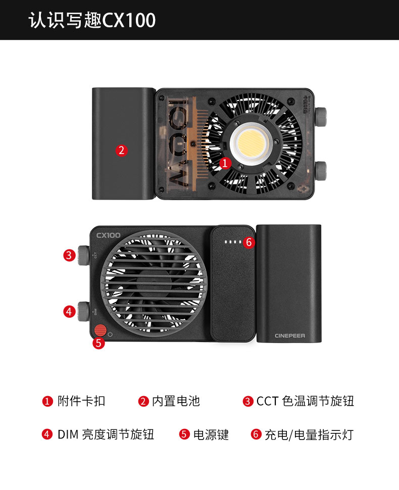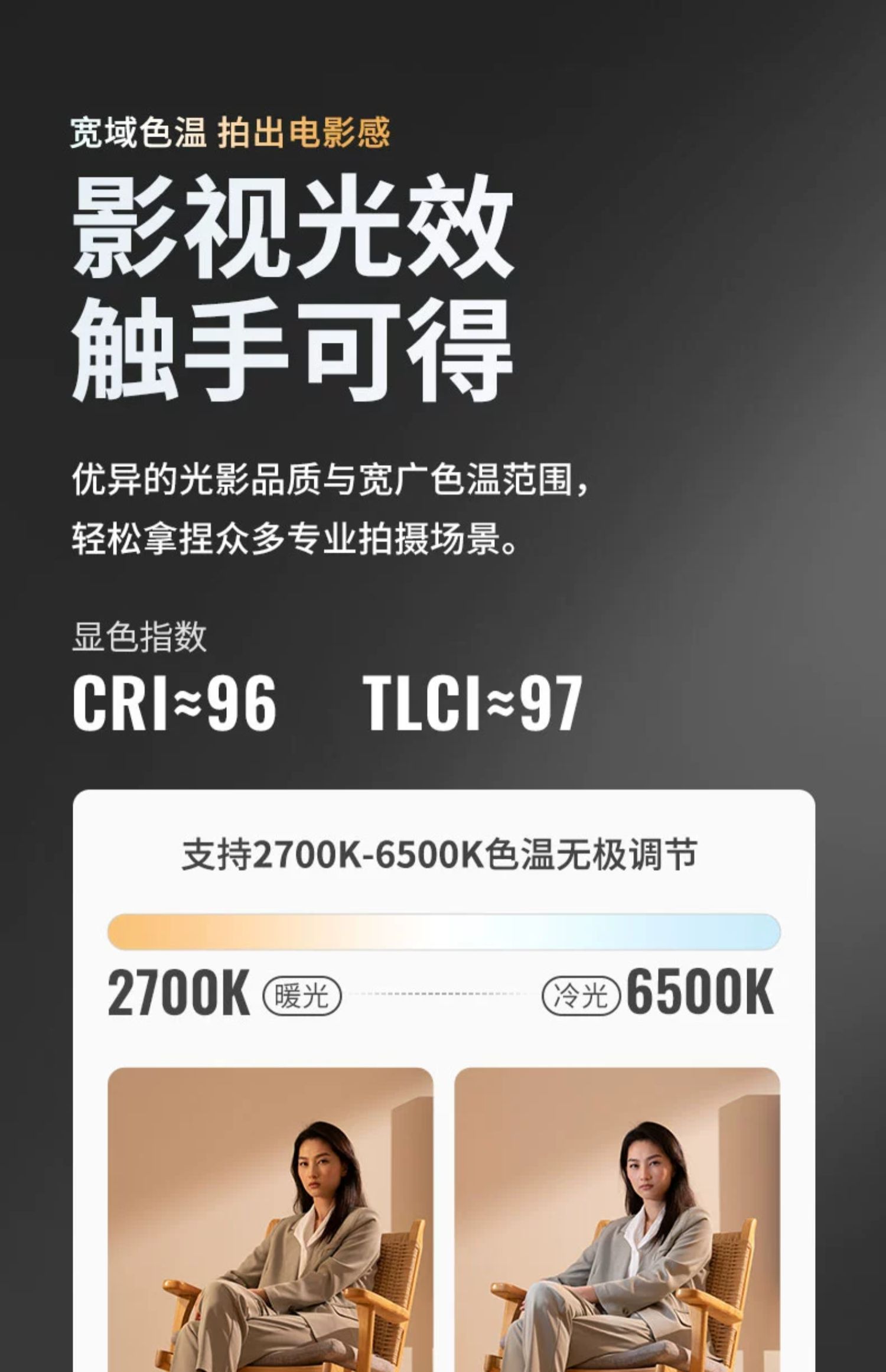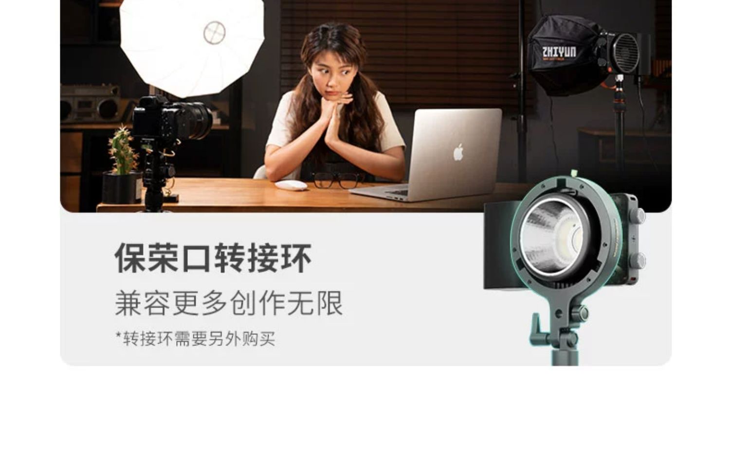 智云 写趣CX100摄影灯直播补光灯影棚摄影拍照常亮灯视频美食影视拍摄打光灯夜景外拍补光COB灯人像柔光灯