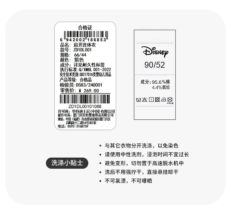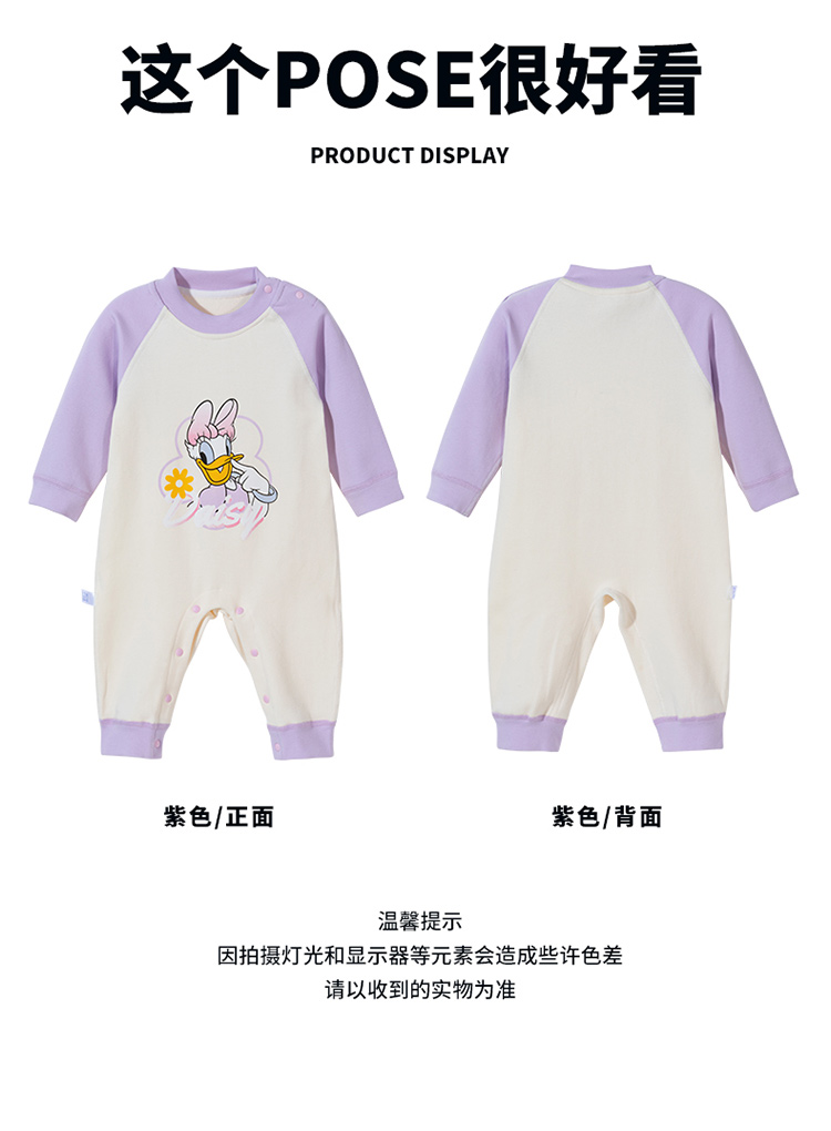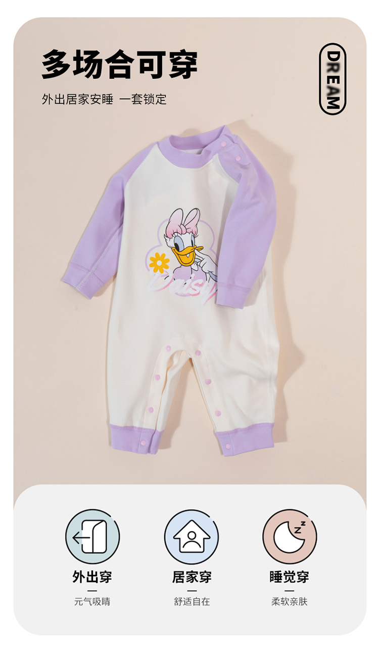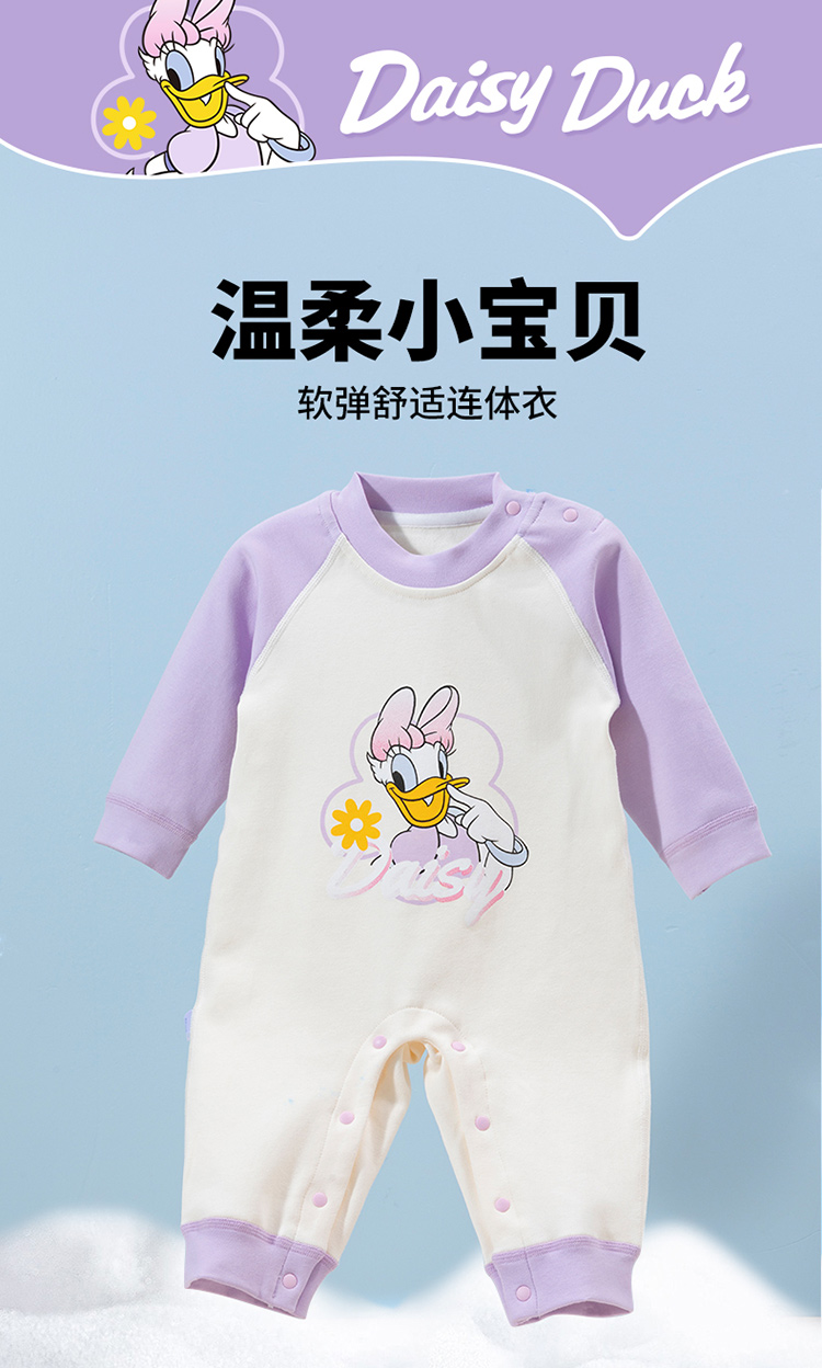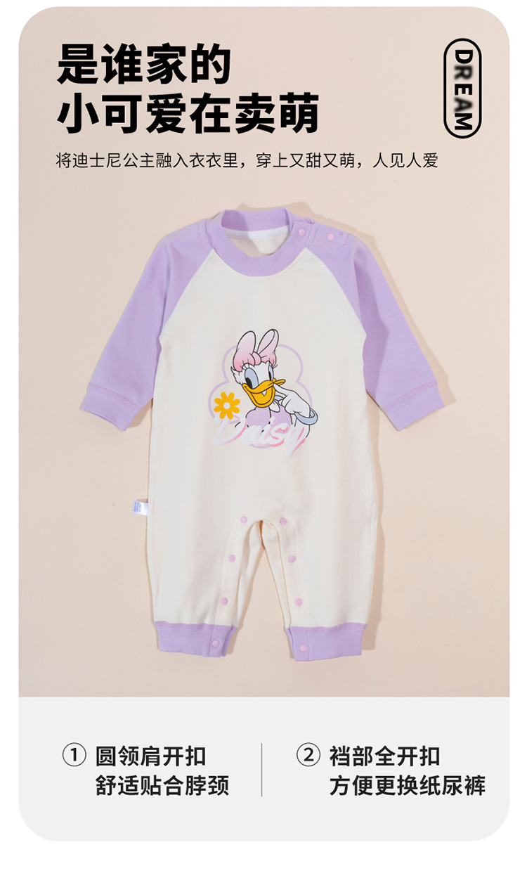 【商城同款】迪士尼婴儿连体衣春季宝宝哈衣爬服秋装新生儿外出衣服童装肩开扣连体服ZD1DL001