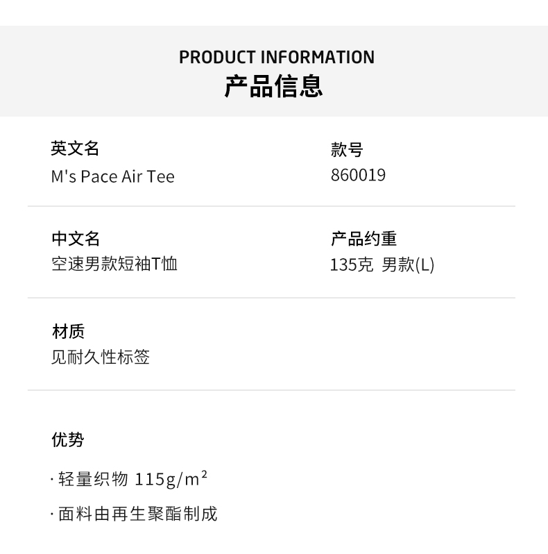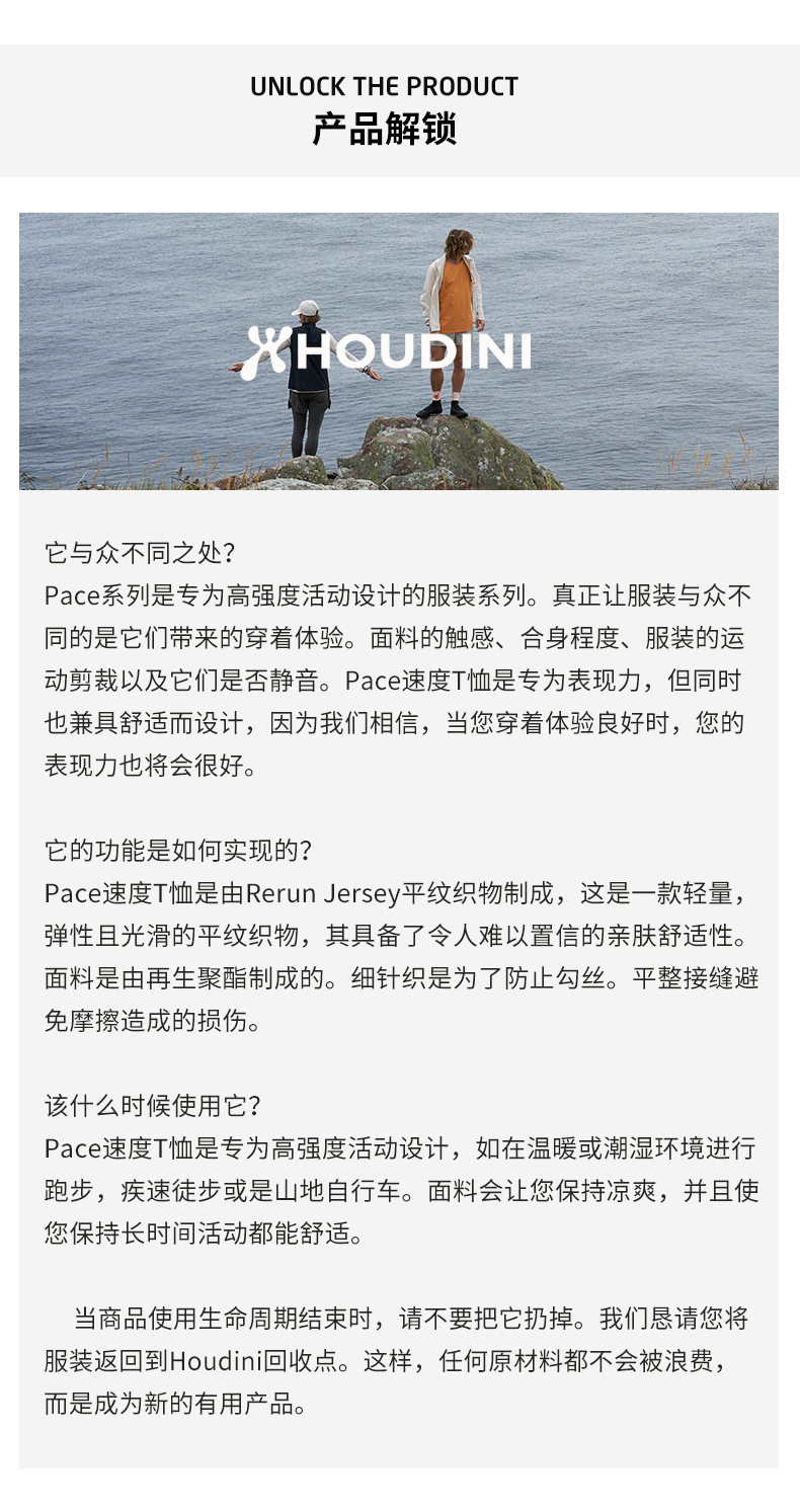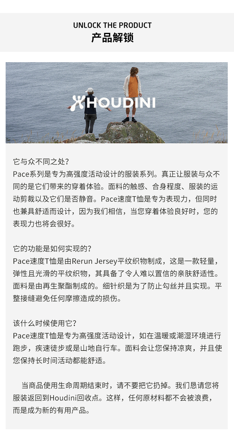 HOUDINI胡丁尼 Pace Air Tee 空速 男款户外舒适透气速干短袖T恤860019