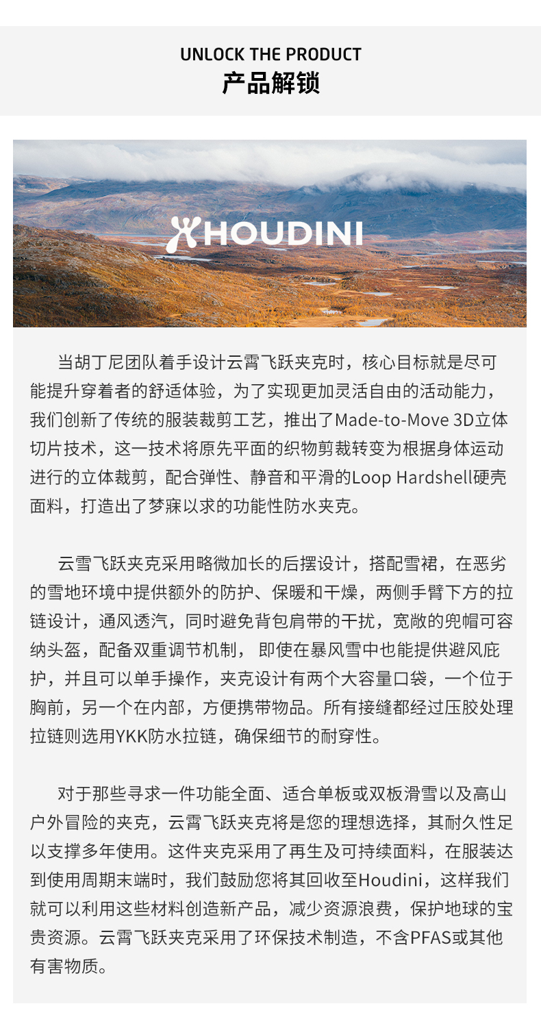 HOUDINI胡丁尼 Rollercoaster 云霄 男款户外防水带帽外套800060