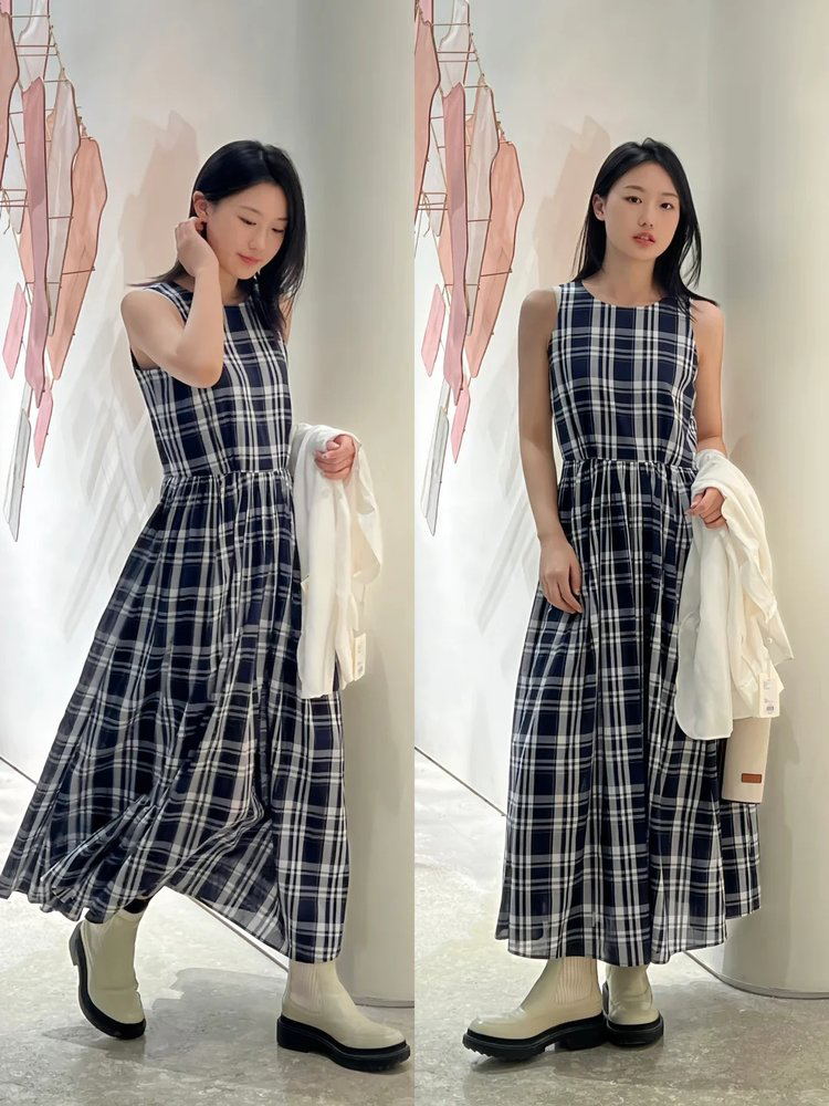 【版型:X 型收腰的黄金比例学】无袖 X 型收腰剪裁,是对女性曲线的致敬。高腰线下拉视觉比例,收腰设计精准勾勒纤细腰肢,裙摆呈自然 A 字展开,藏肉显瘦的同时,赋予行走间的飘逸姿态。