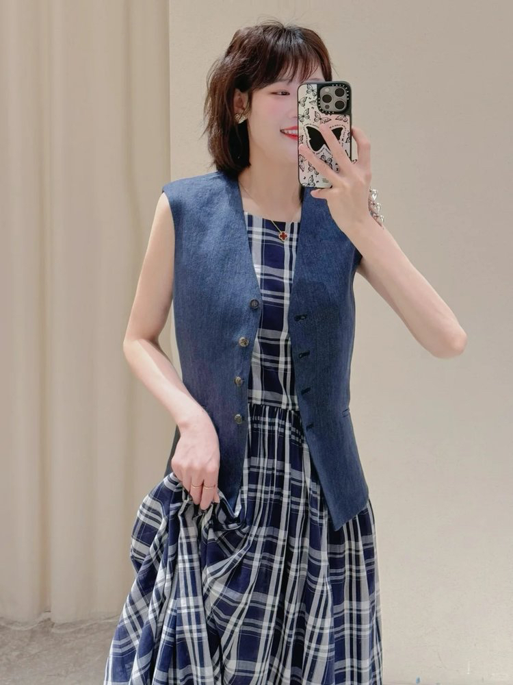 无袖设计释放肩颈线条,刚柔并济的版型,让优雅与随性完美融合,无论是通勤还是约会,都能穿出独属于你的气场。