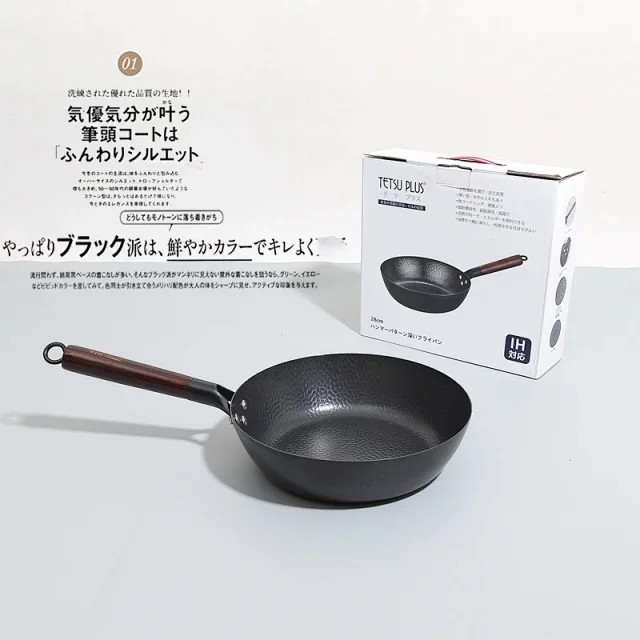 日本原封进口TETSU PLUS极铁煎锅!多功能不粘锅!无任何化学涂层,不挑锅铲,底厚壁薄,适合电磁炉和其他所有炉灶使用,越用越不粘,越用越省油,烹饪时会释放铁离子补充人体所需的铁元素,一口铁锅满足全家补铁日常,安心健康,品质保证。