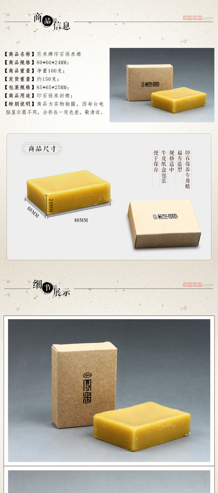 巨来牌印石保养蜡 100克黄蜡 青田石抛光封蜡
