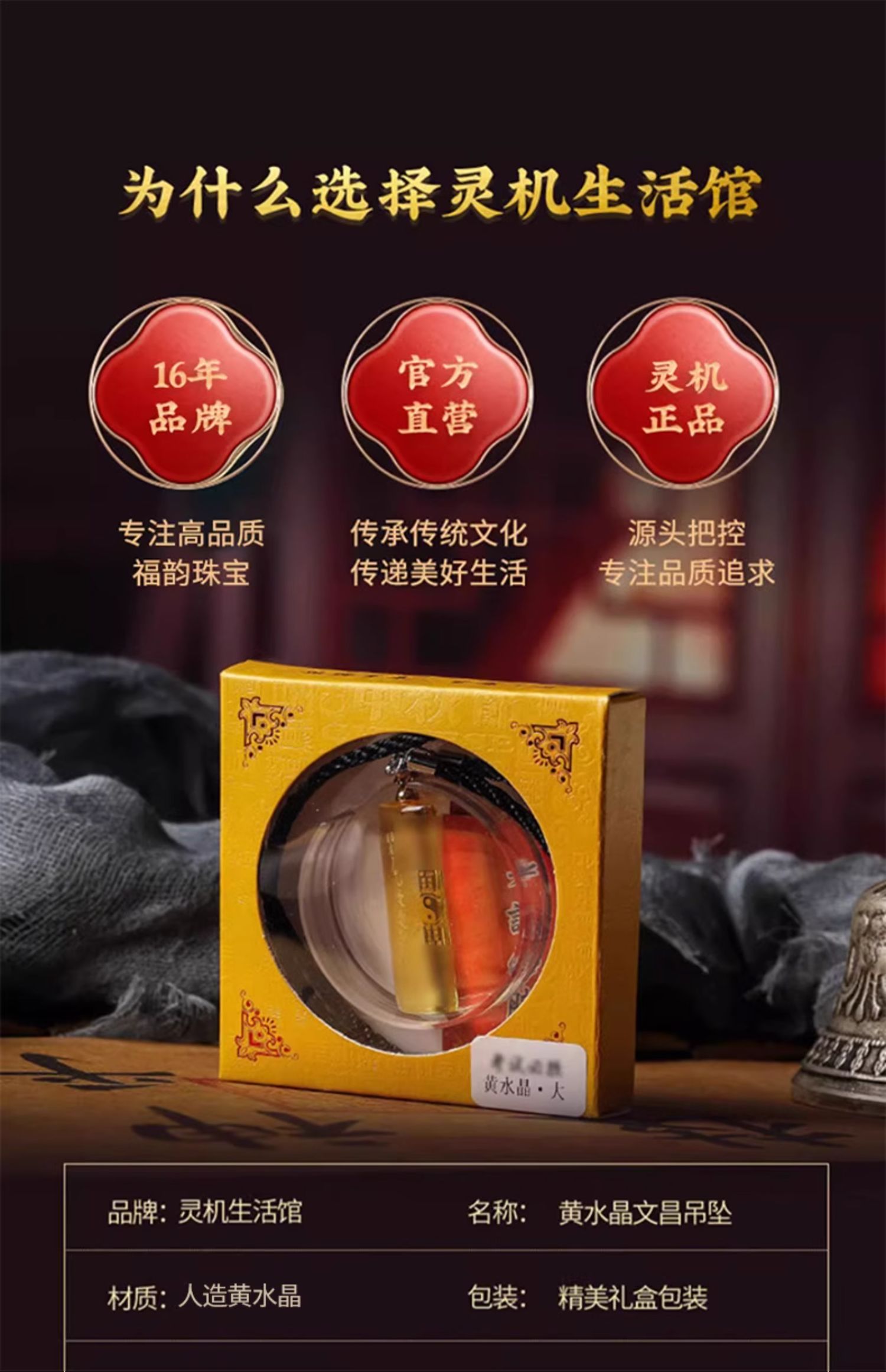 【祈愿吉品】文昌吊坠仿黄水晶项链