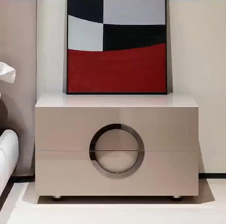 主材:米白色亮光烤漆+圆弧拉手亮面镀铬色