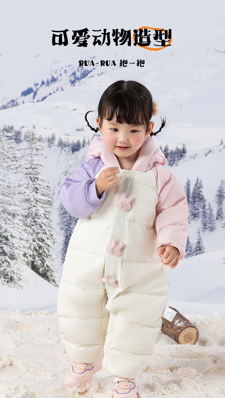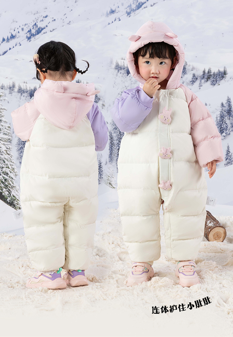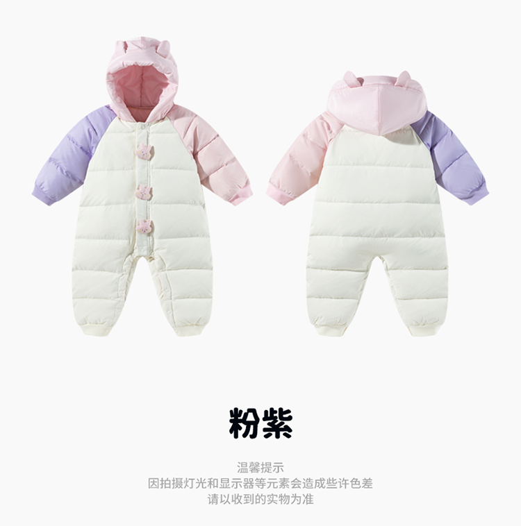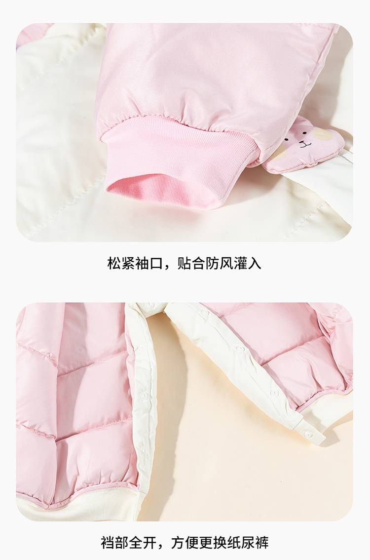 贝贝怡婴幼儿羽绒连体衣冬季新款女宝宝三防鸭绒外出抱衣爬服冬装ZB4DL008