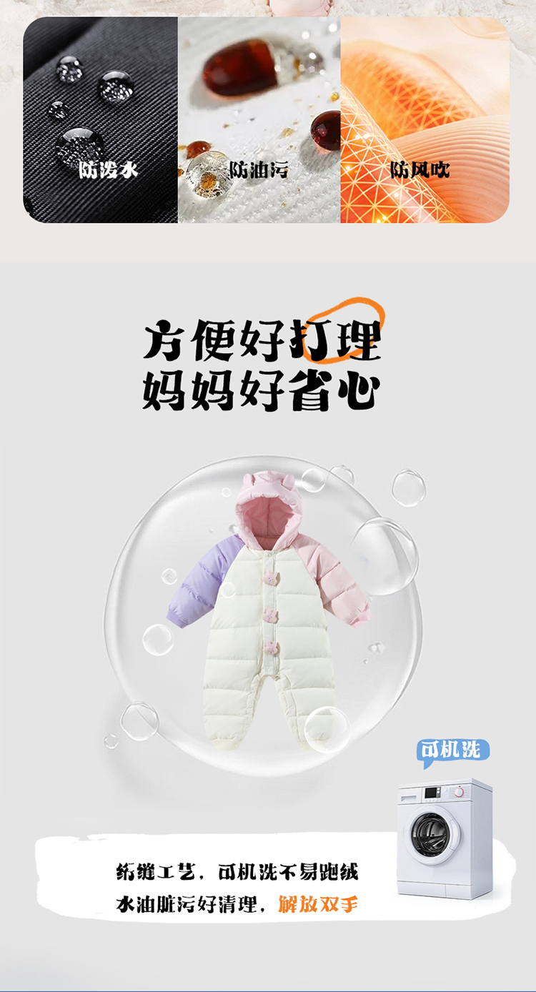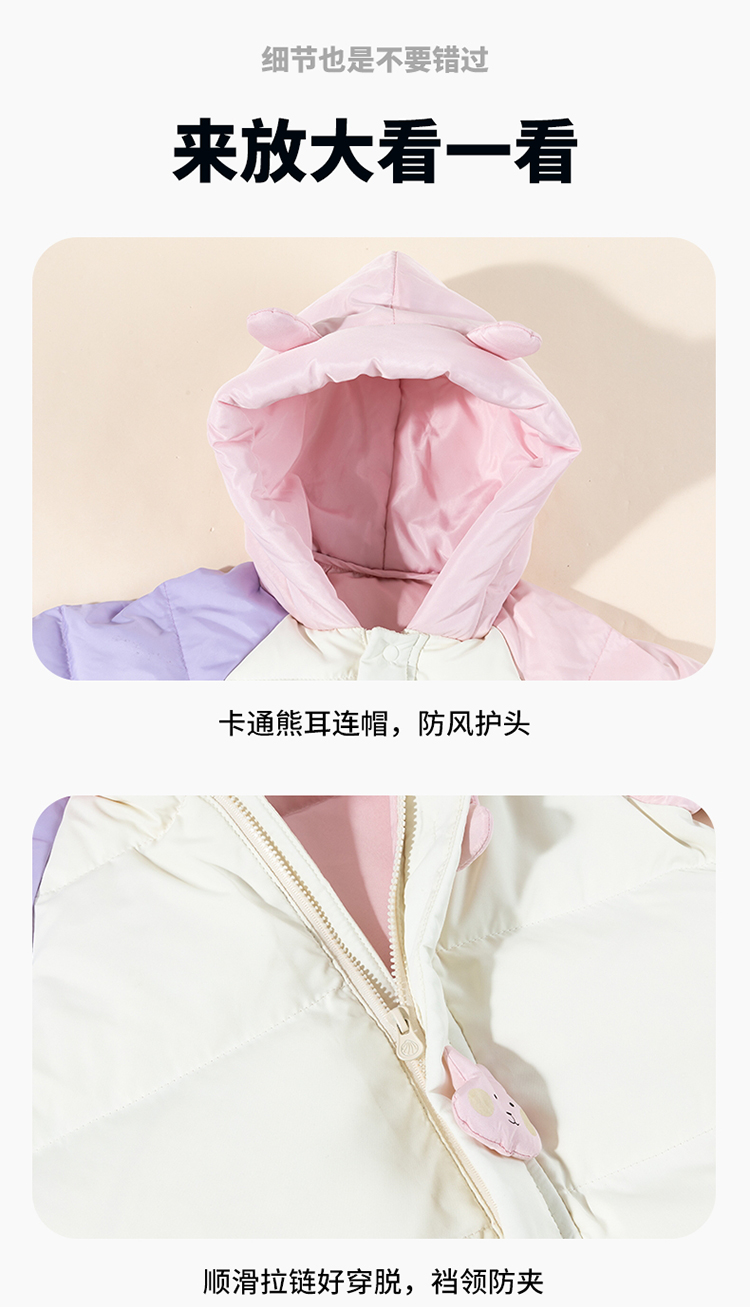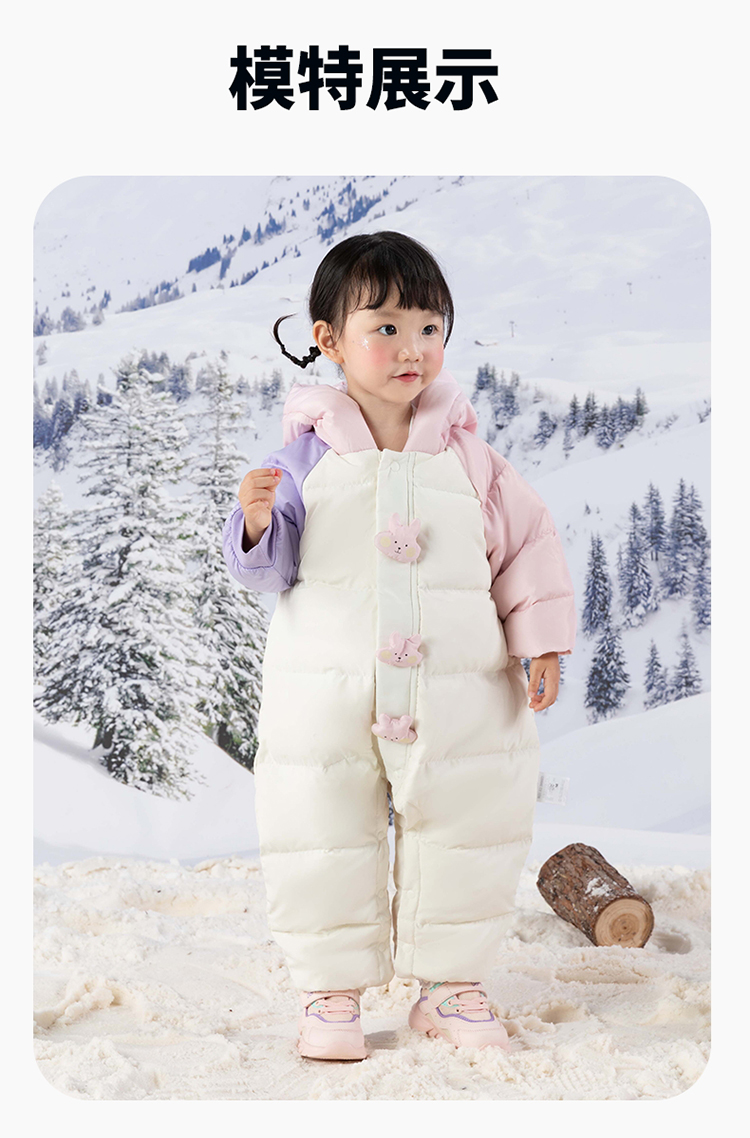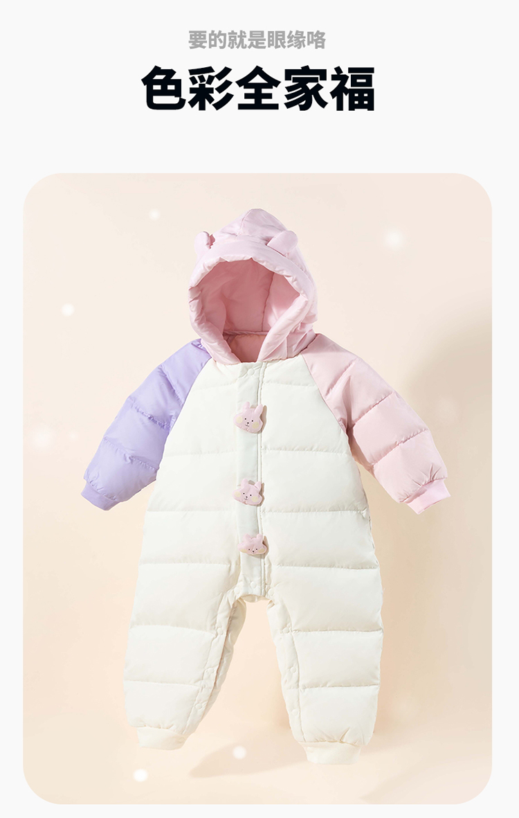 贝贝怡婴幼儿羽绒连体衣冬季新款女宝宝三防鸭绒外出抱衣爬服冬装ZB4DL008