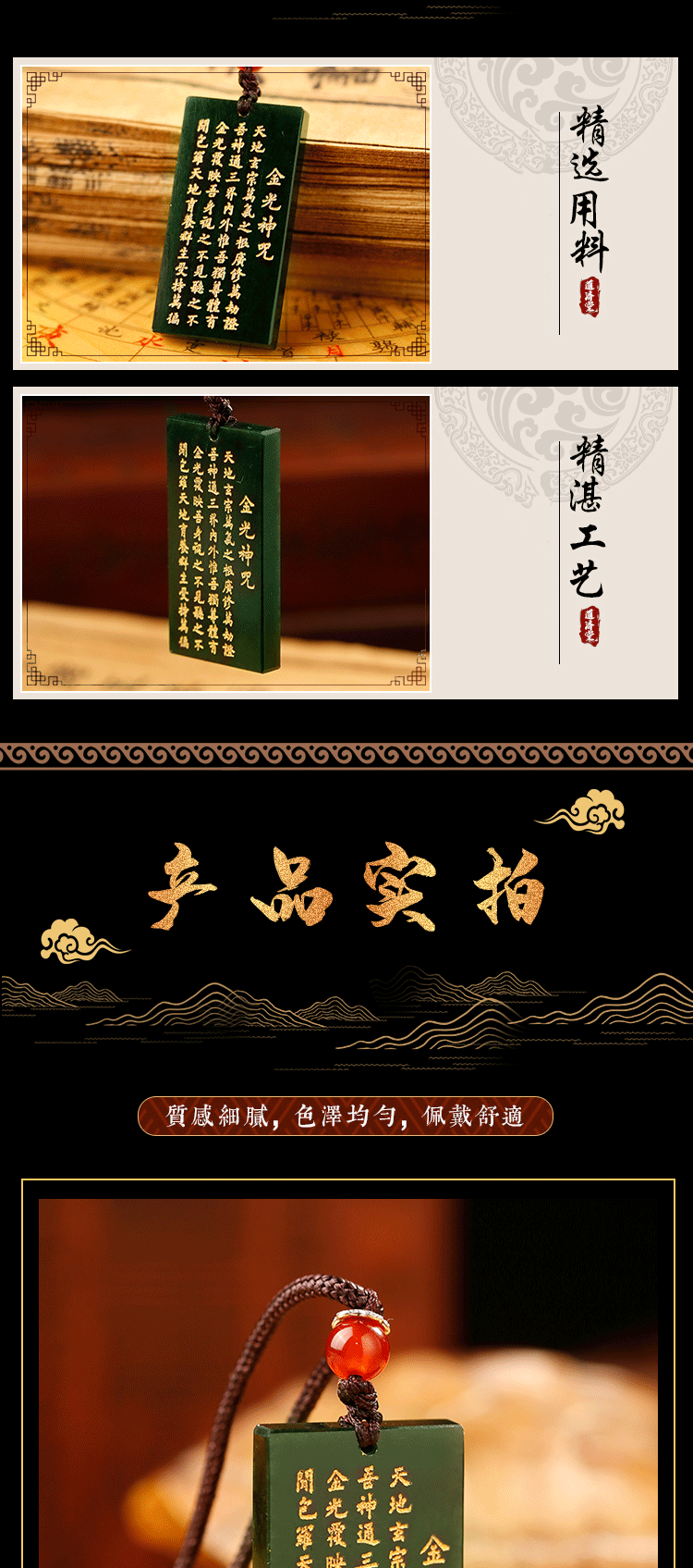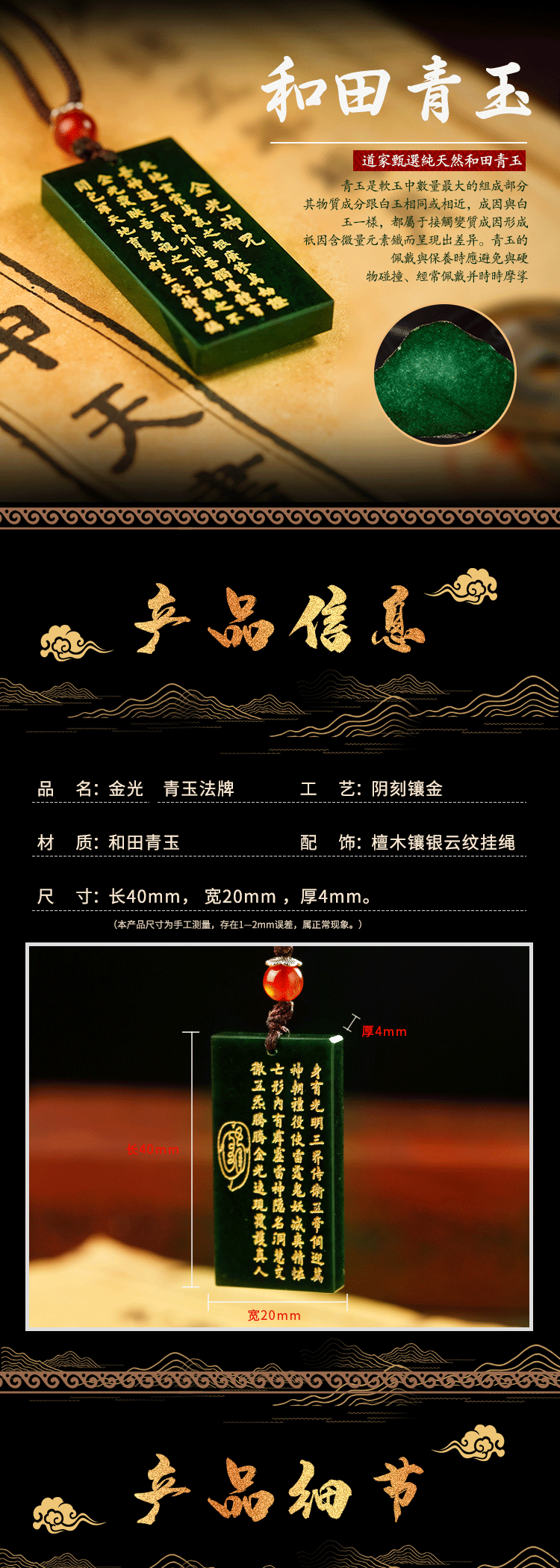金光青玉法牌,天然保真玉石