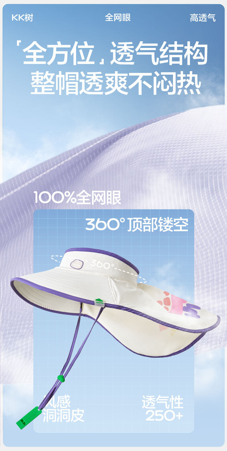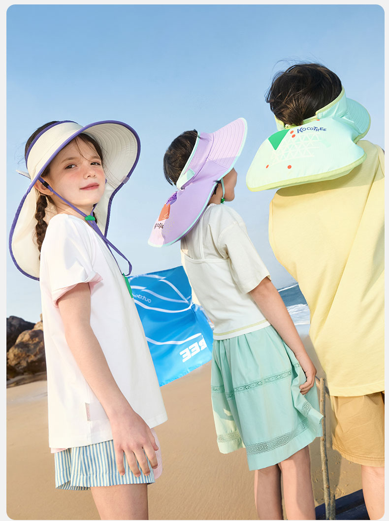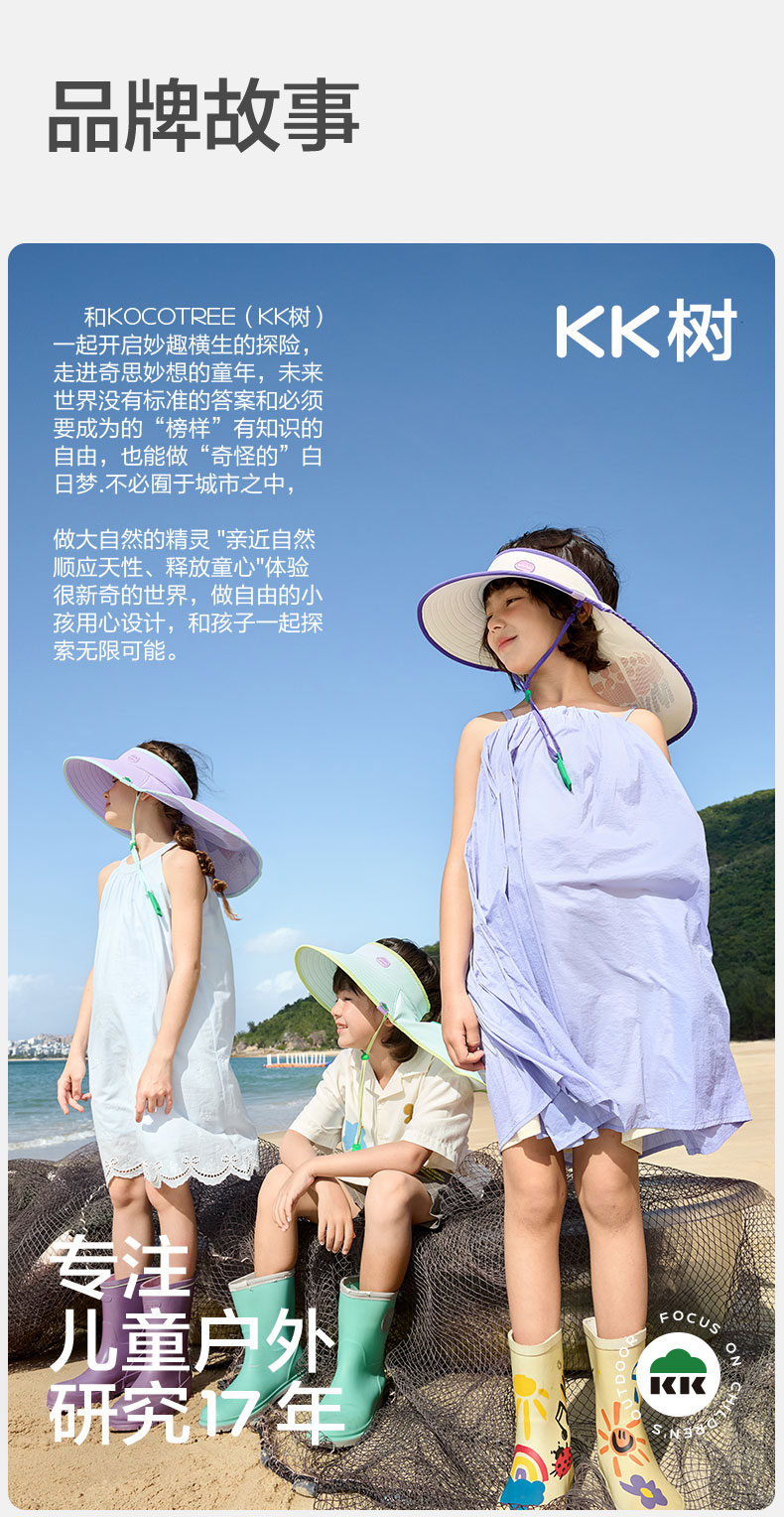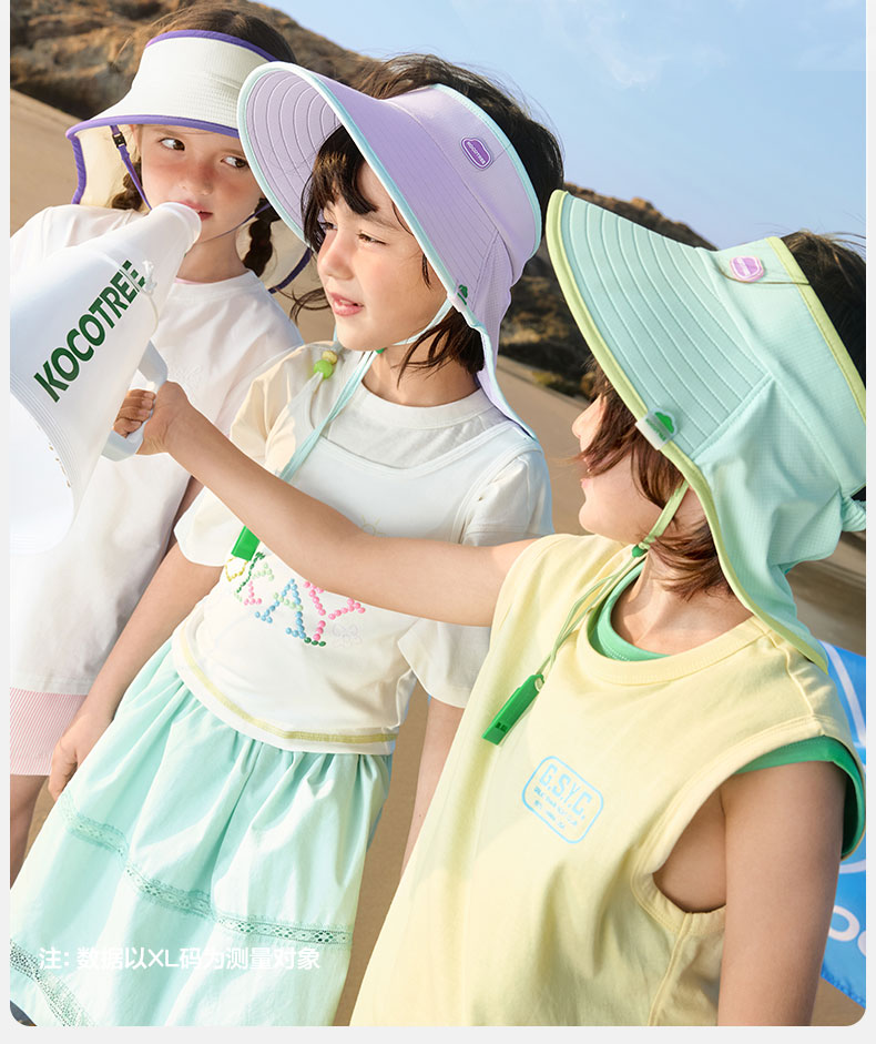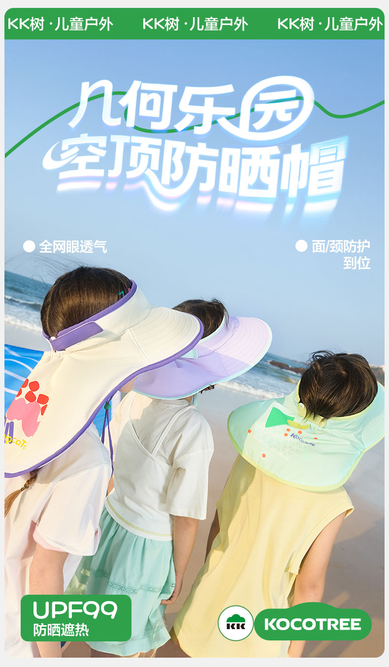 KK树原纱儿童防晒帽男童女孩遮阳帽夏季防紫外线太阳帽空顶大帽檐几何乐园空顶防晒帽