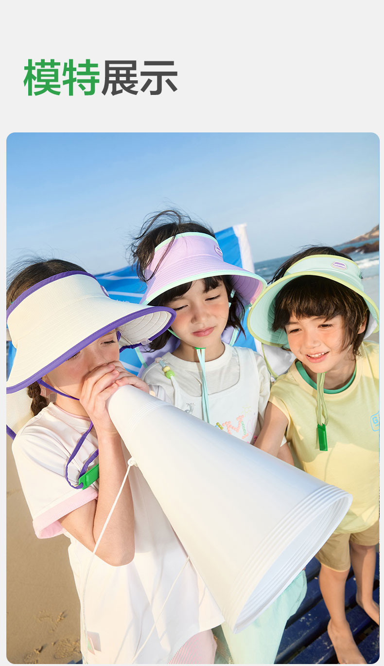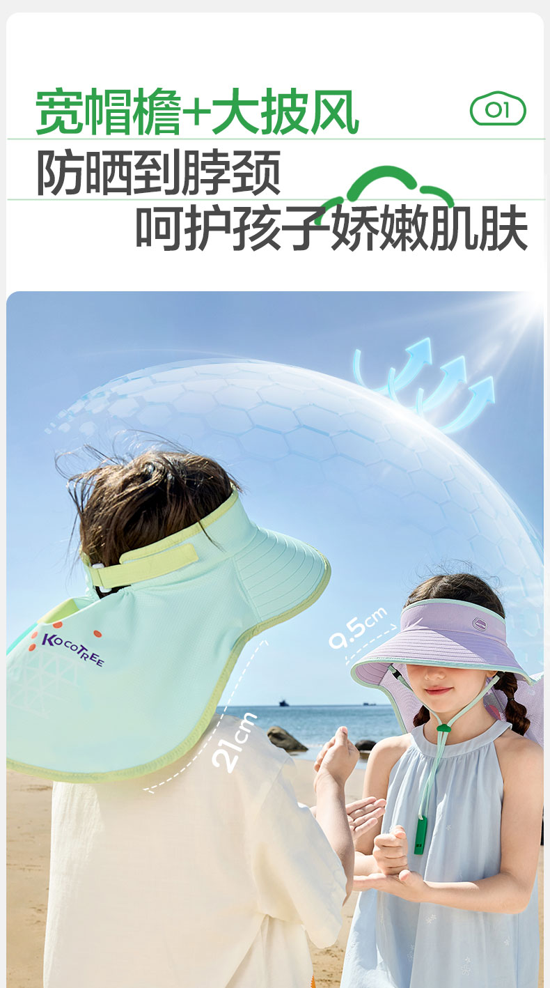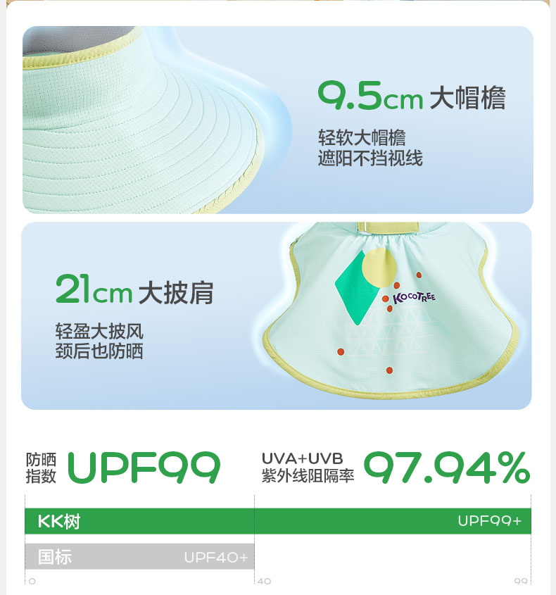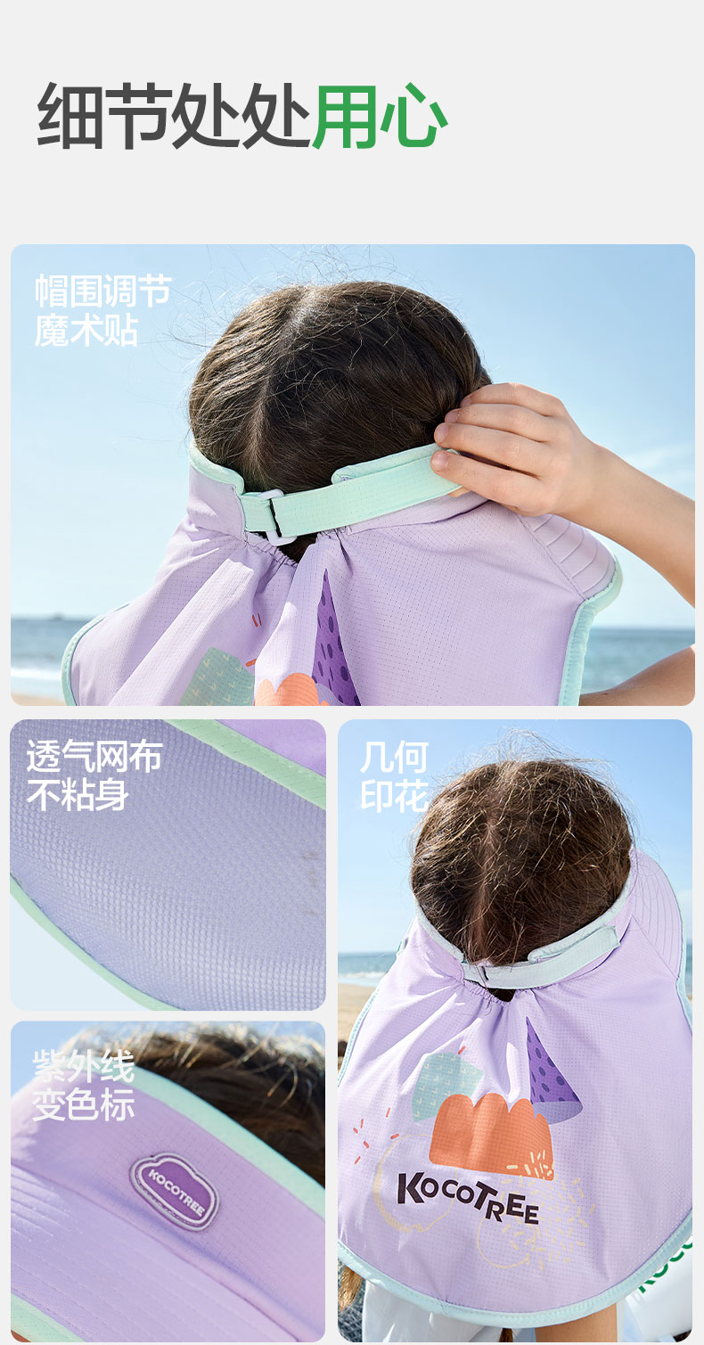 KK树原纱儿童防晒帽男童女孩遮阳帽夏季防紫外线太阳帽空顶大帽檐几何乐园空顶防晒帽