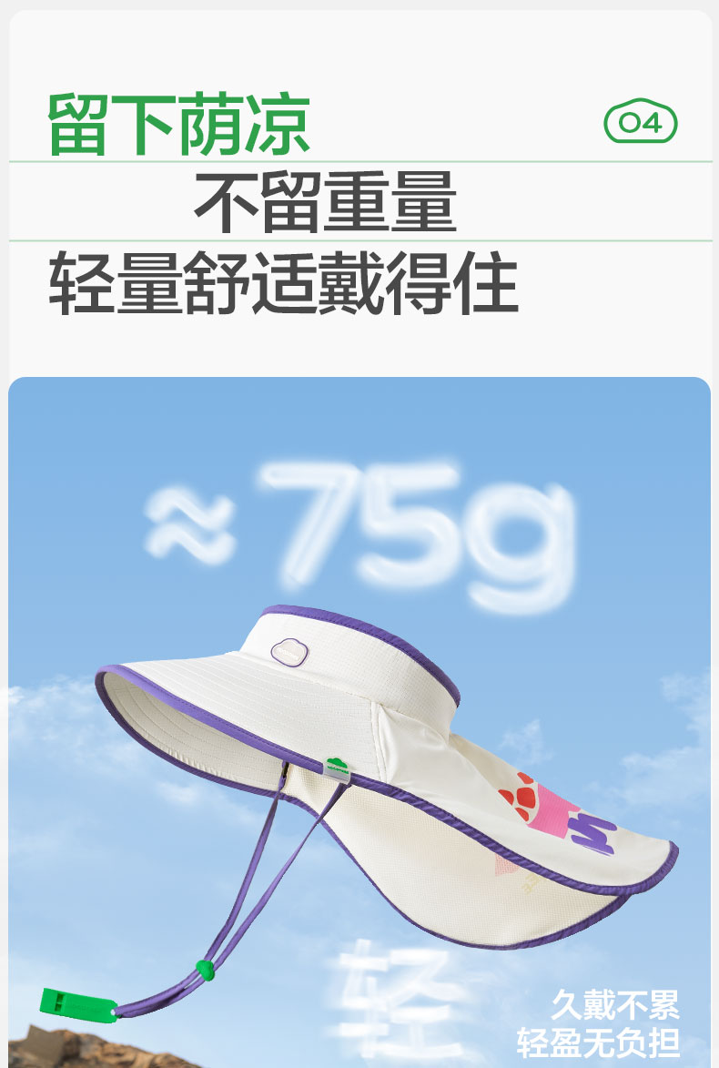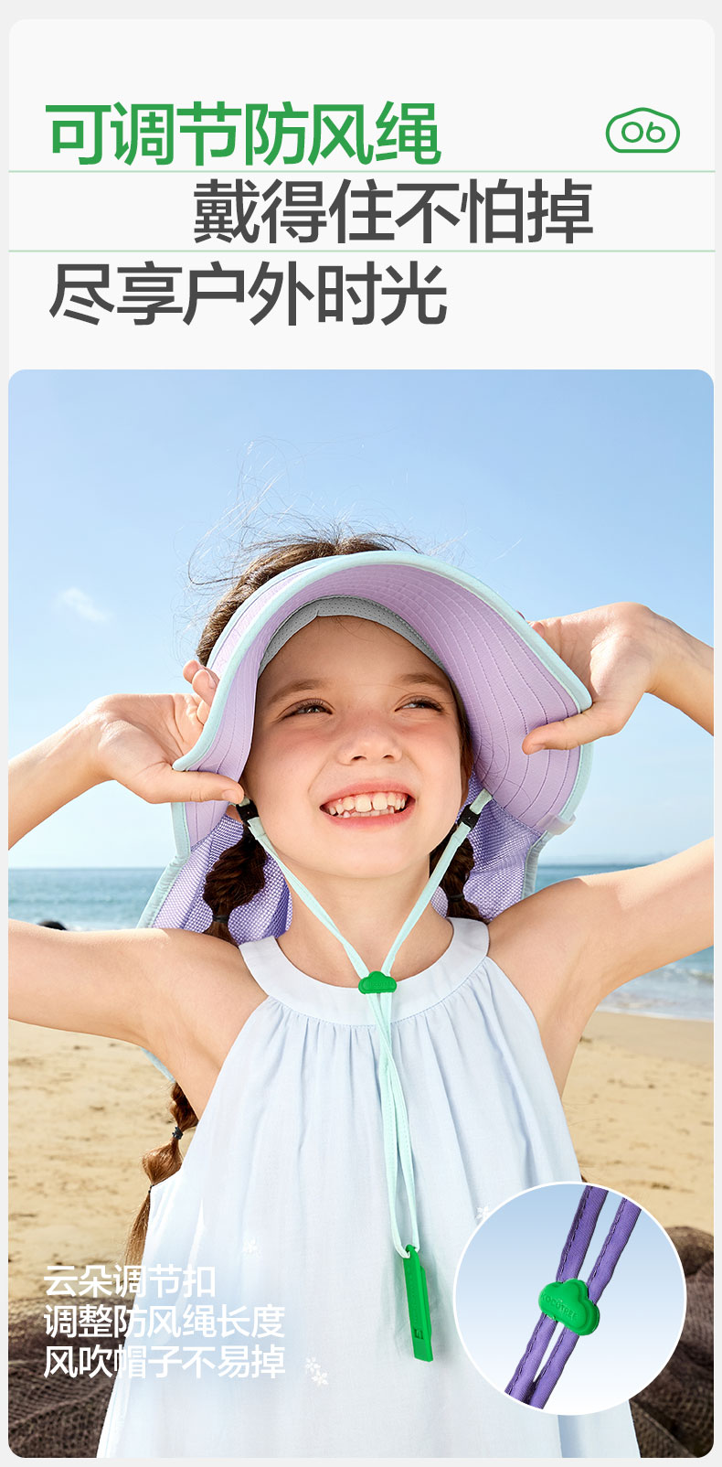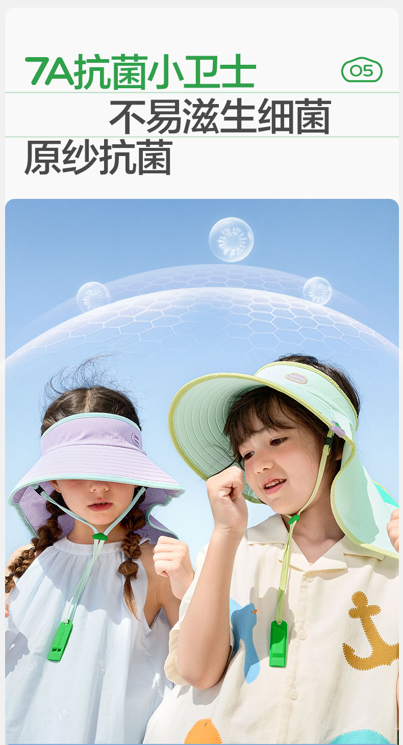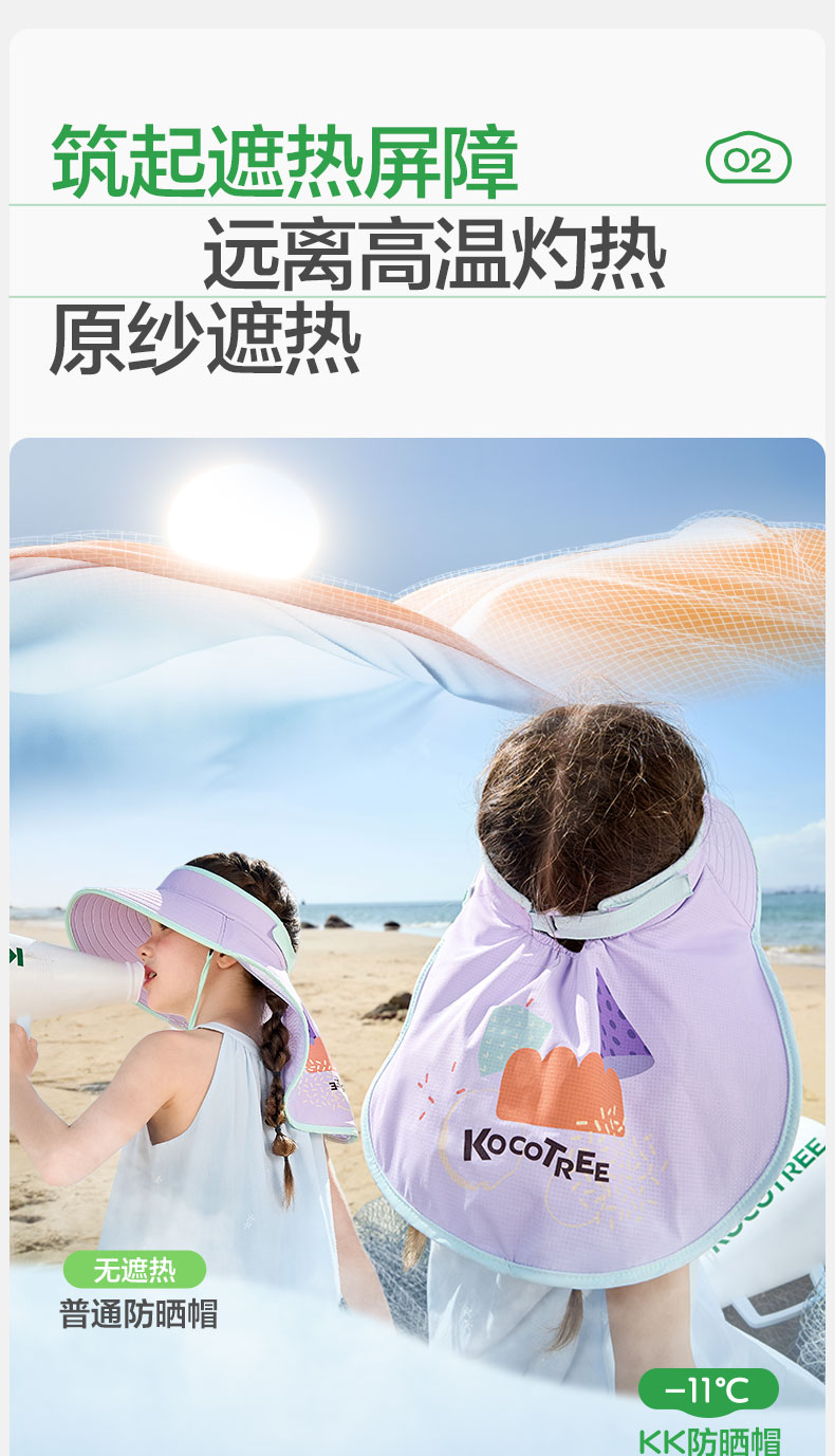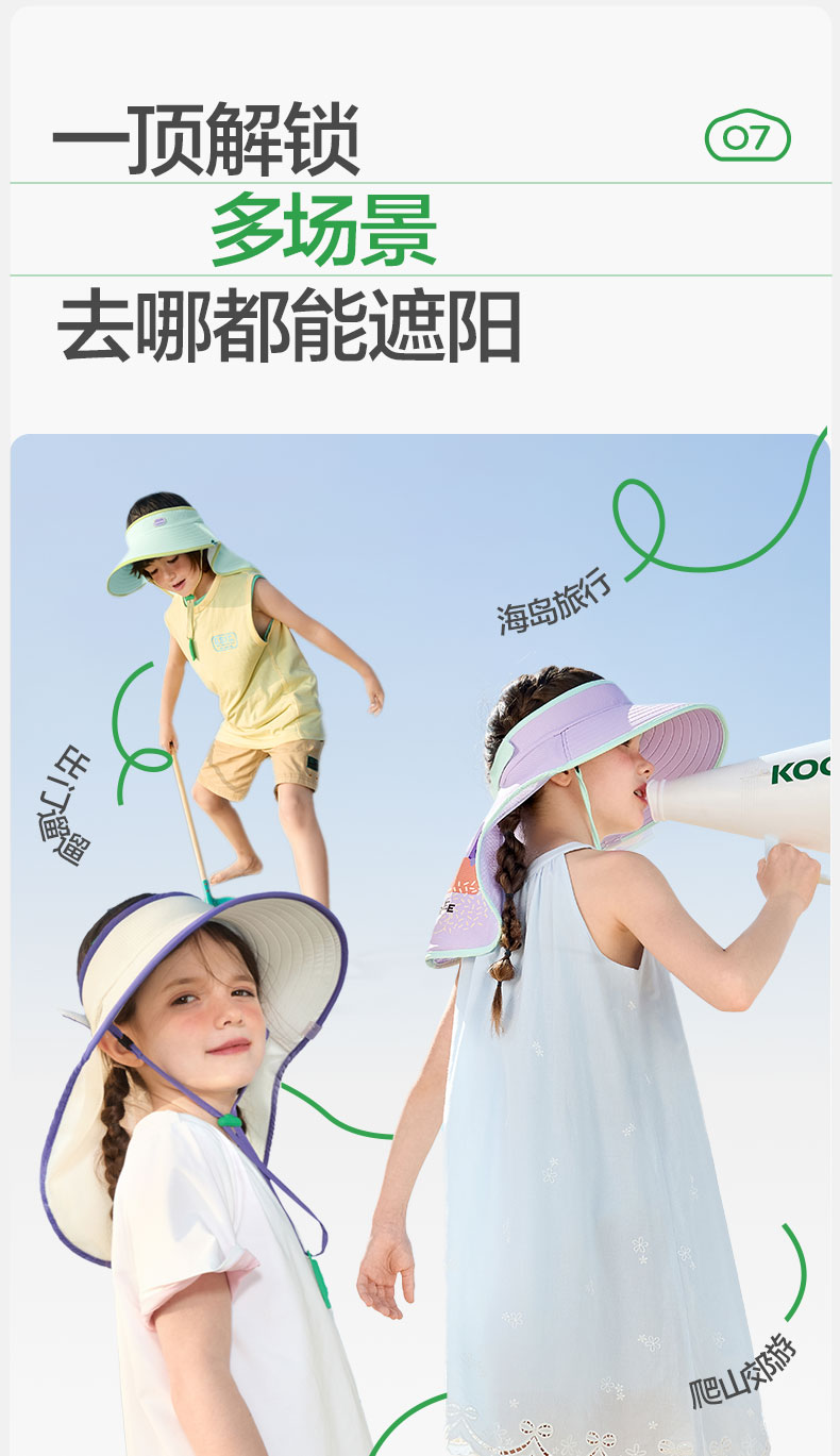 KK树原纱儿童防晒帽男童女孩遮阳帽夏季防紫外线太阳帽空顶大帽檐几何乐园空顶防晒帽