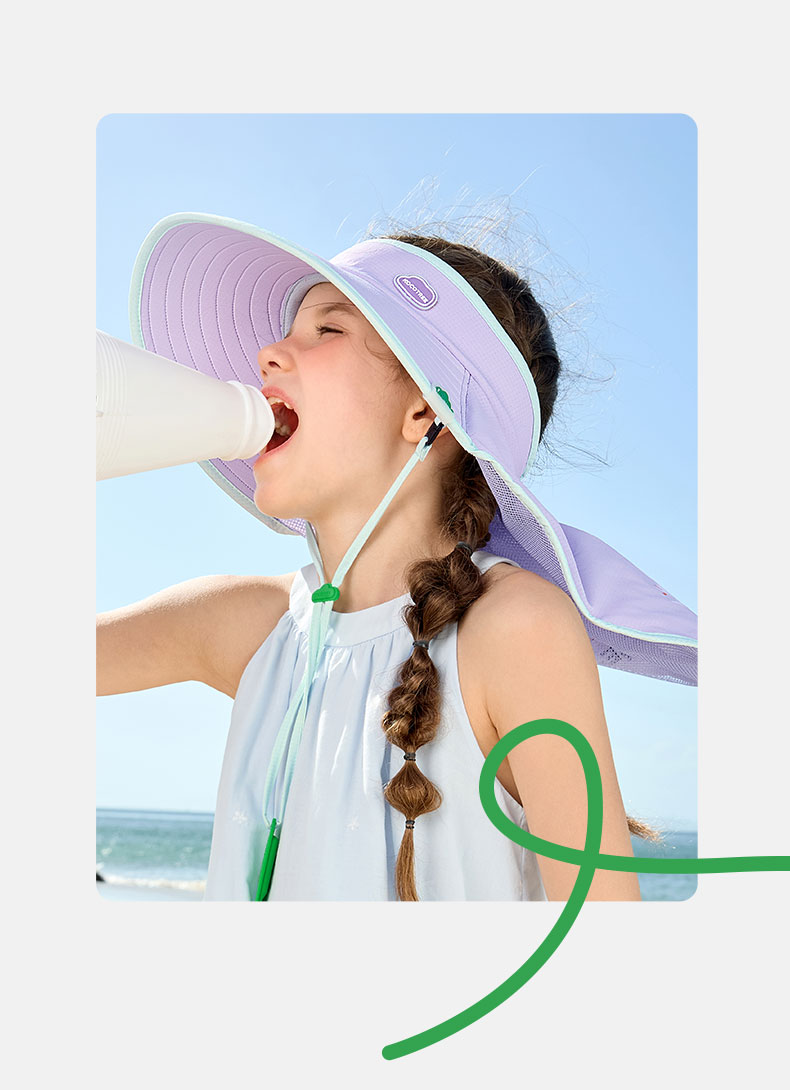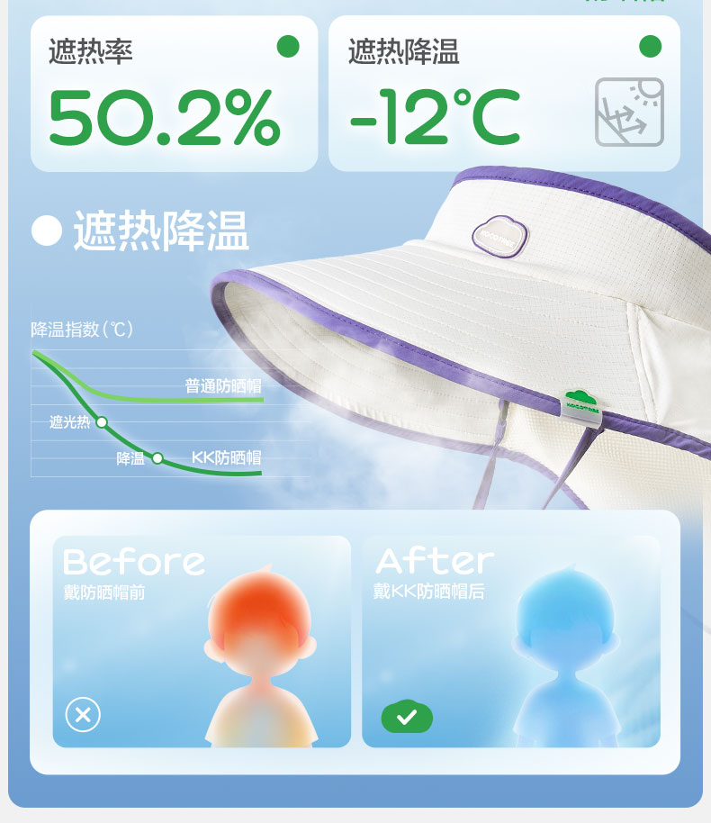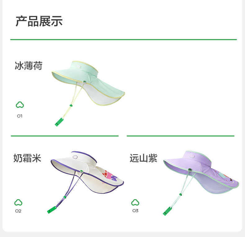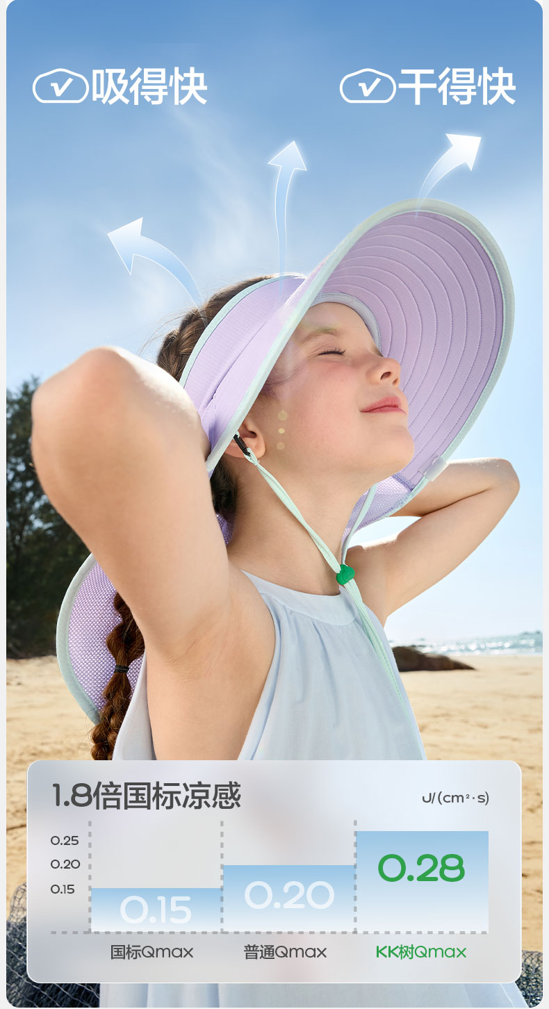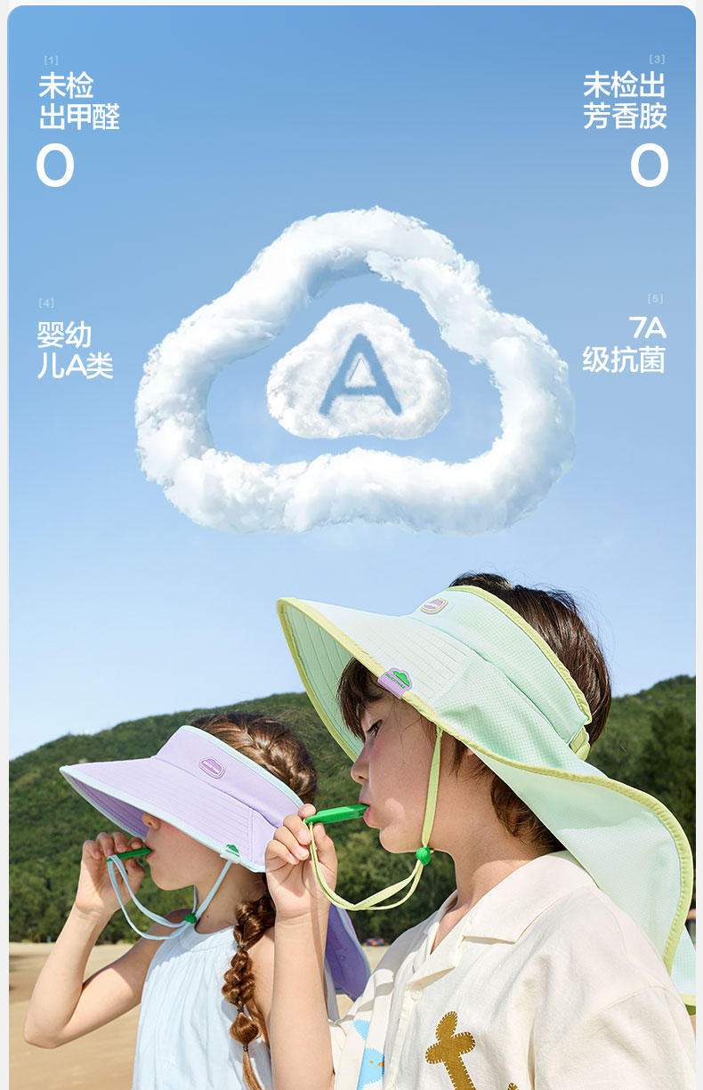 KK树原纱儿童防晒帽男童女孩遮阳帽夏季防紫外线太阳帽空顶大帽檐几何乐园空顶防晒帽