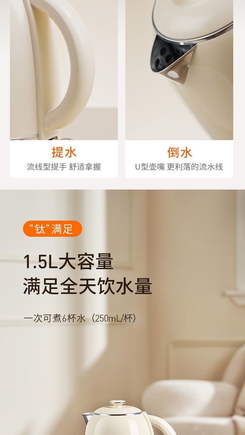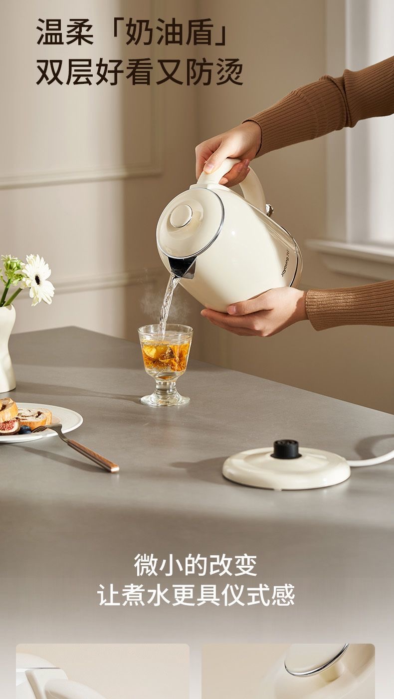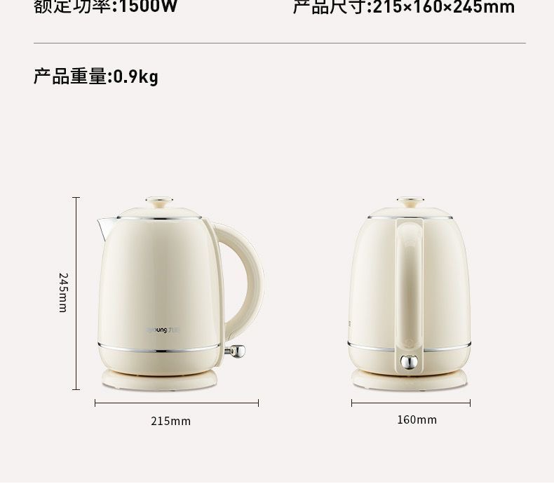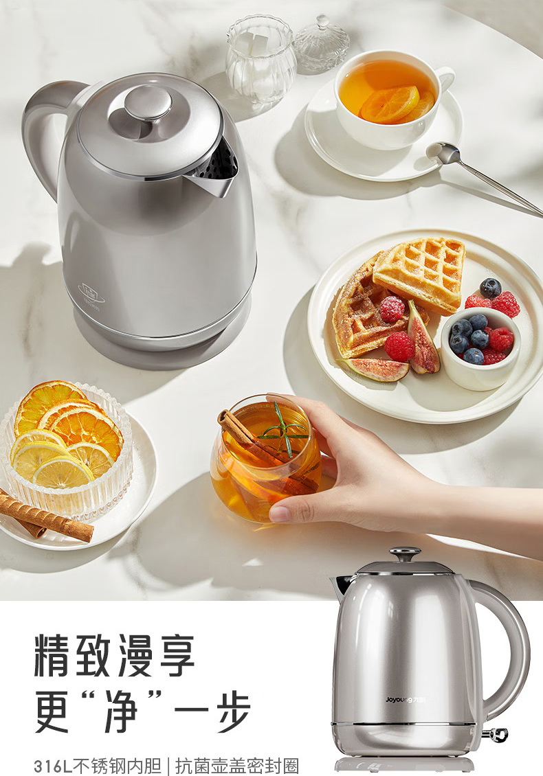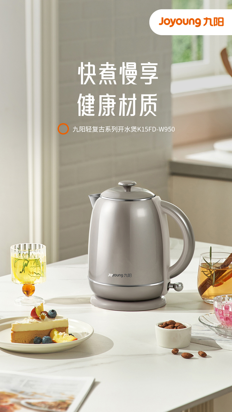 Joyoung/九阳轻复古W950开水煲316L内胆1.5L家用电热水壶烧水壶双层电水壶