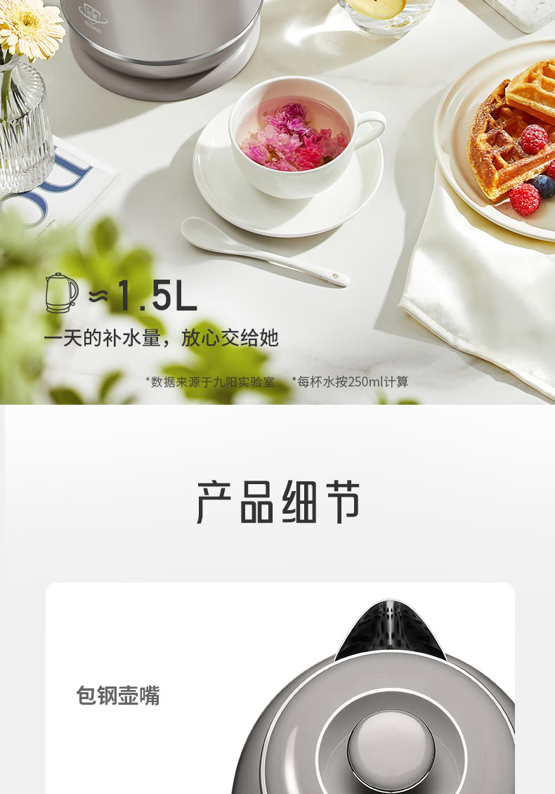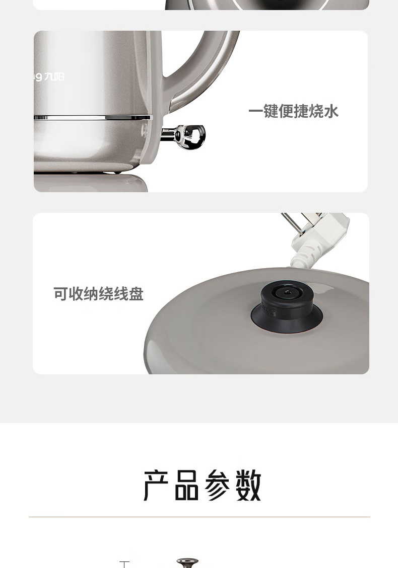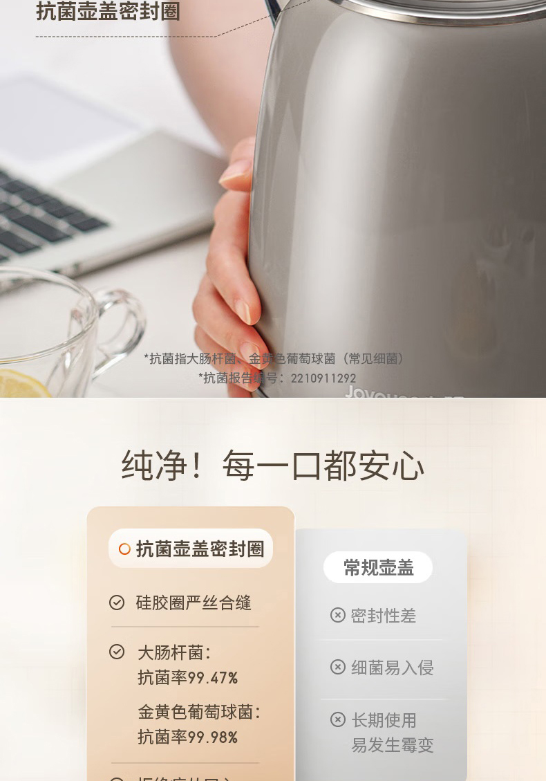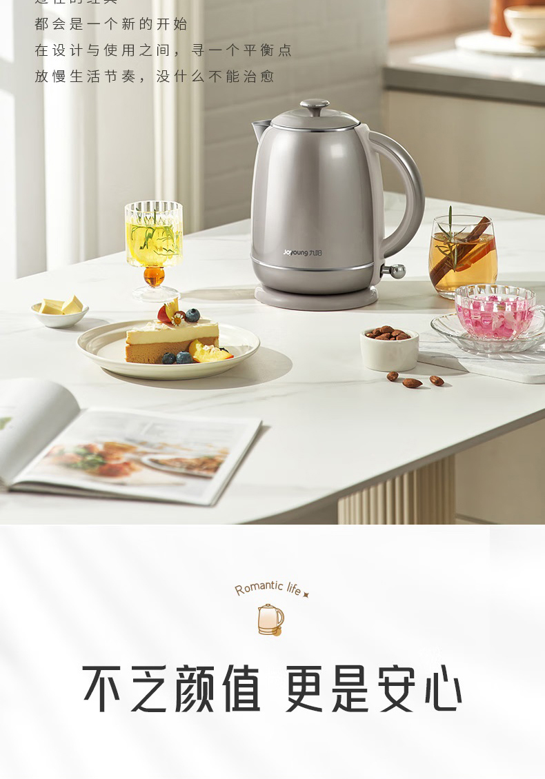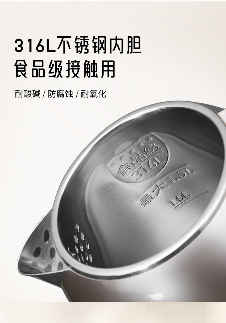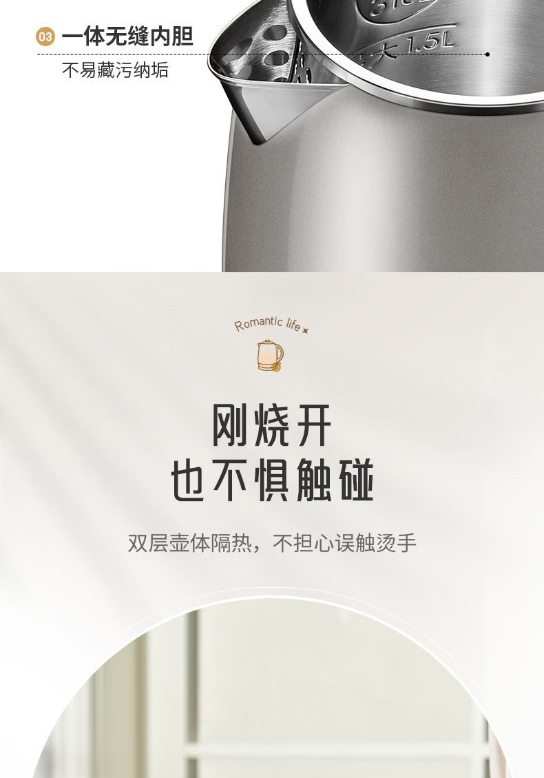 Joyoung/九阳轻复古W950开水煲316L内胆1.5L家用电热水壶烧水壶双层电水壶