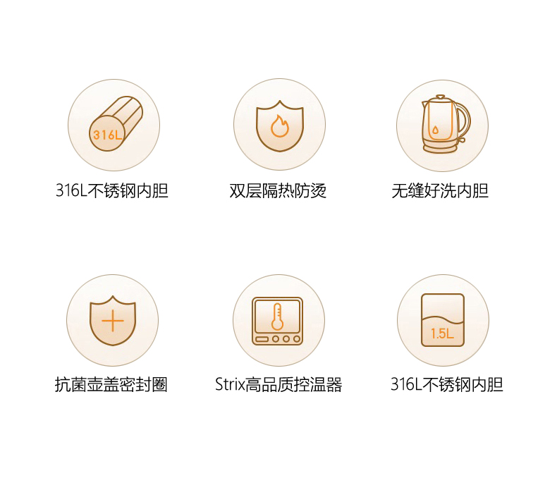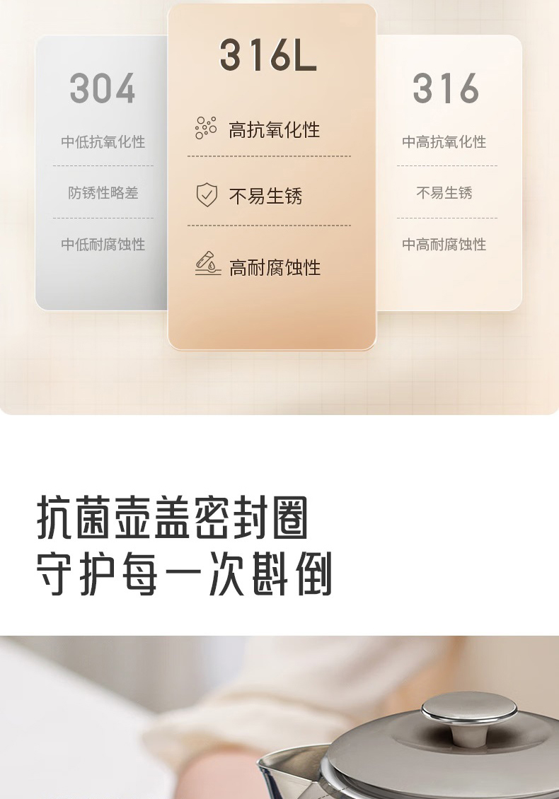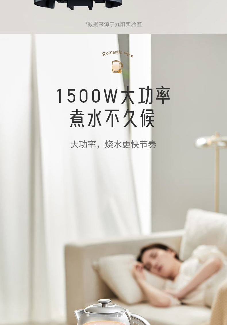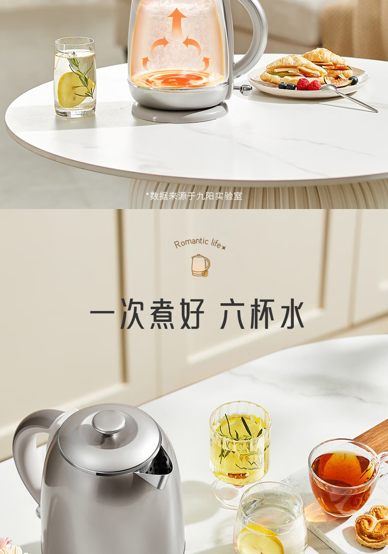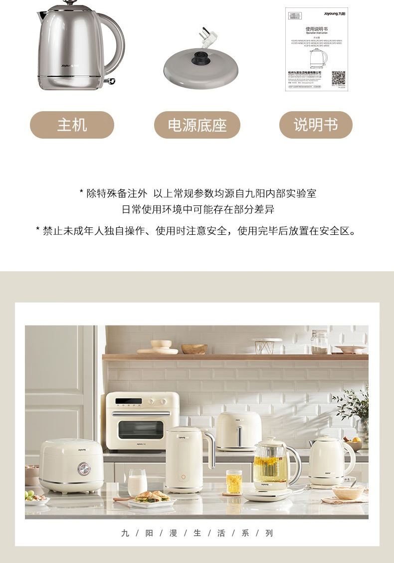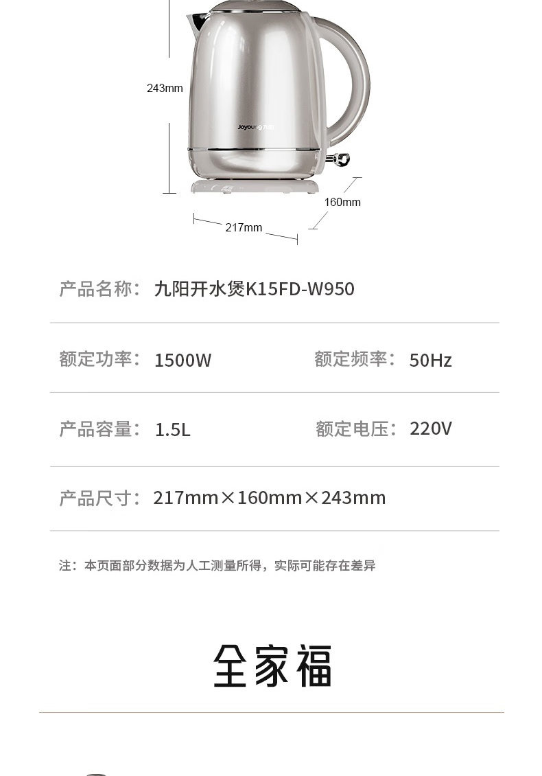 Joyoung/九阳轻复古W950开水煲316L内胆1.5L家用电热水壶烧水壶双层电水壶