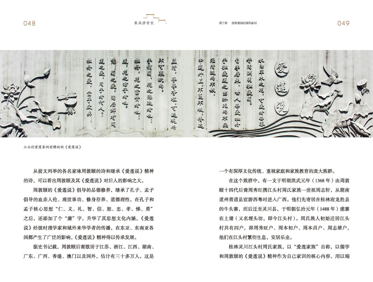 编写团队多次深入桂林灵川县江头村,实地探访爱莲家祠、进士街、清官故居等建筑遗迹,沉浸式感受周氏家族传承的家风家训。从整体框架到内容写作,双方合力打磨,只为呈现最鲜活的文化读本。