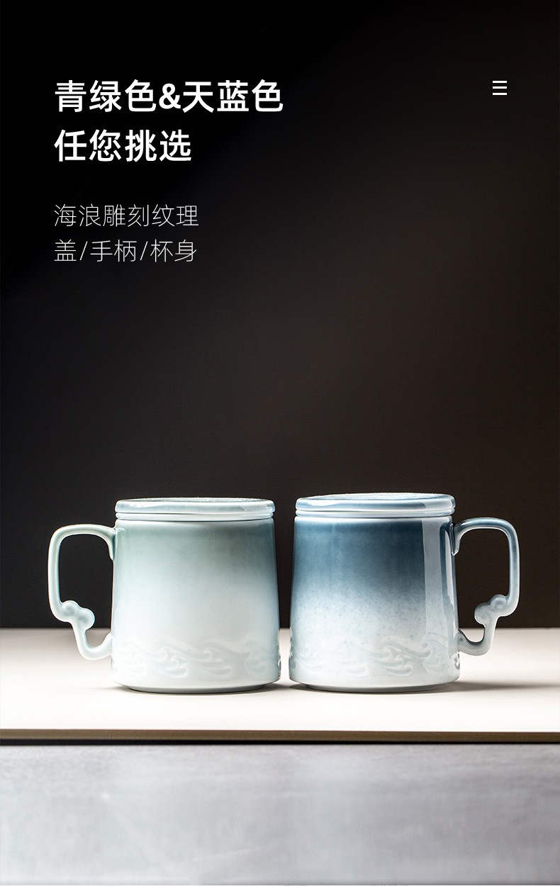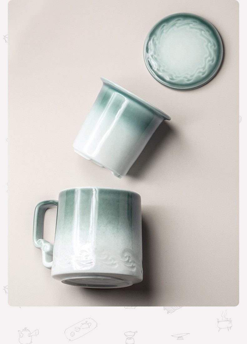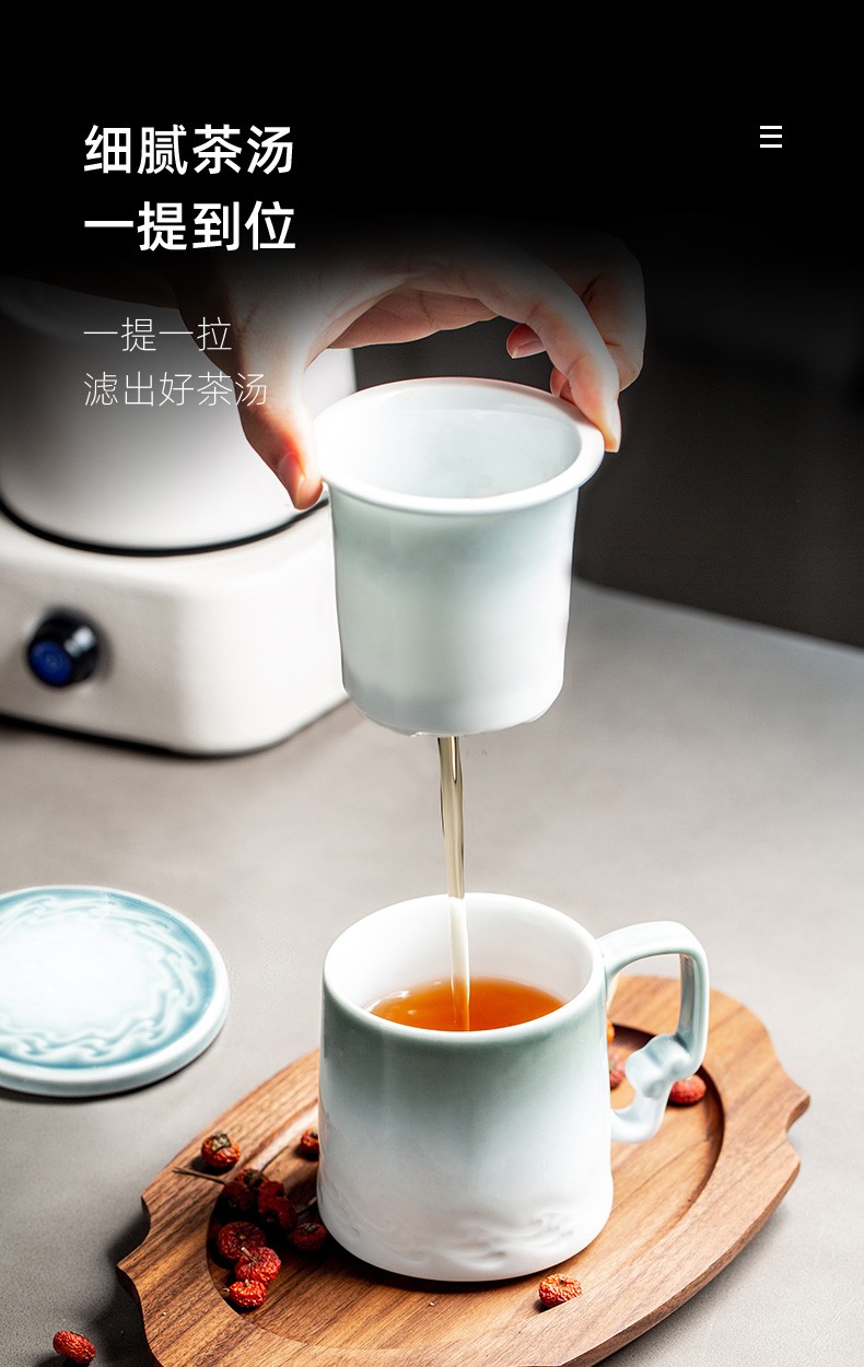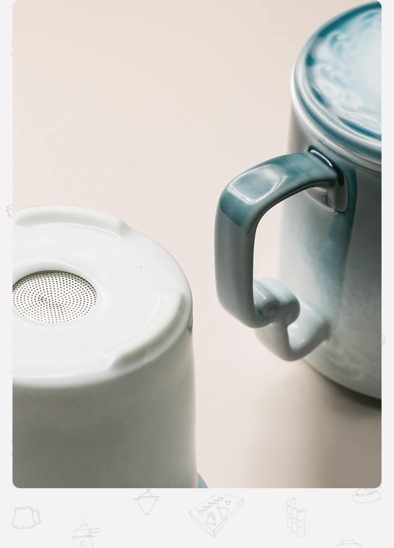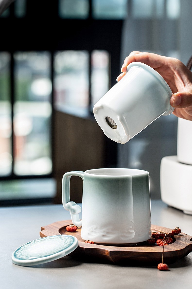陶瓷茶杯茶水分离马克杯大容量过滤个人杯子办公室泡茶杯 伊-观沧海泡茶杯-青绿色【预售3月30日】