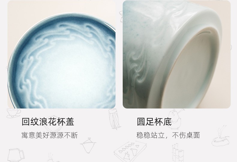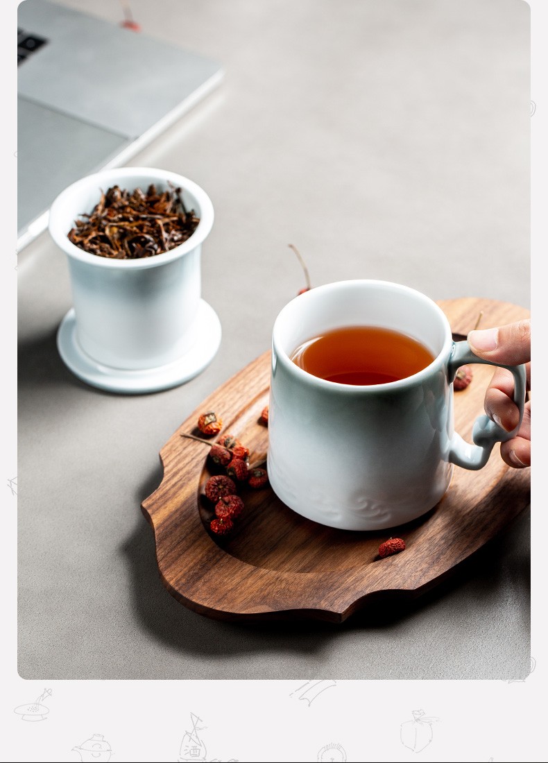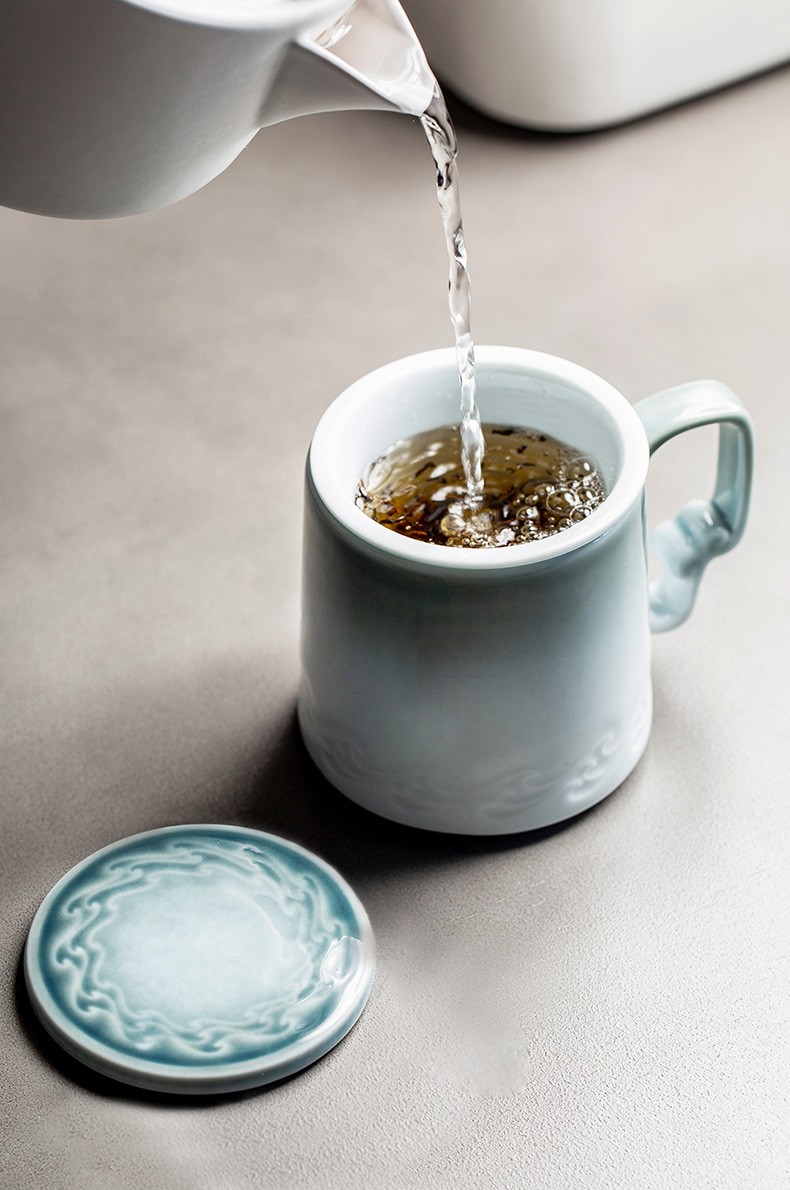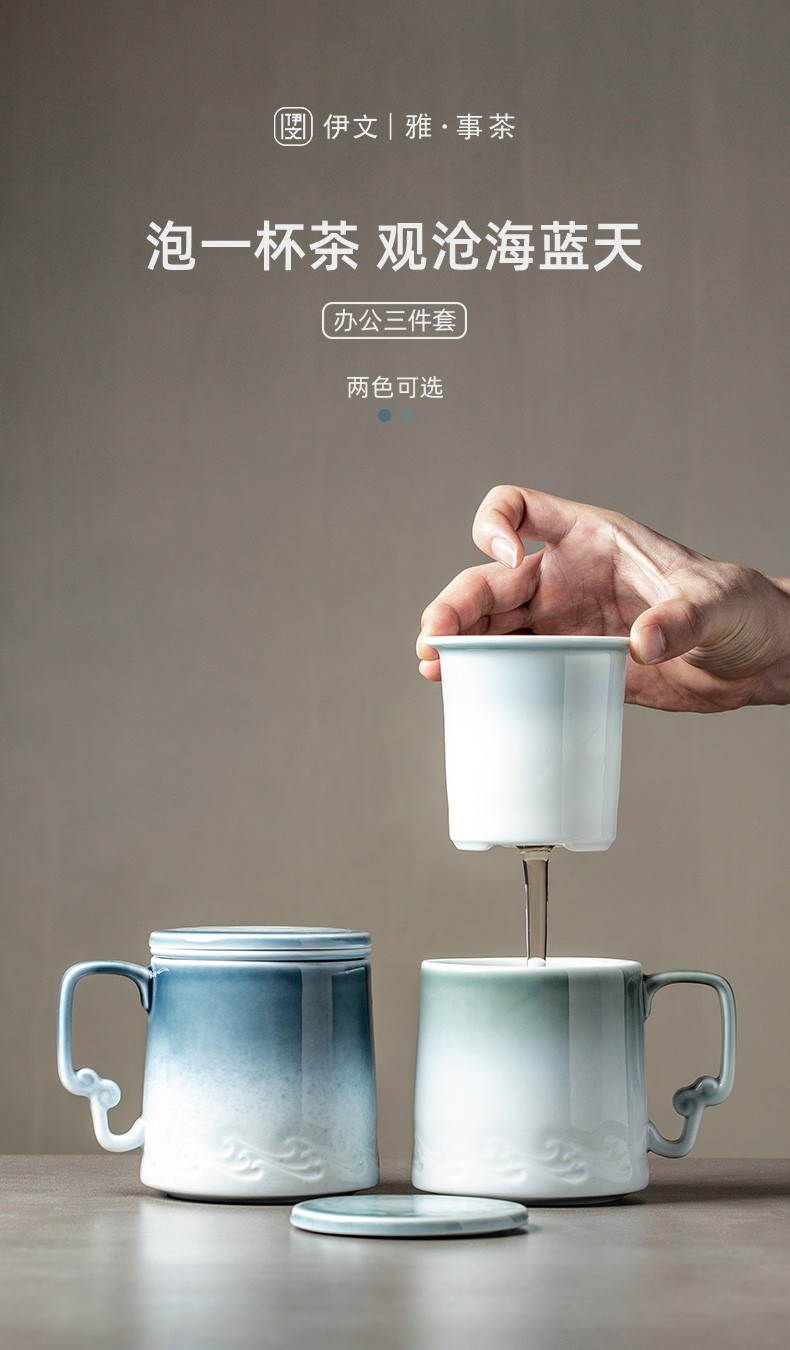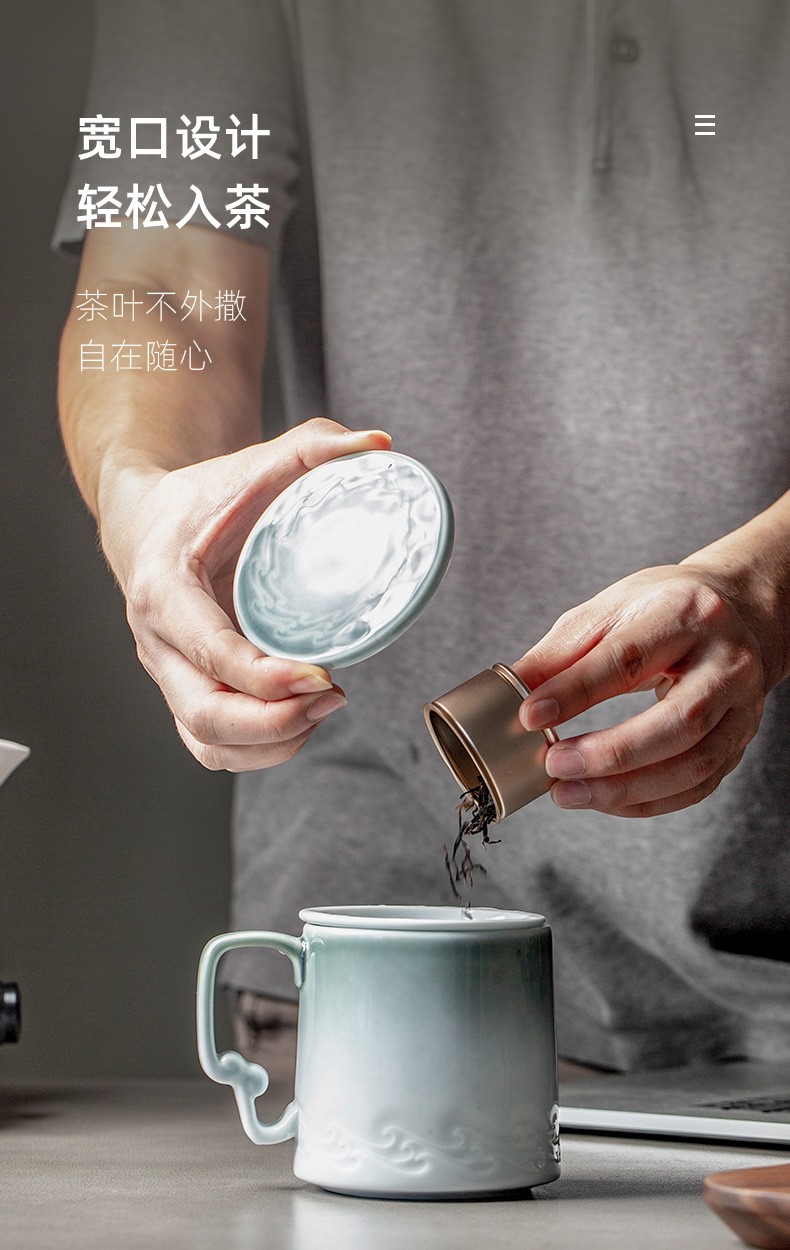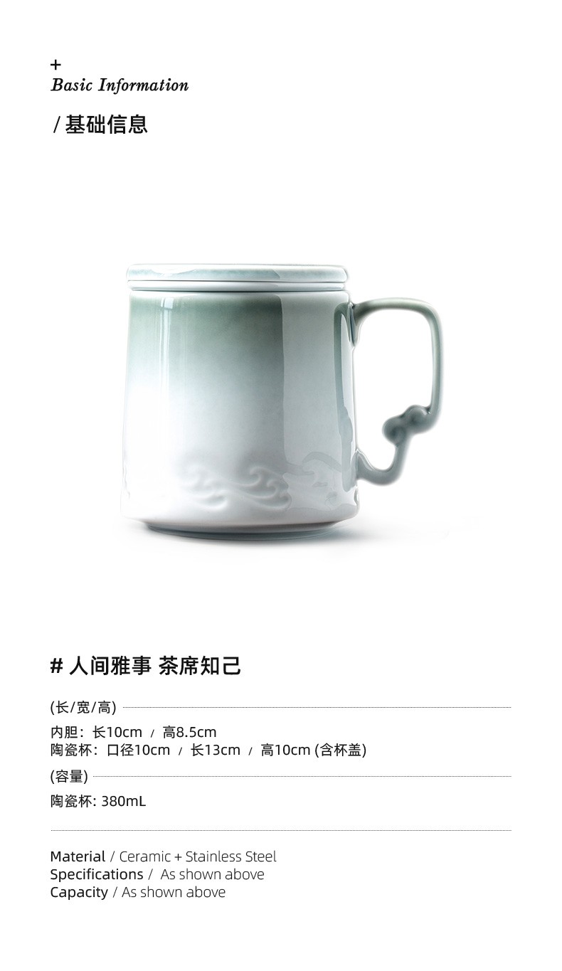 陶瓷茶杯茶水分离马克杯大容量过滤个人杯子办公室泡茶杯 伊-观沧海泡茶杯-青绿色【预售3月30日】