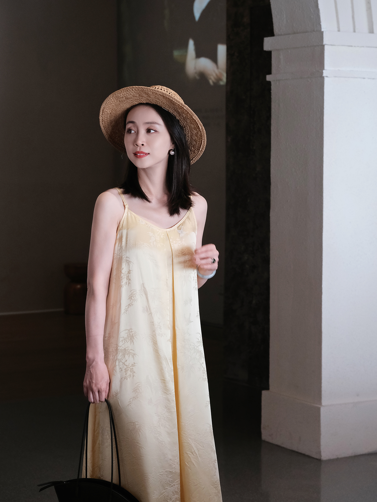 盛唐婧 |提花真丝缎竹鸟纹百搭吊带裙