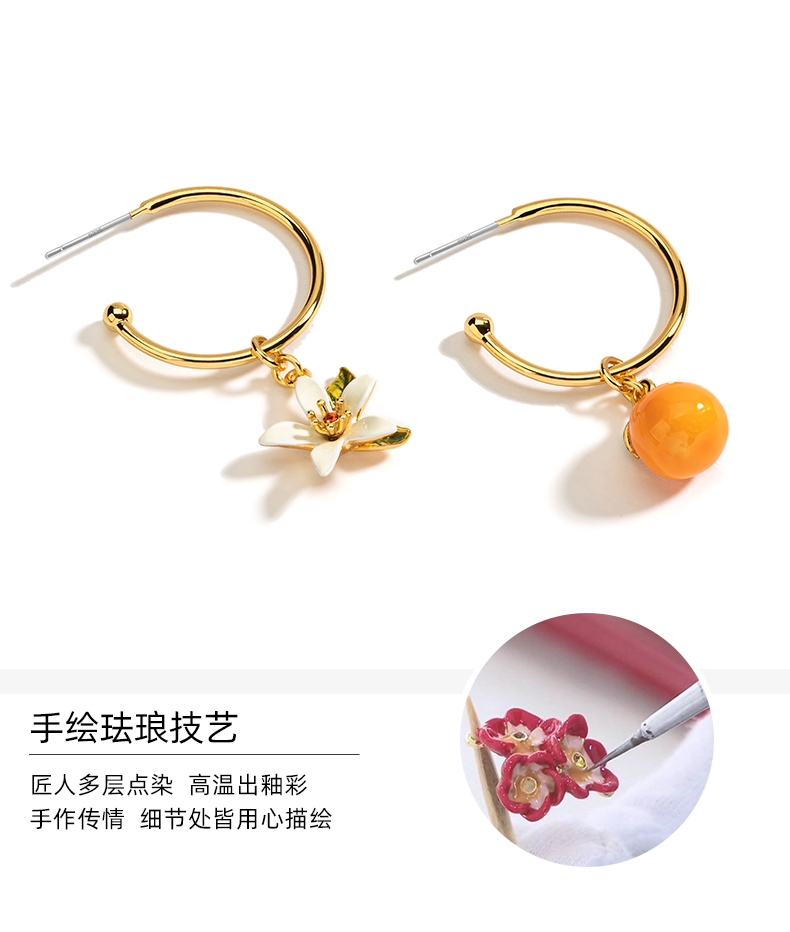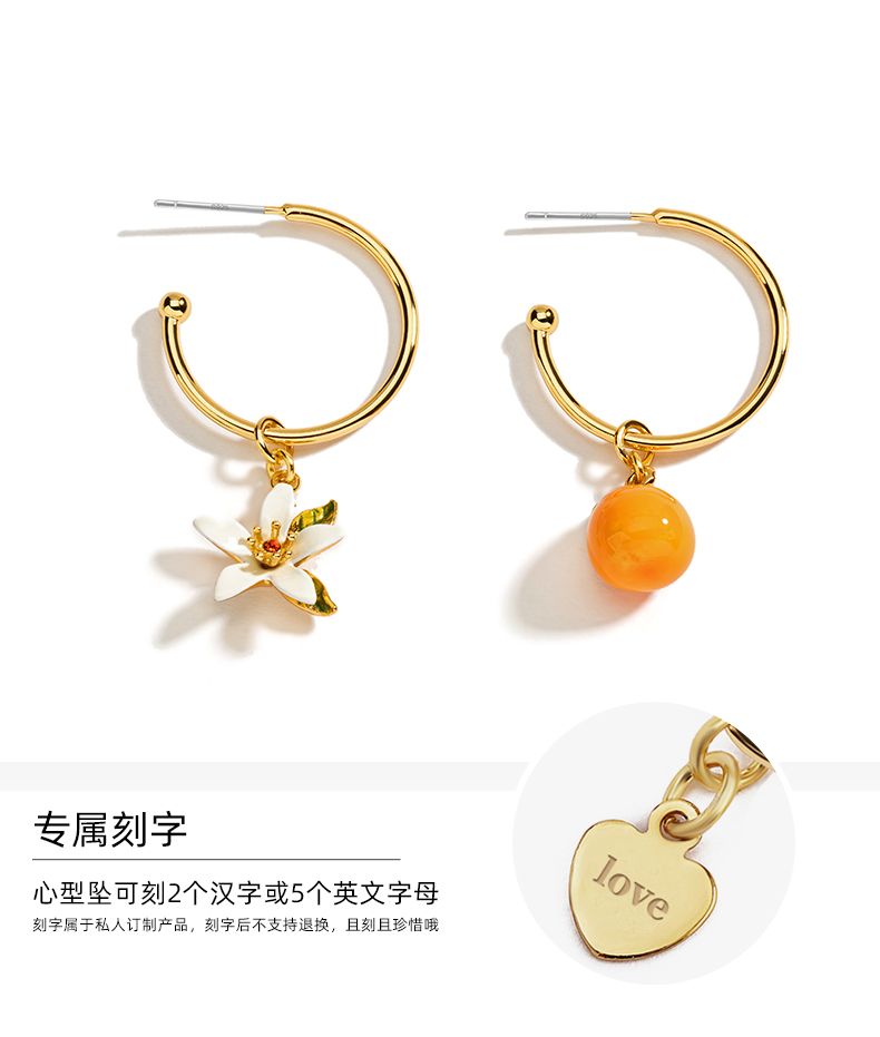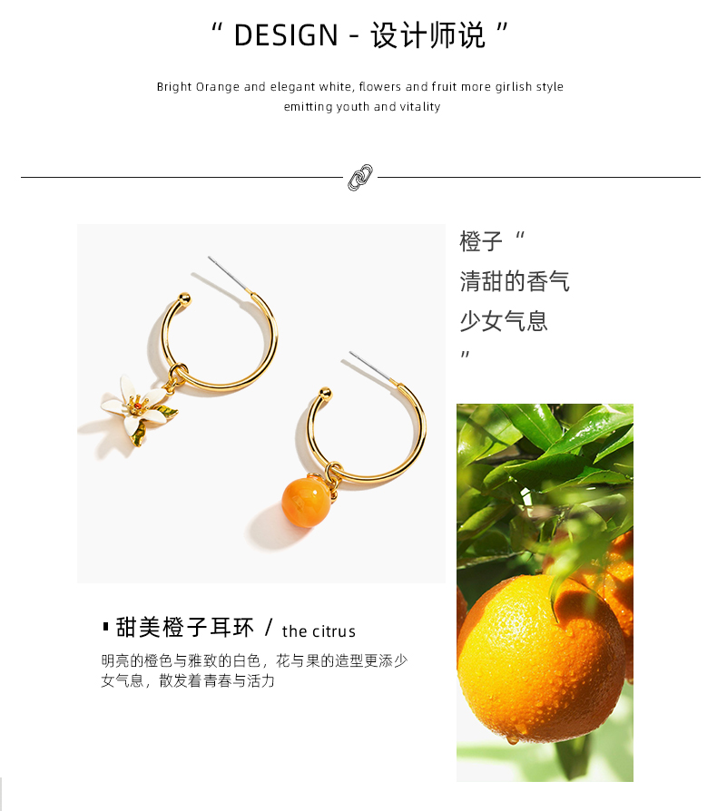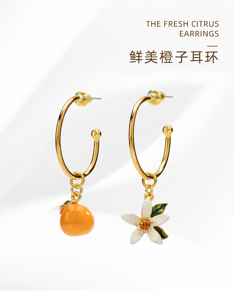 橘子不对称耳环