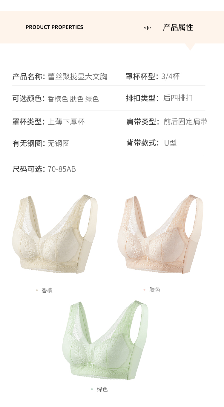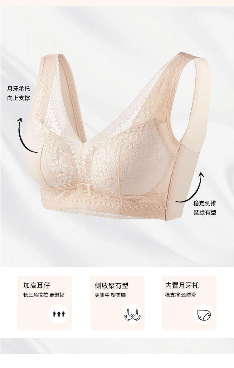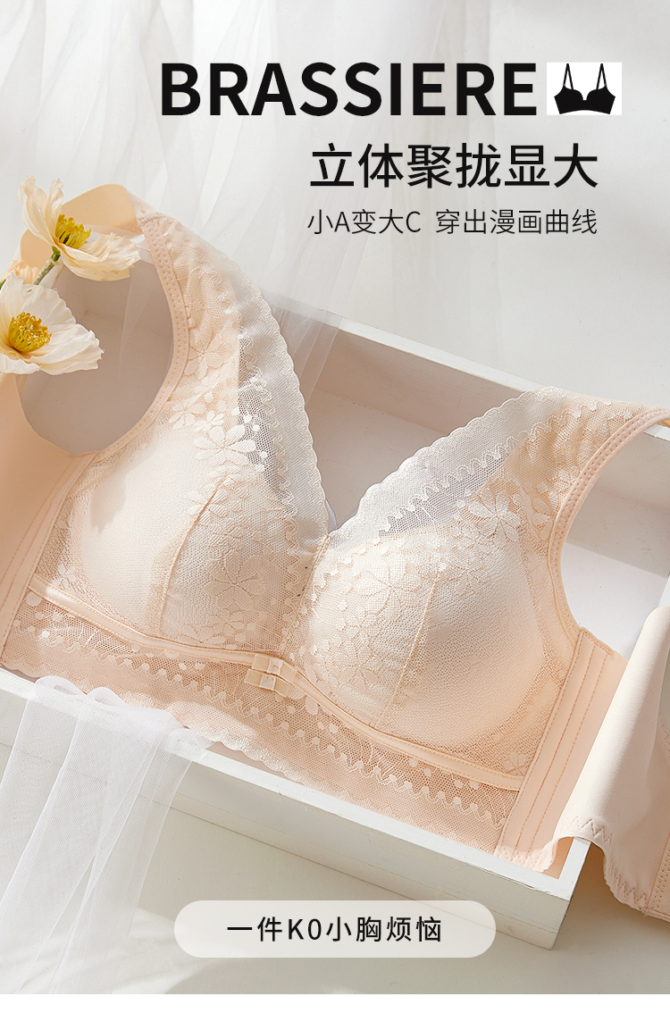 雅黛丽内衣女聚拢小胸防下垂收副乳文胸无钢圈性感美背2024胸罩