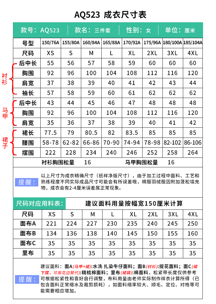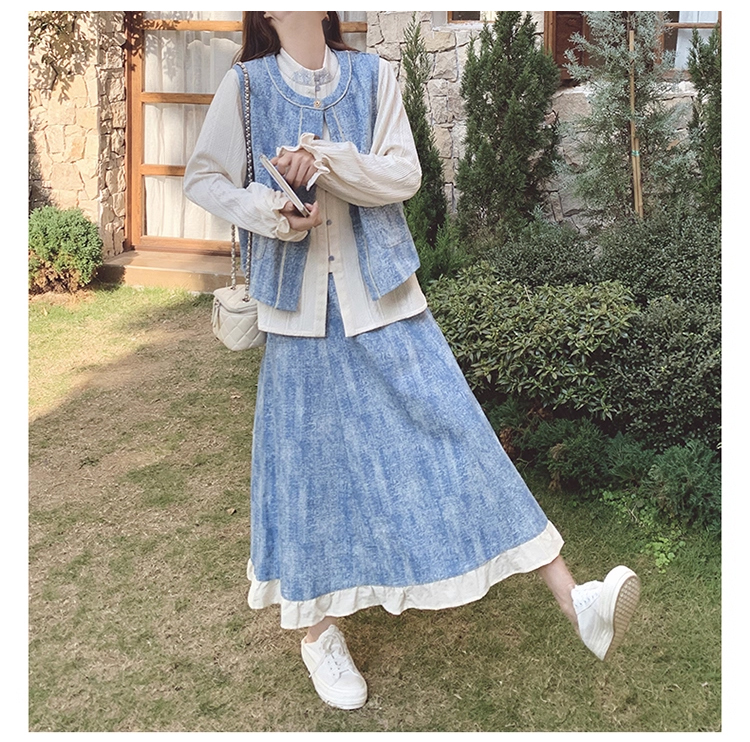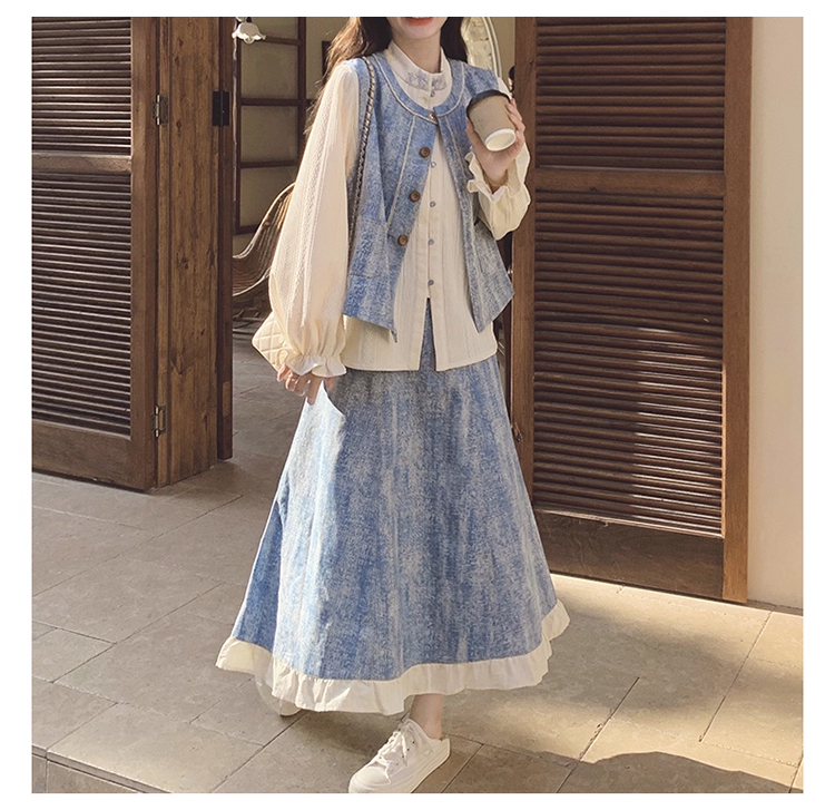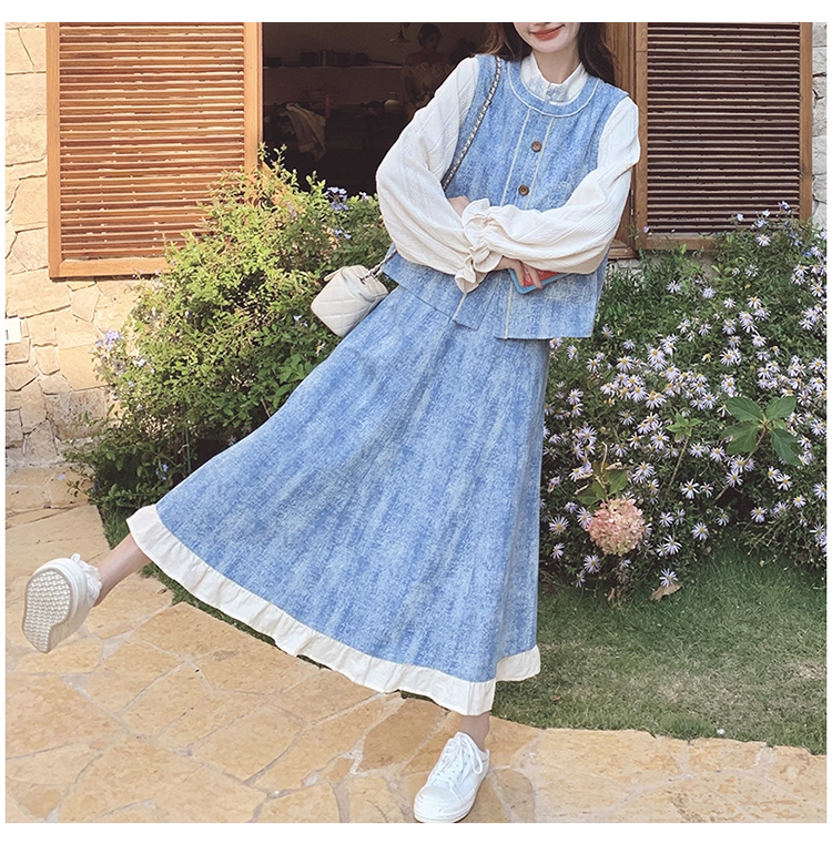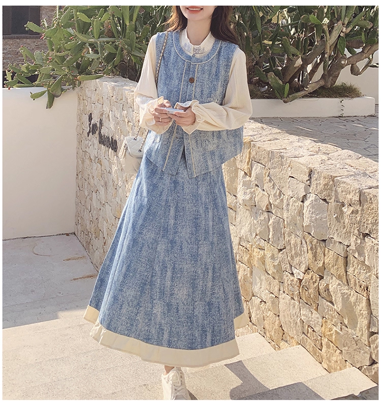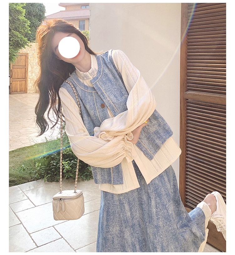 裁缝学苑AQ523新中式牛仔马甲纸样衬衫半身裙女装套装