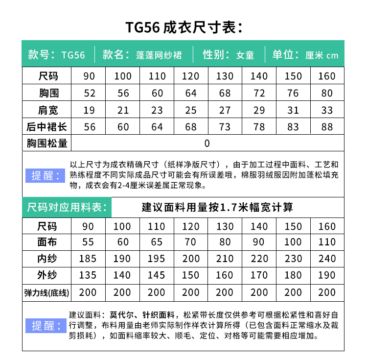裁缝学苑 TG56女童连衣裙蓬蓬网纱裙礼服公主裙子服装纸样裁剪图