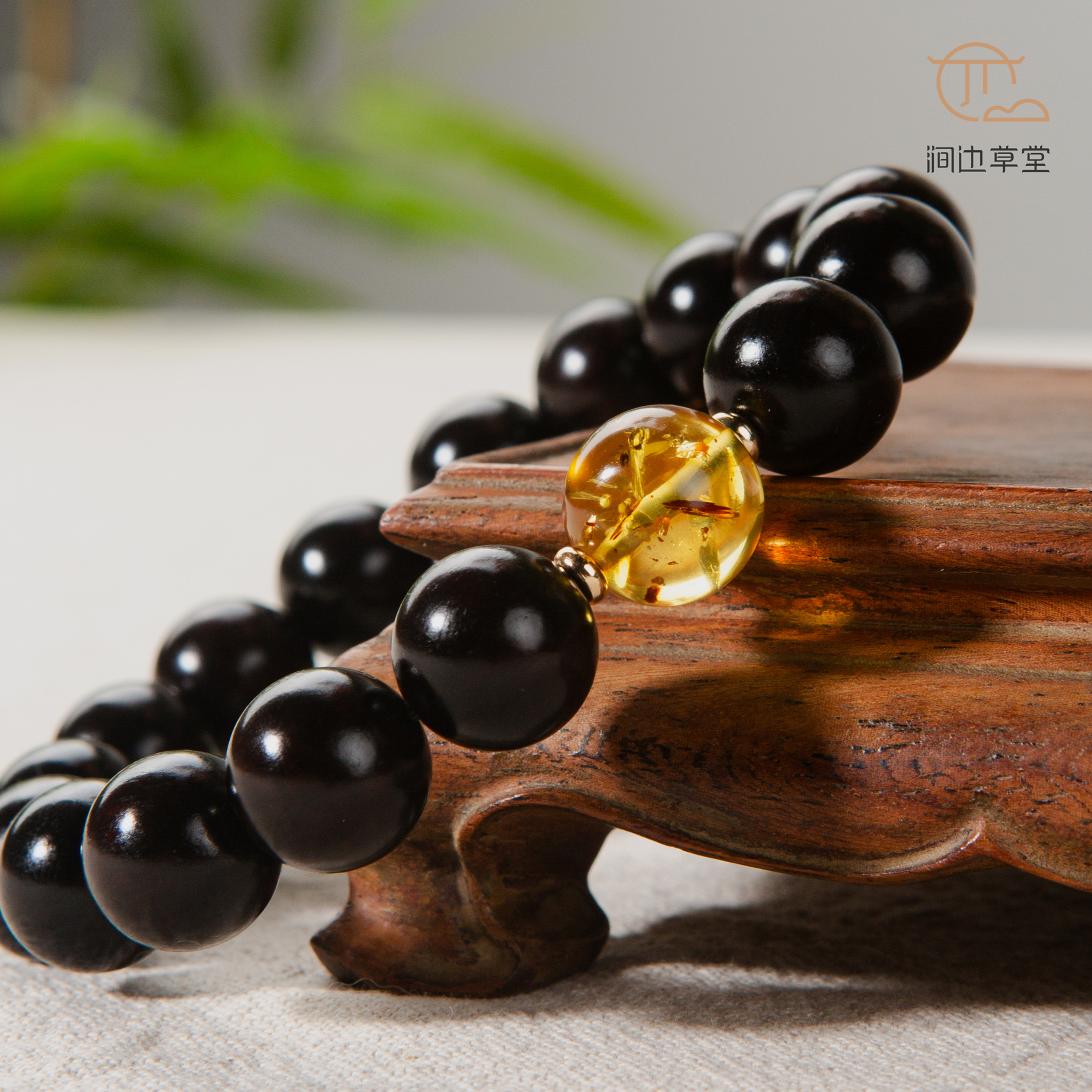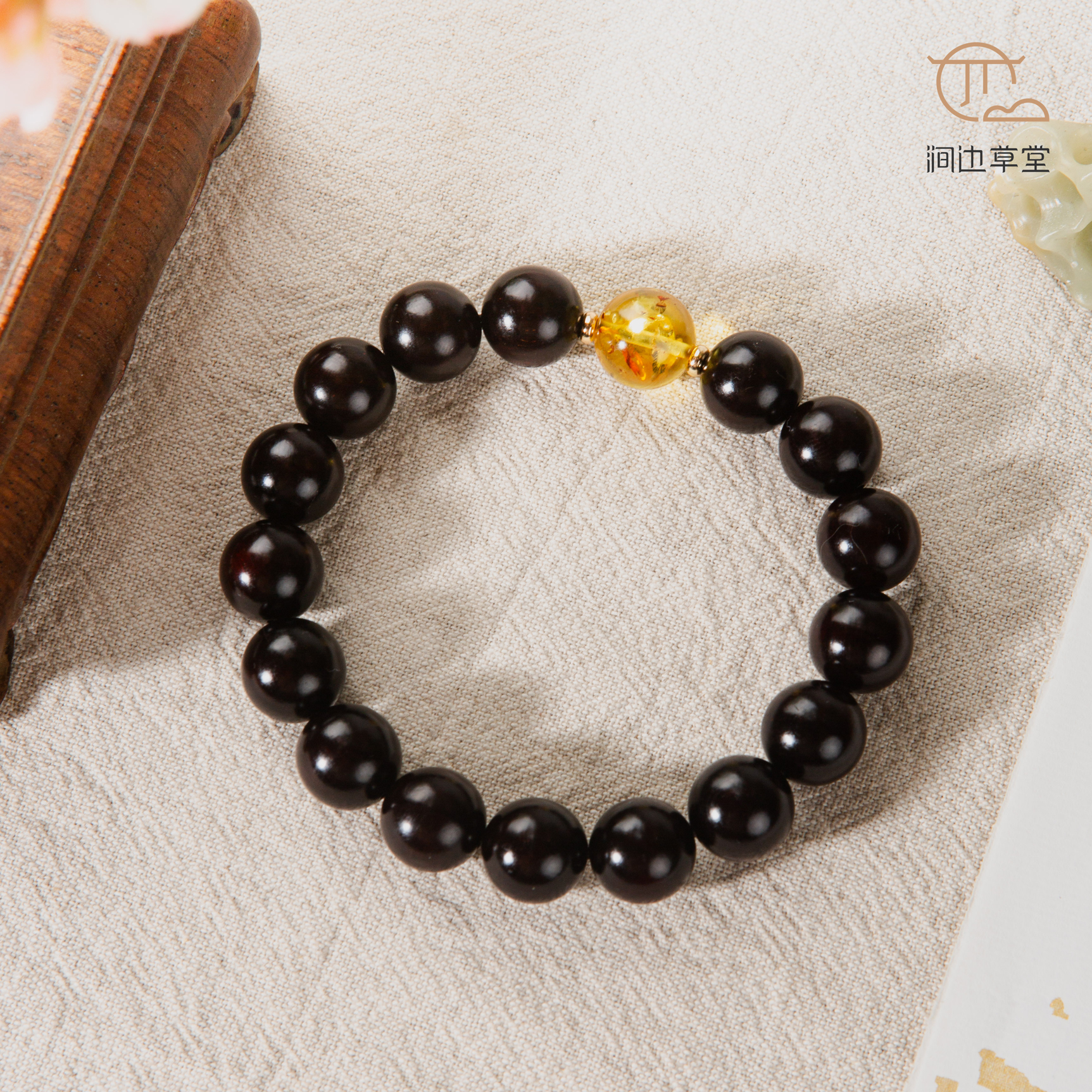花珀顶珠清代檀香紫檀家具老料制手串直径1.2cm