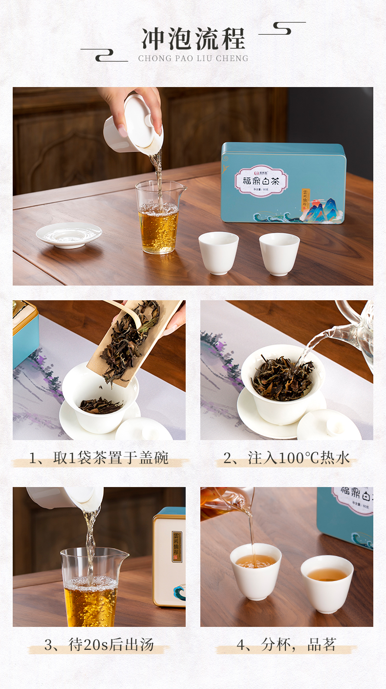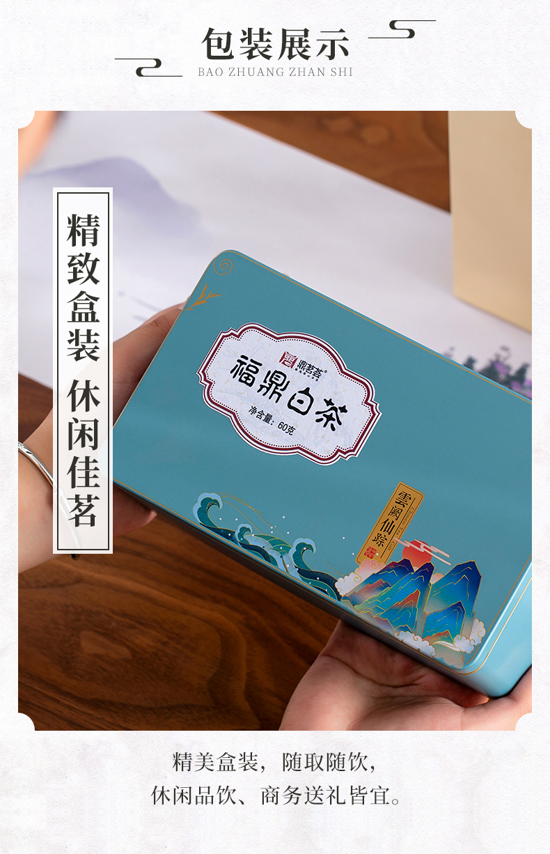 鼎茗荟丨贡眉 云阙仙踪 福鼎白茶 2017年 一级 60g 买2盒配手提袋