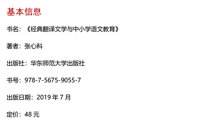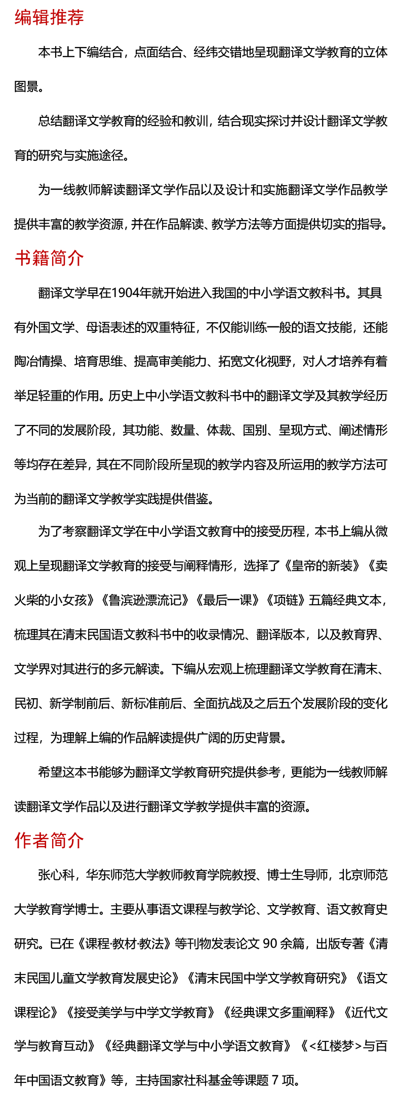 经典翻译文学与中小学语文教育 翻译文学教育教学实施途径 张心科著