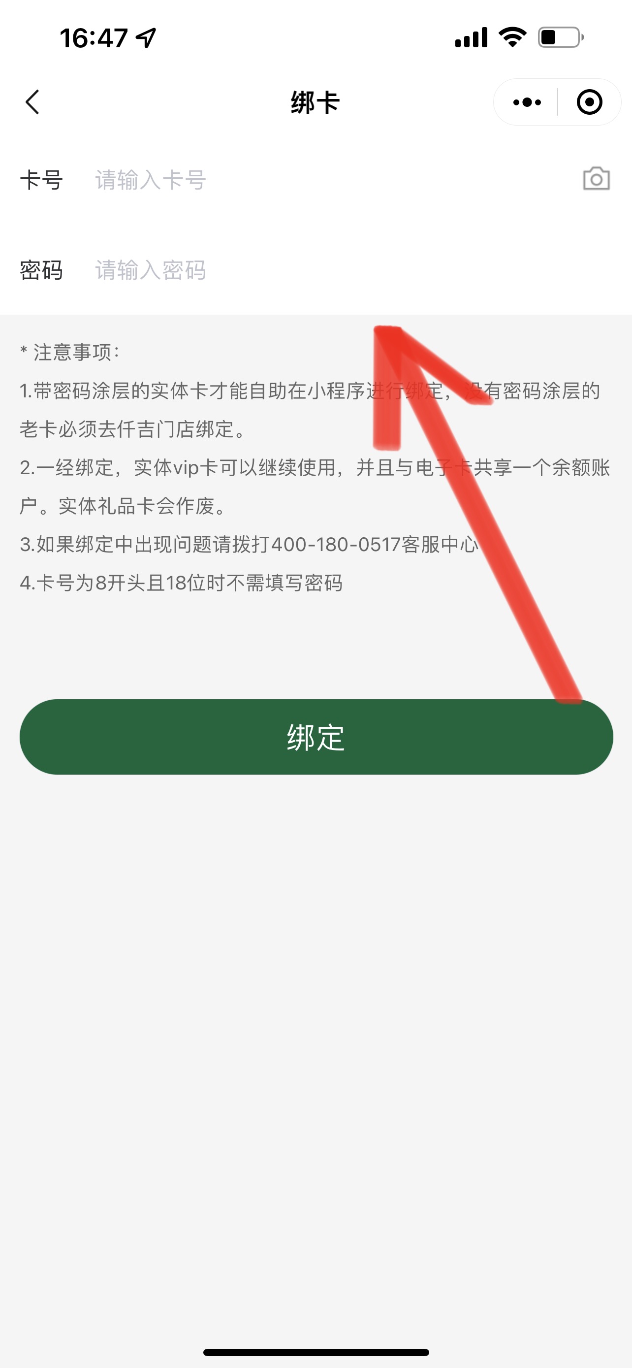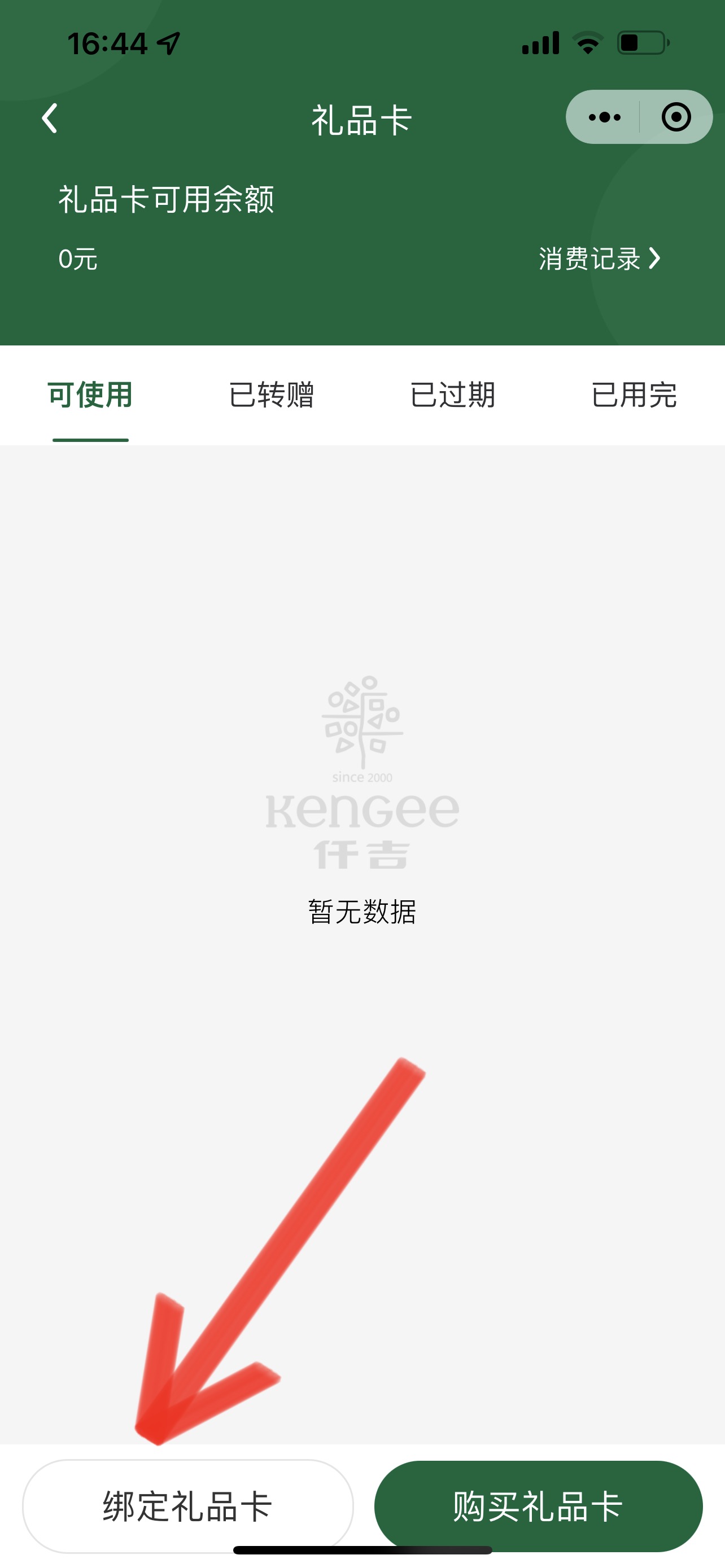 3. 点击 绑定礼品卡