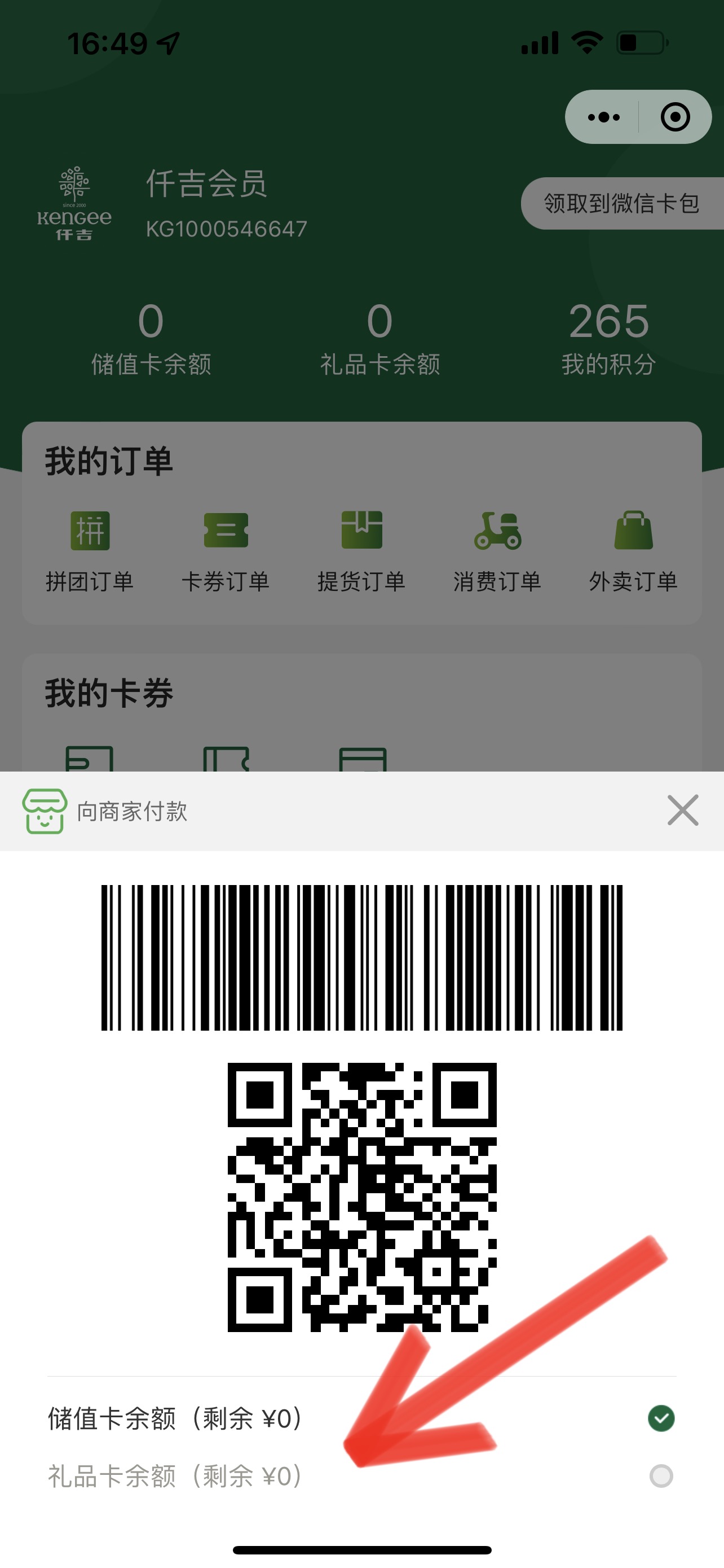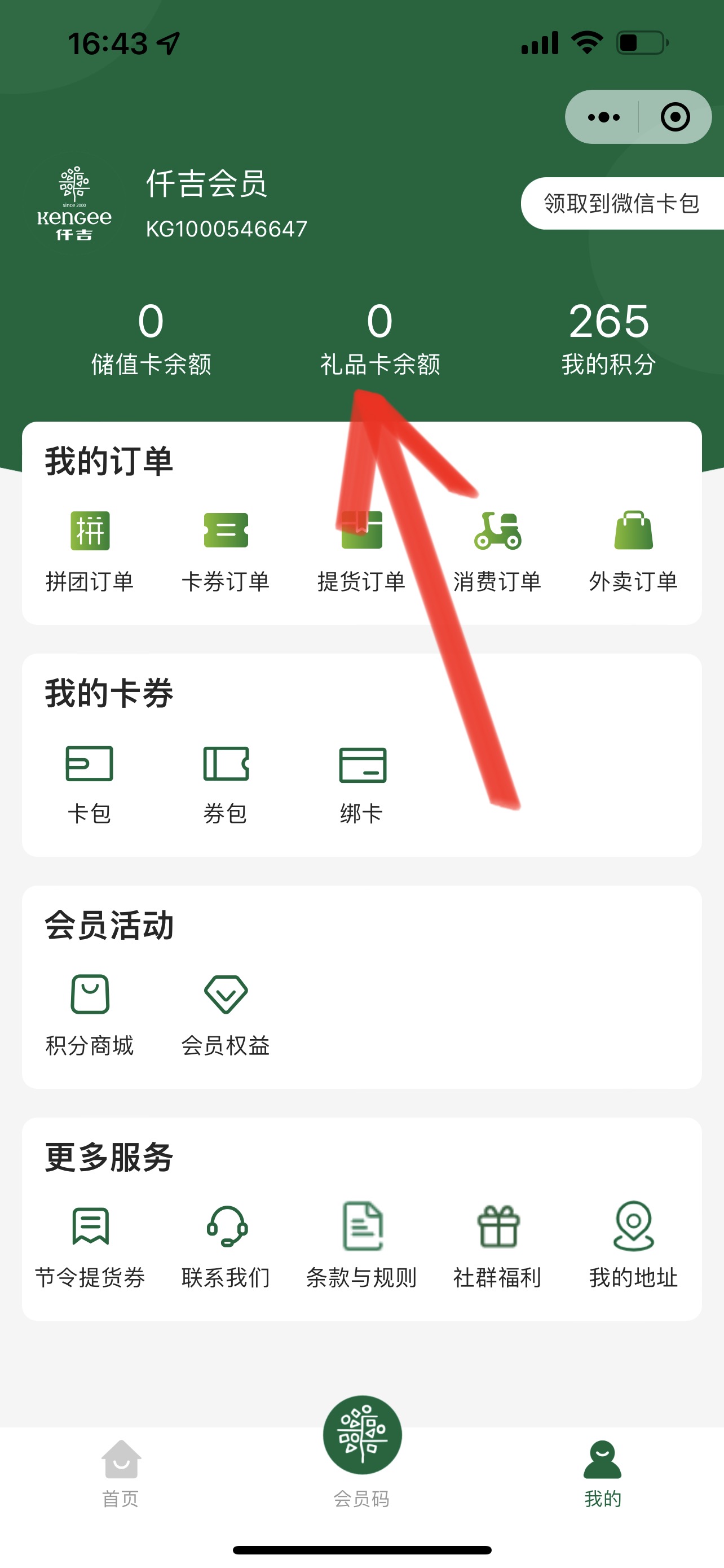 2. 点击 礼品卡余额