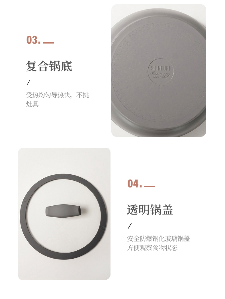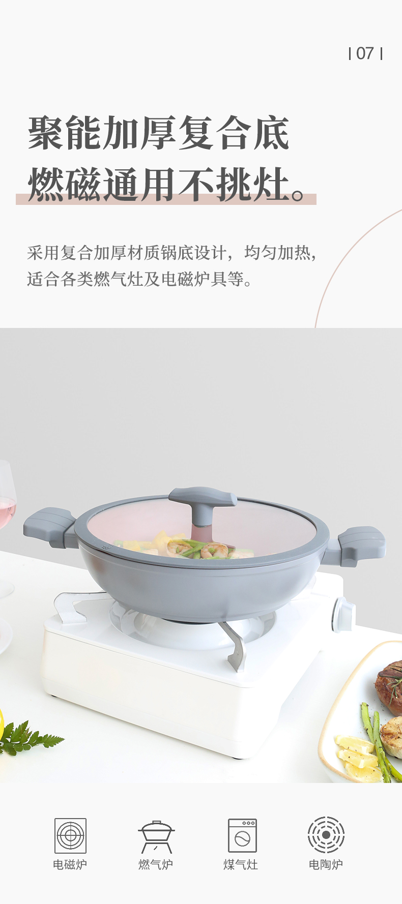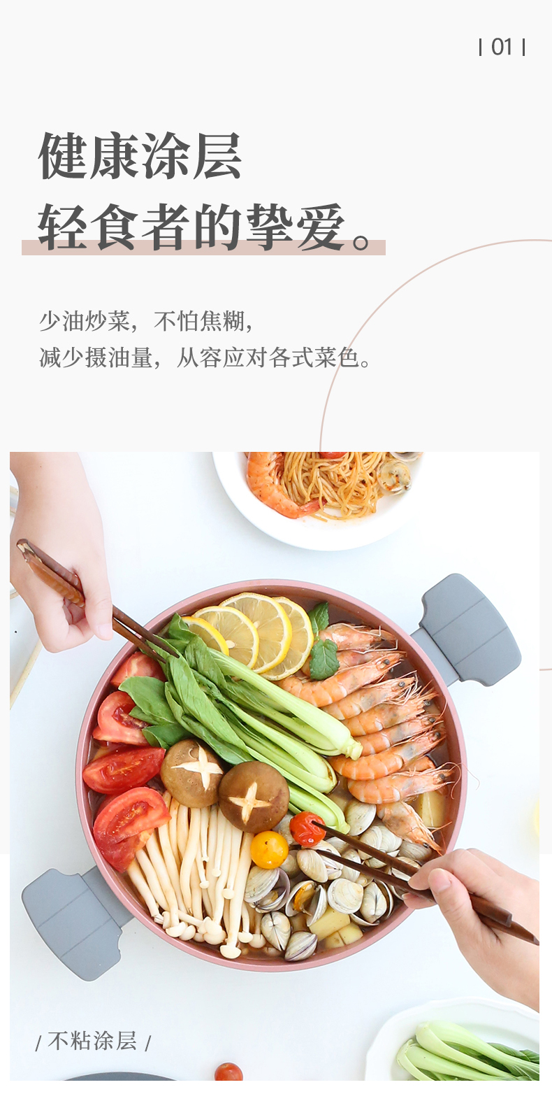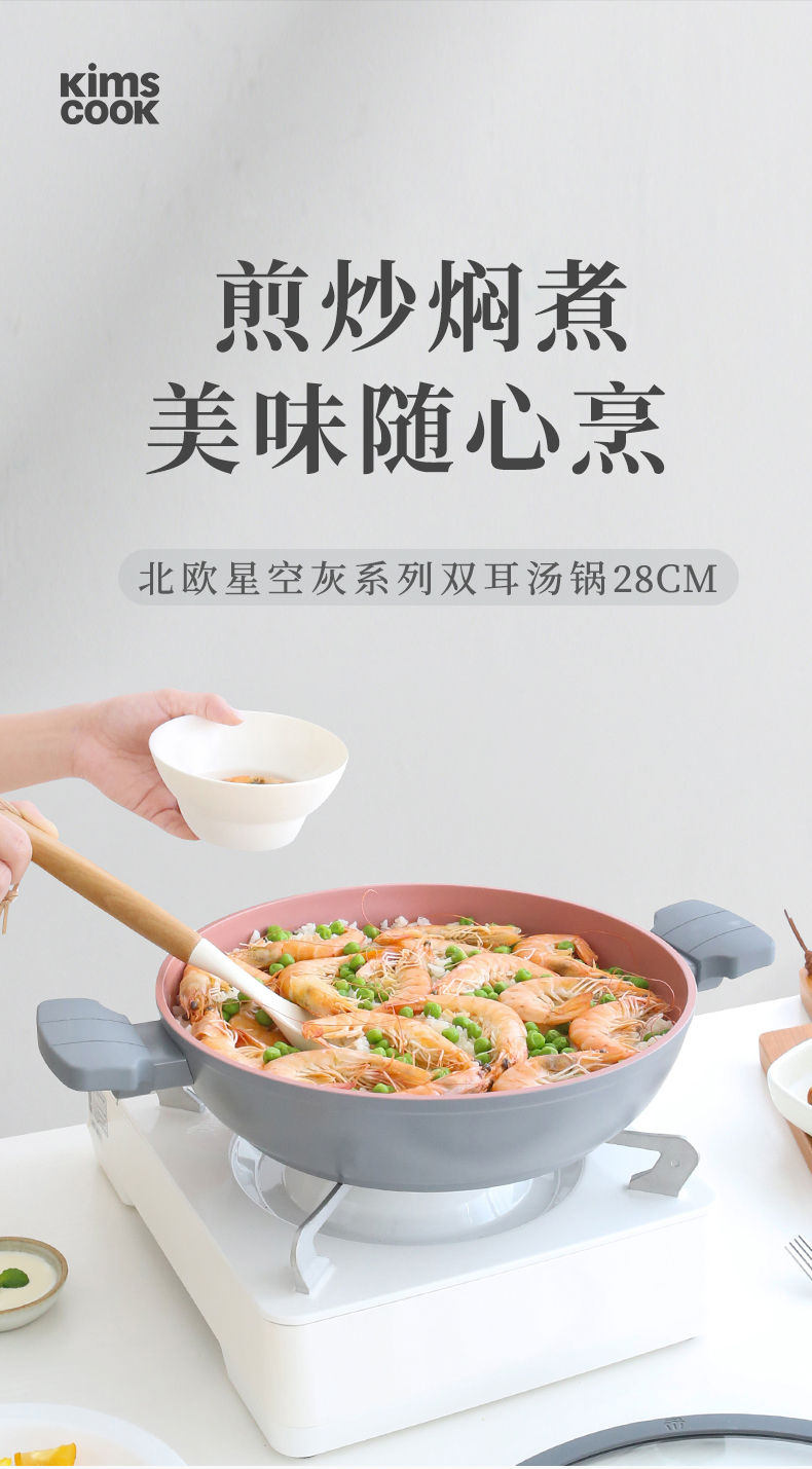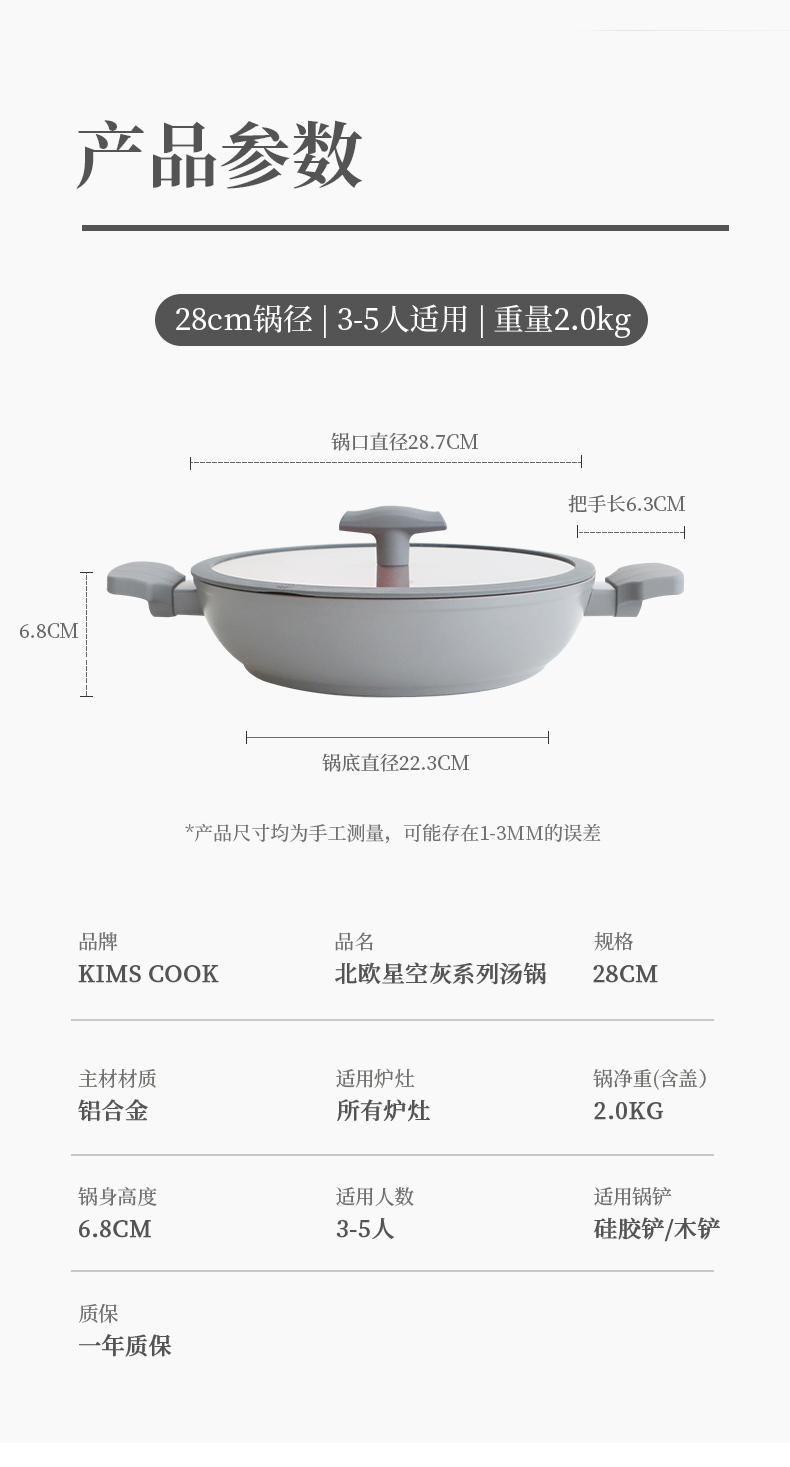 KIMS COOK星空灰双耳汤锅家用多功能锅电磁炉通用不粘锅28cm