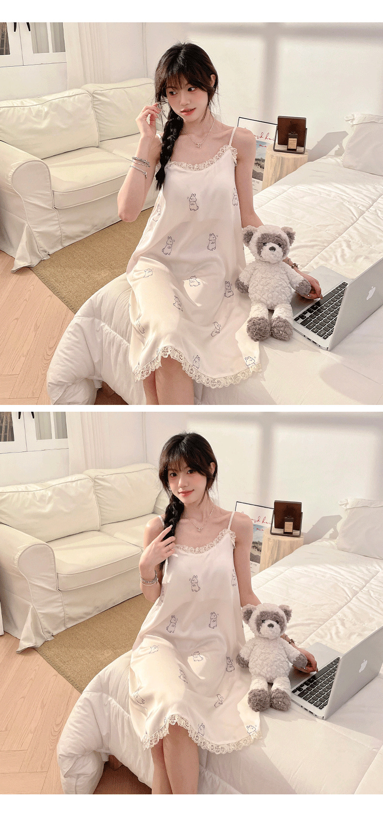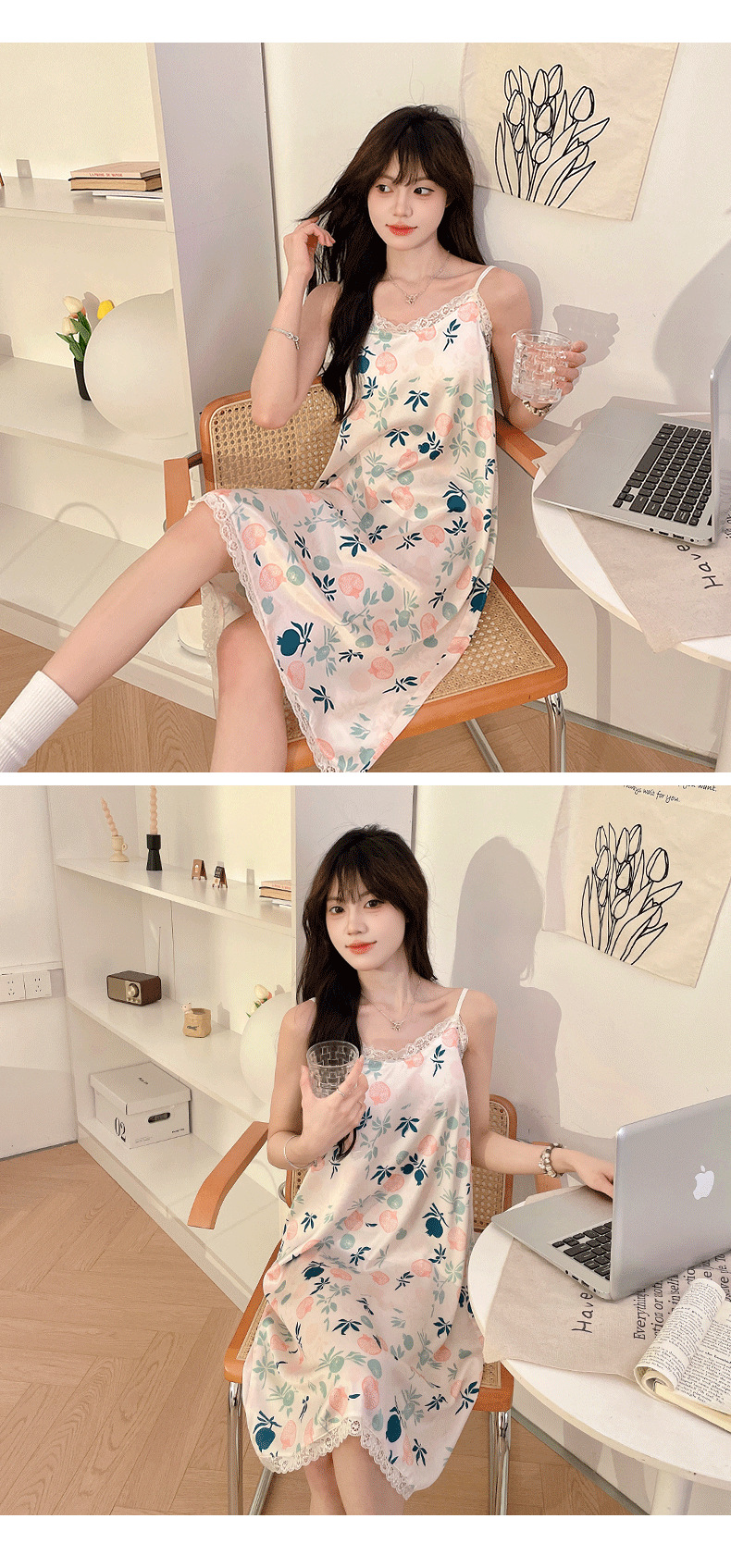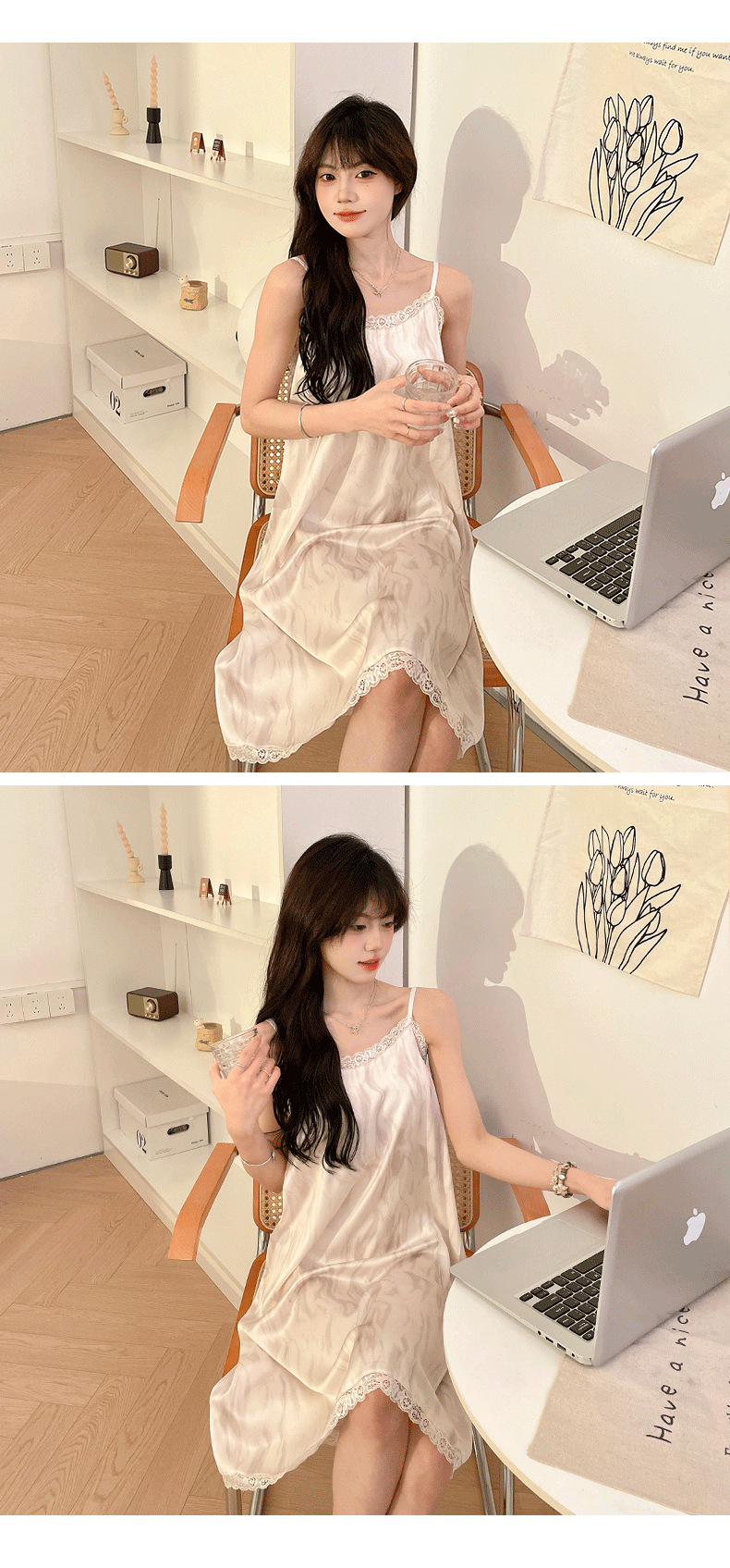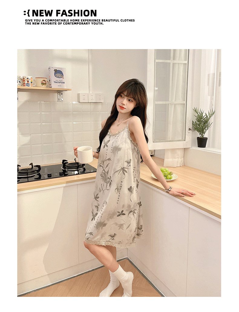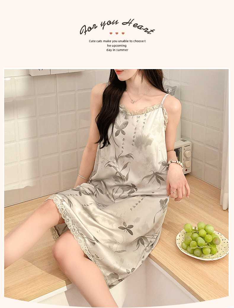 【小众不撞睡裙系列❗️纯欲冰丝吊带睡裙】夏季法式薄款带胸垫背心,小清新冰雪丝绸甜美睡衣家居服L